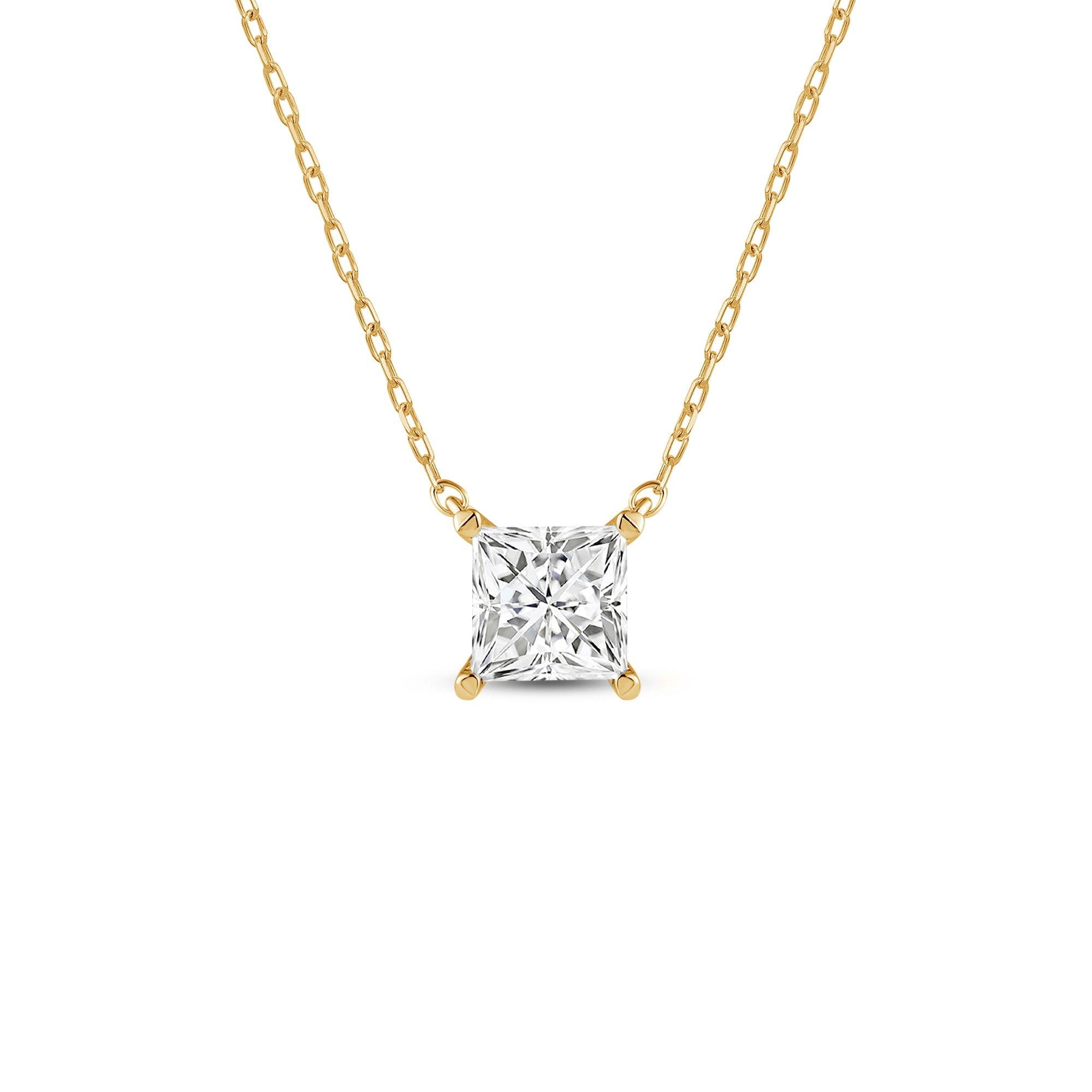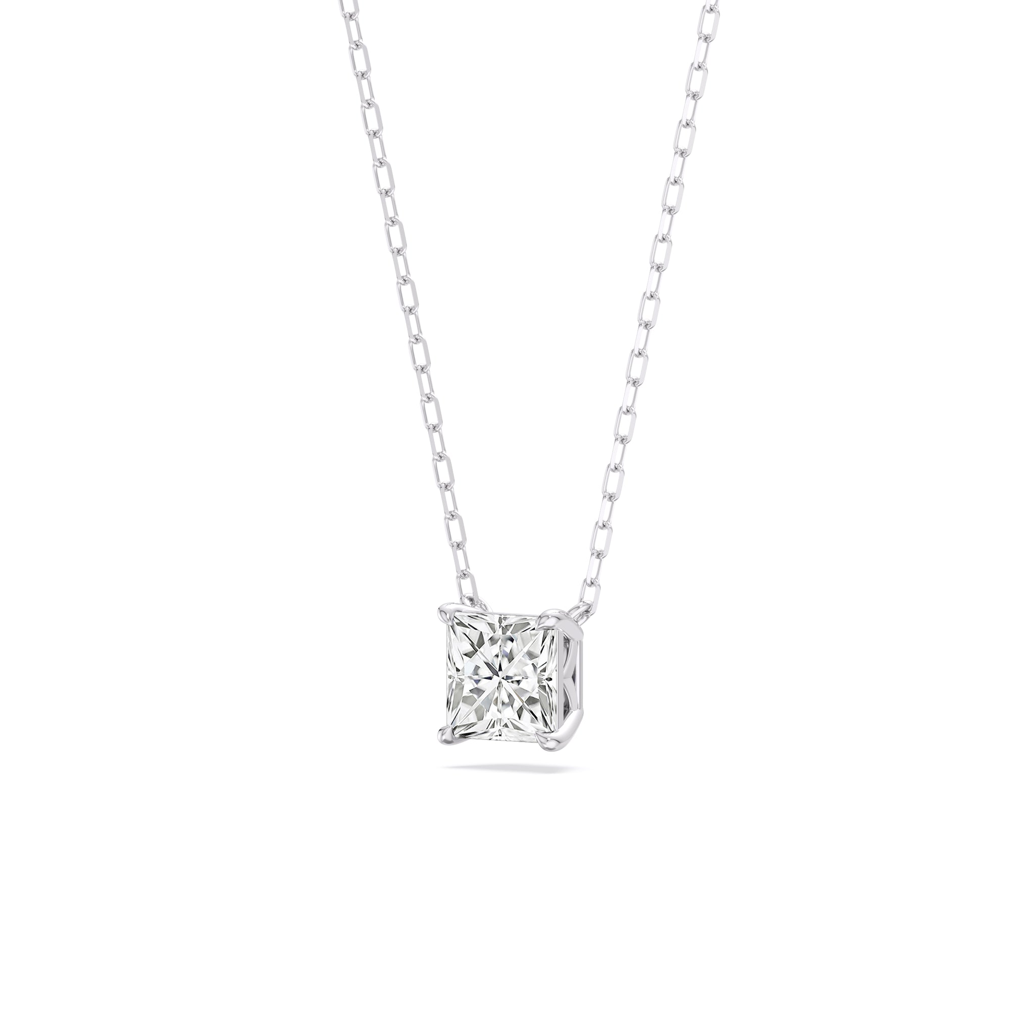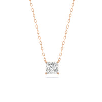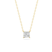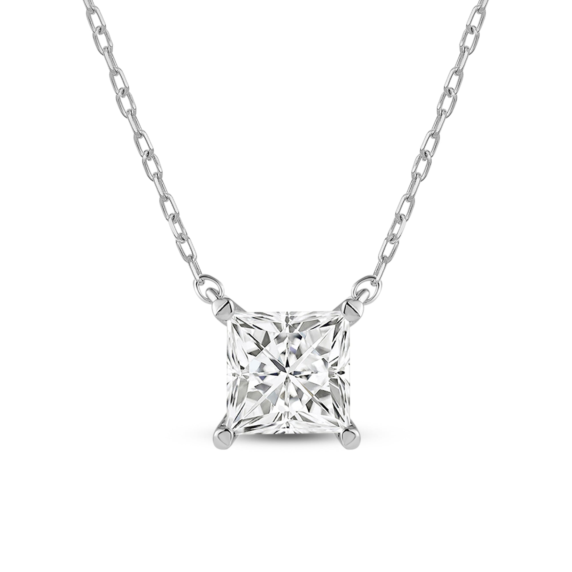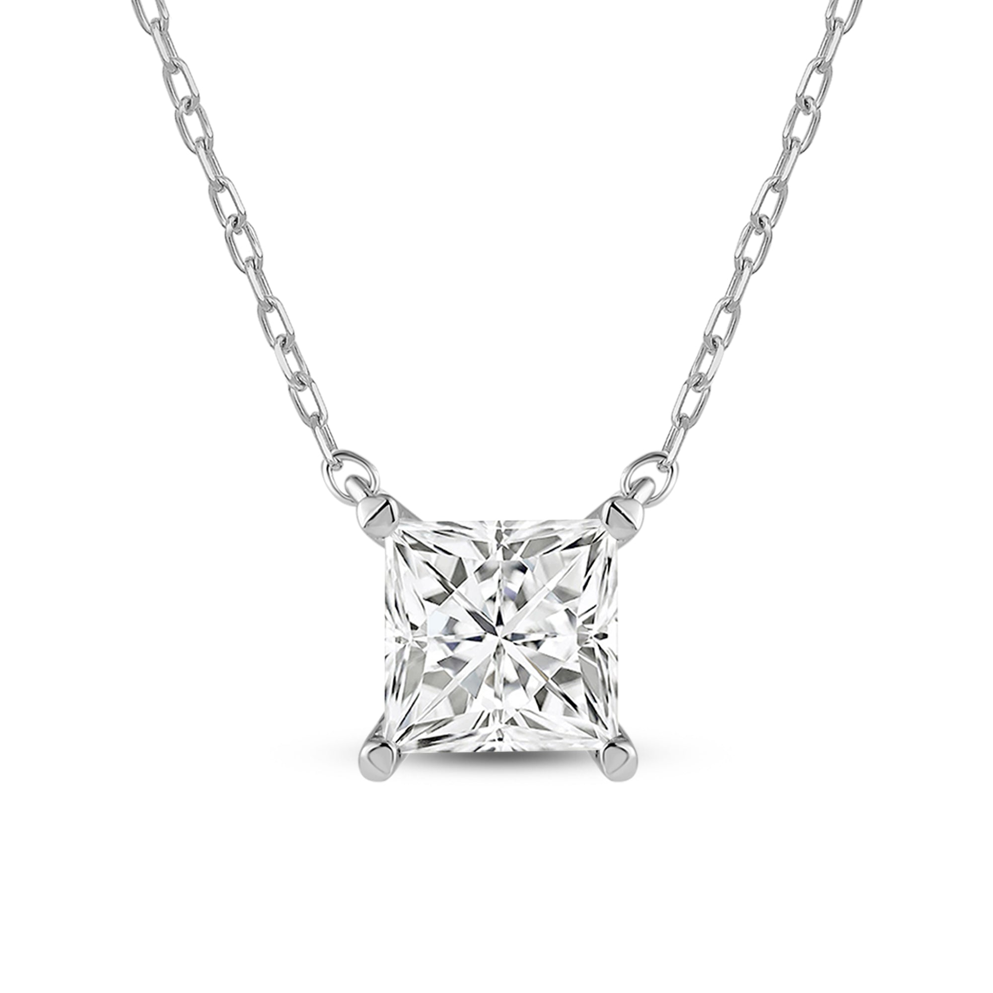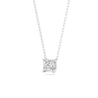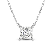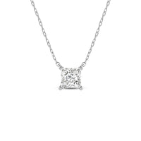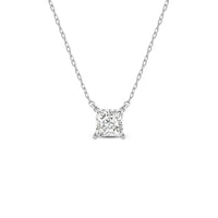 Your perfect daily go-to. This solitaire necklace features a white gold chain and princess-cut diamond on a four-prong basket. Its subtle sparkle delivers a clean, classy look that complements any ensemble. The timeless appeal of this minimalist diamond solitaire necklace also makes it the perfect gift.
