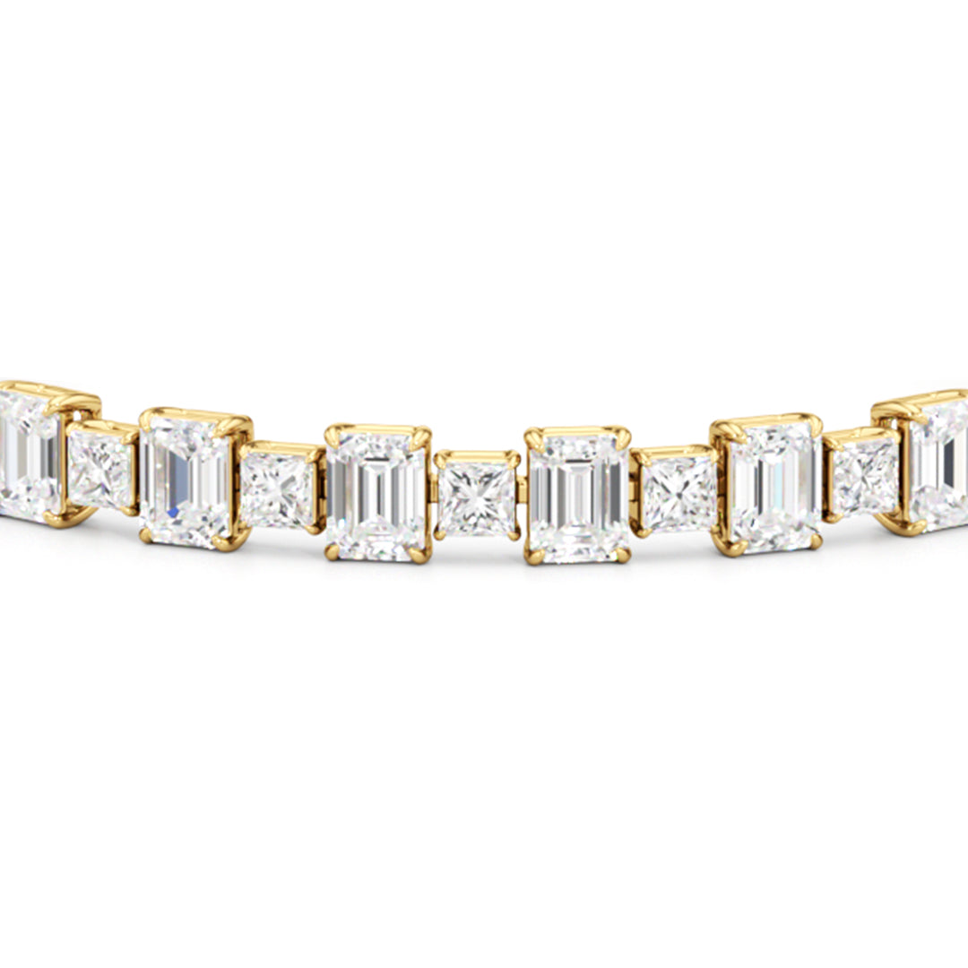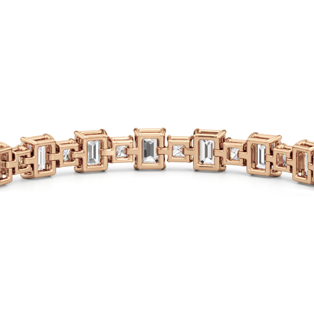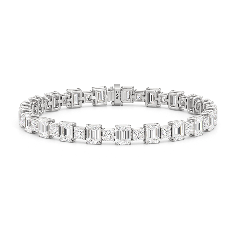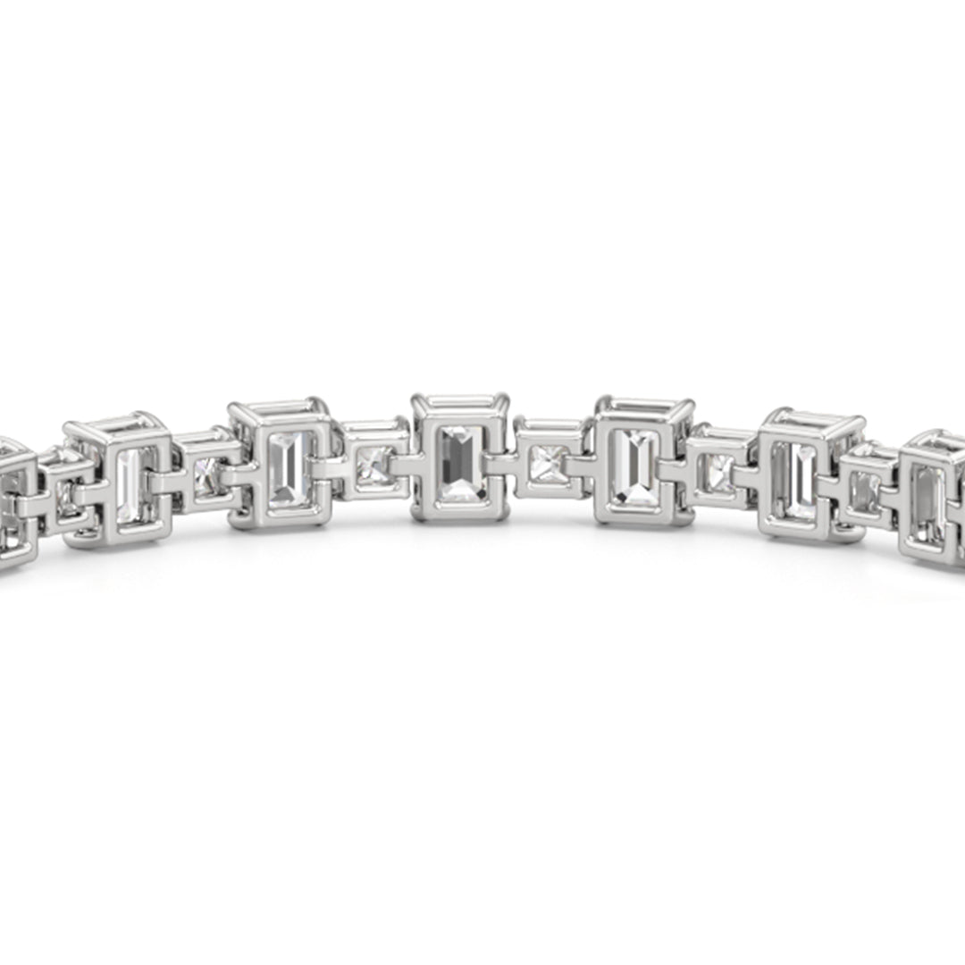 This luxe design is a stylish and bold choice. Designed with alternating emerald-cut and princess-cut diamonds, this tennis bracelet enhances any jewelry stack, or makes at statement when worn solo.