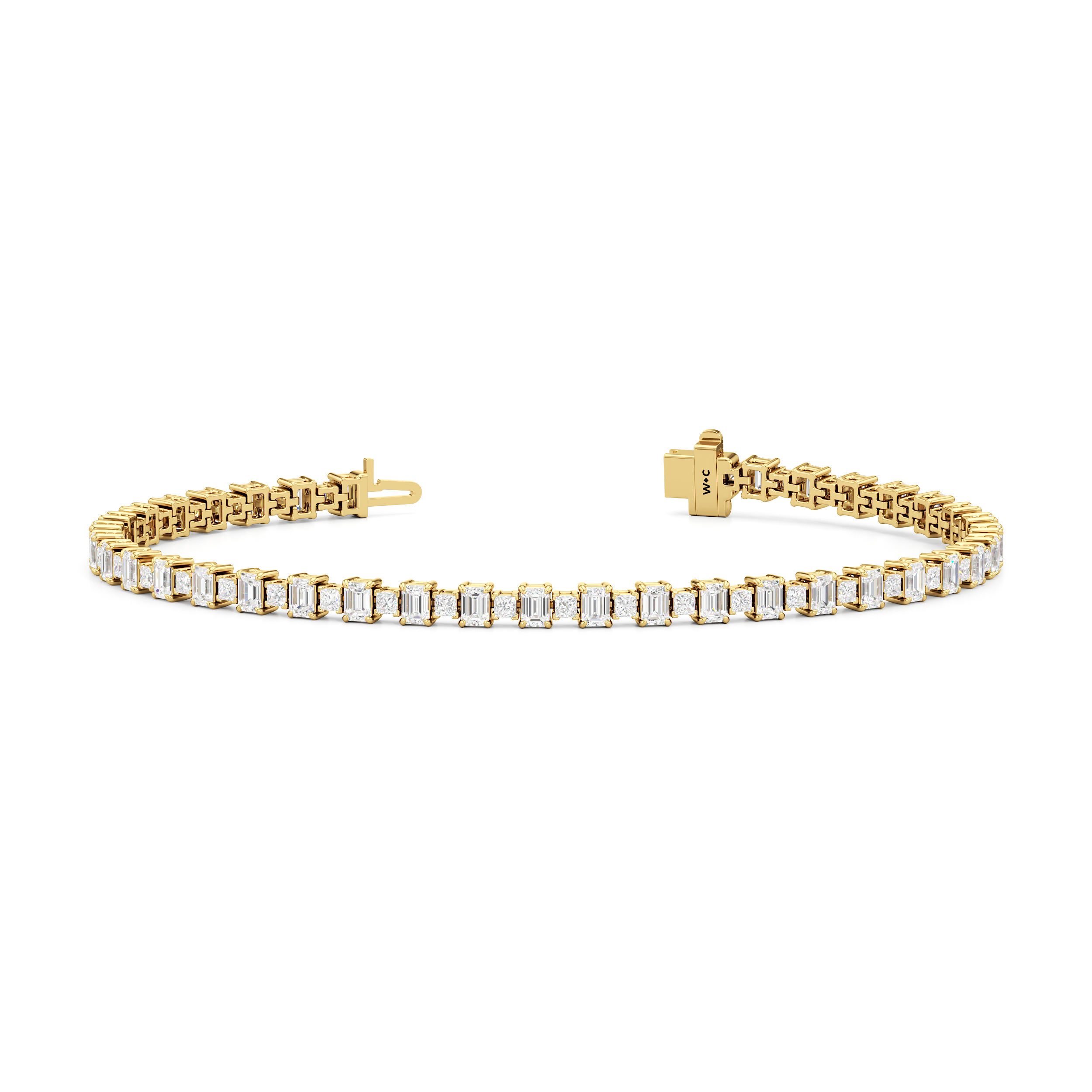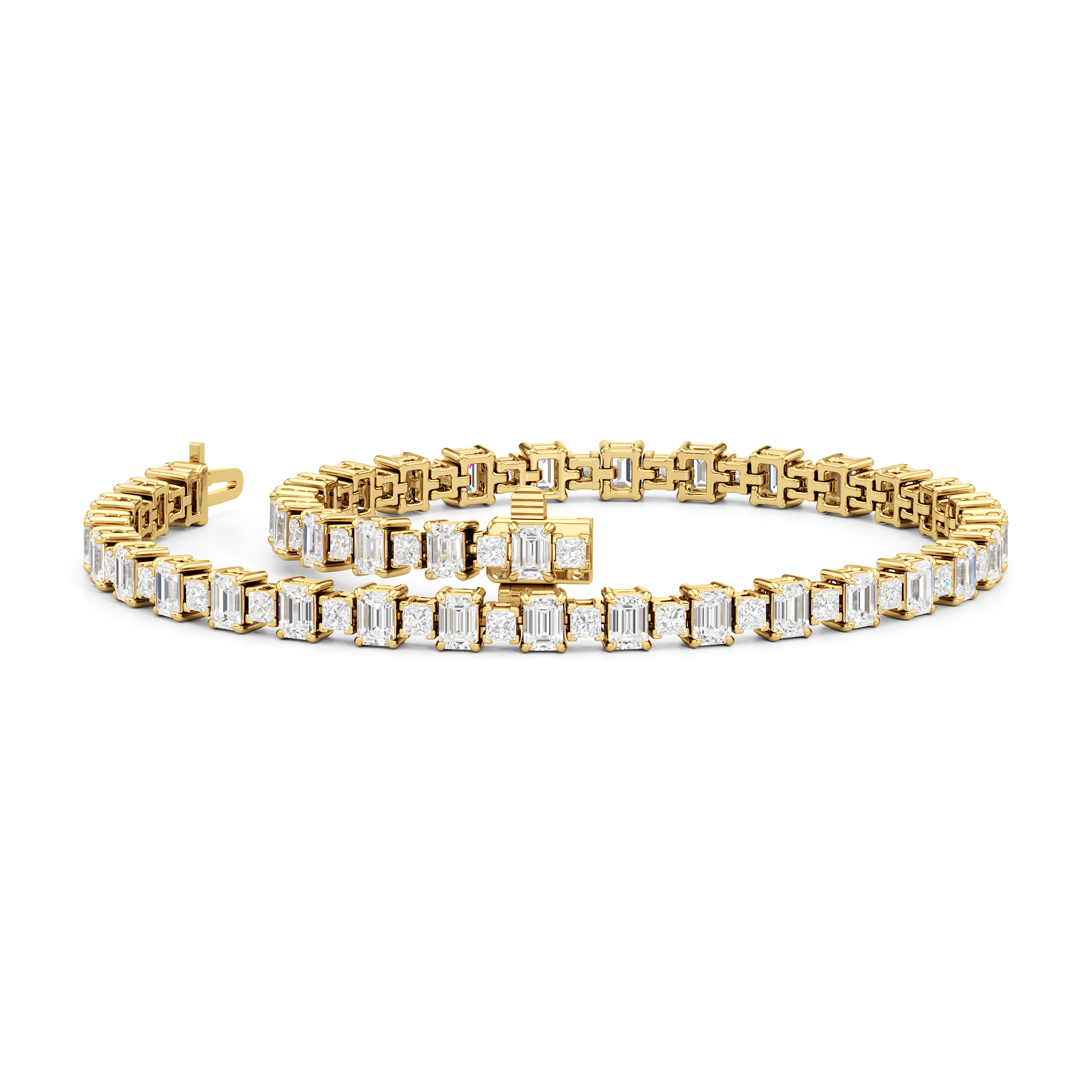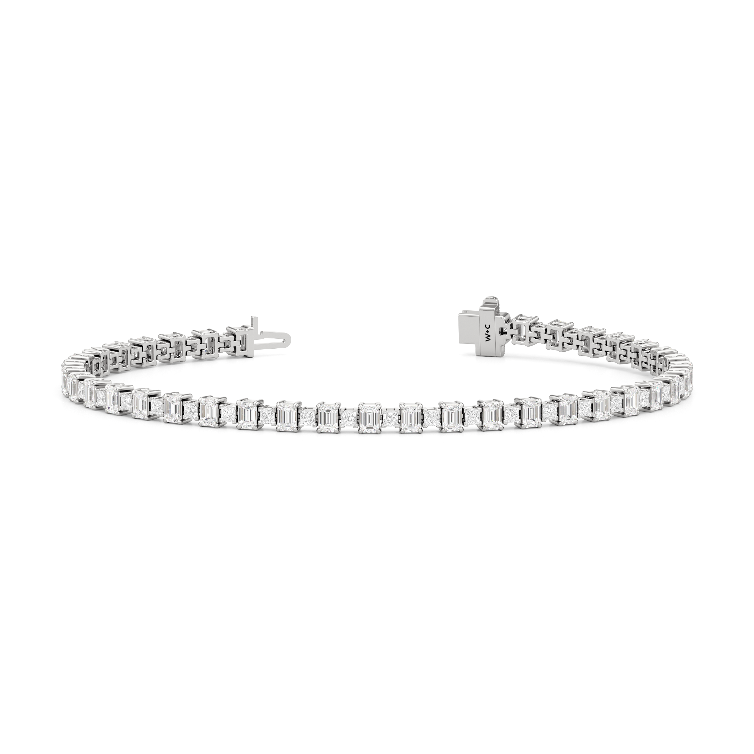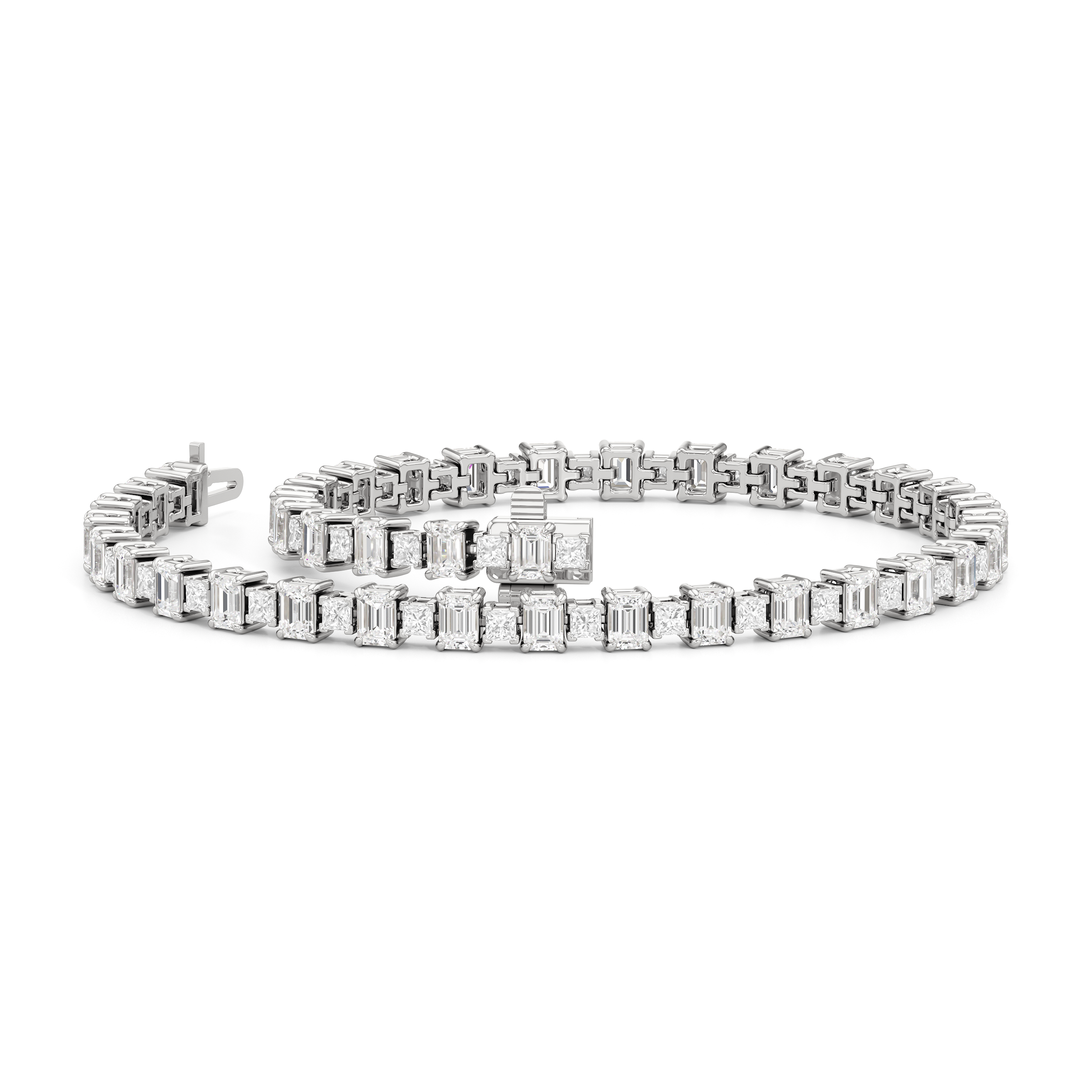 This luxe design is a stylish and bold choice. Designed with alternating emerald-cut and princess-cut diamonds, this tennis bracelet enhances any jewelry stack, or makes at statement when worn solo.