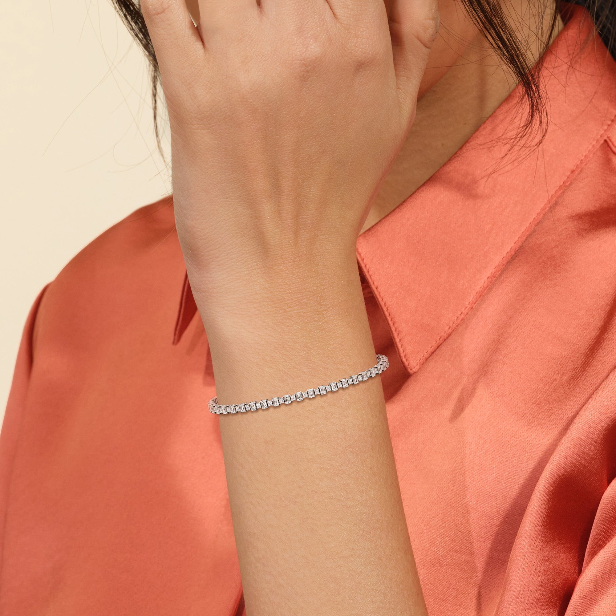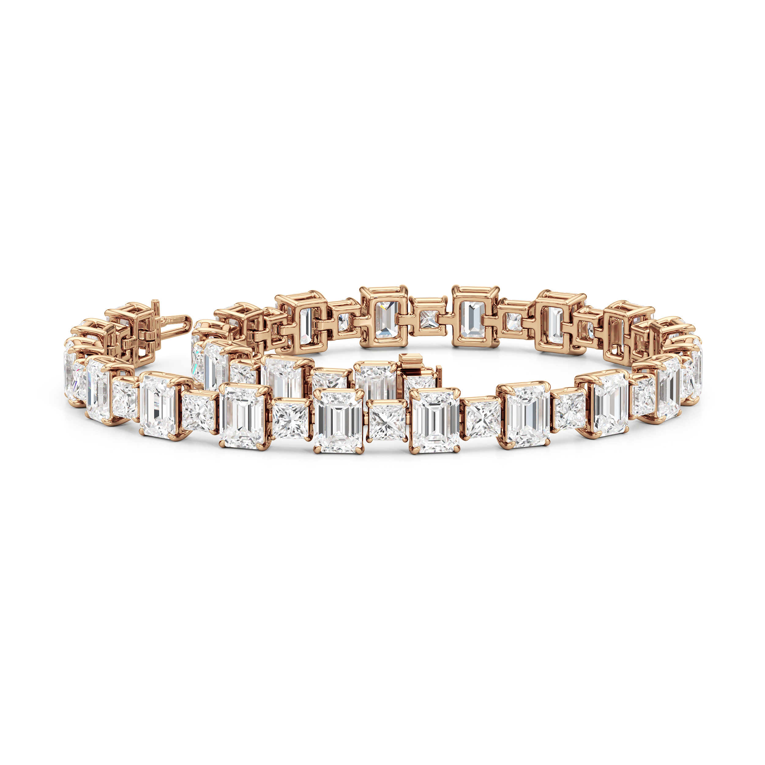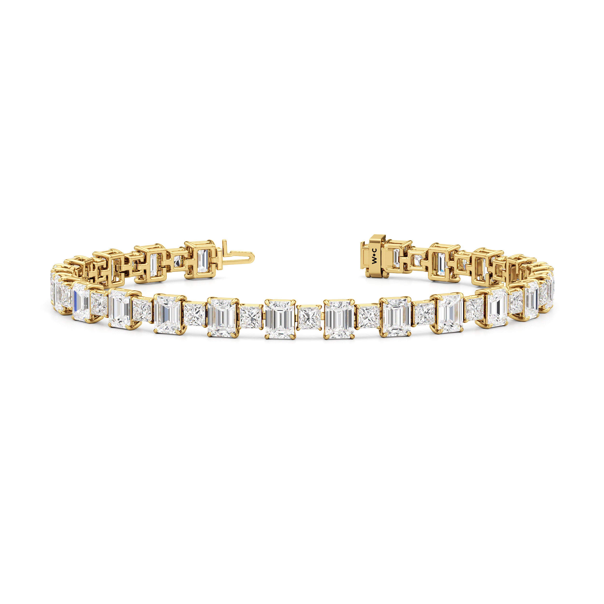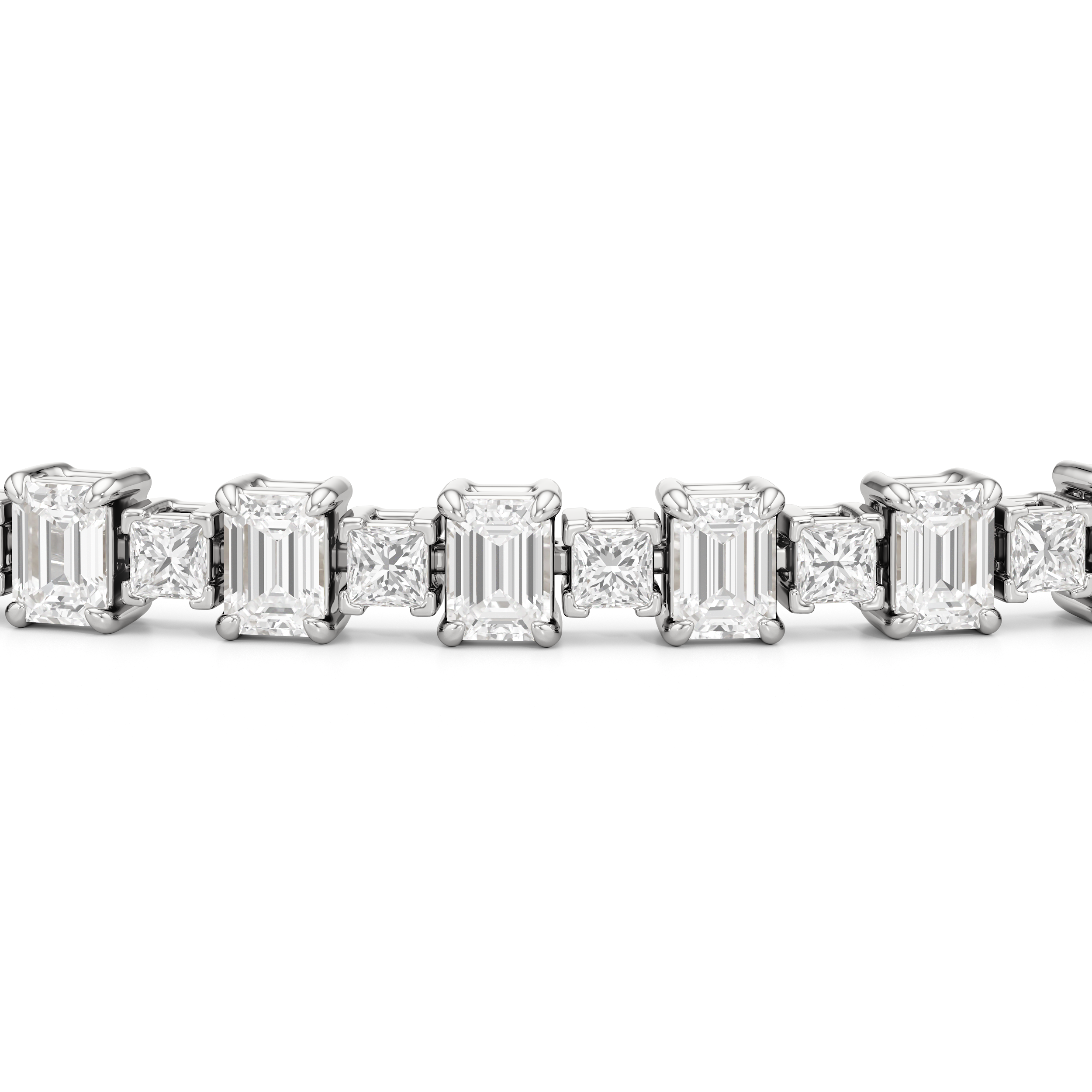 This luxe design is a stylish and bold choice. Designed with alternating emerald-cut and princess-cut diamonds, this tennis bracelet enhances any jewelry stack, or makes at statement when worn solo.