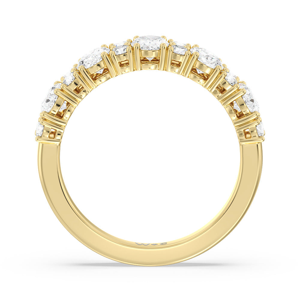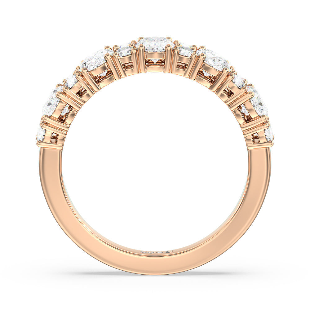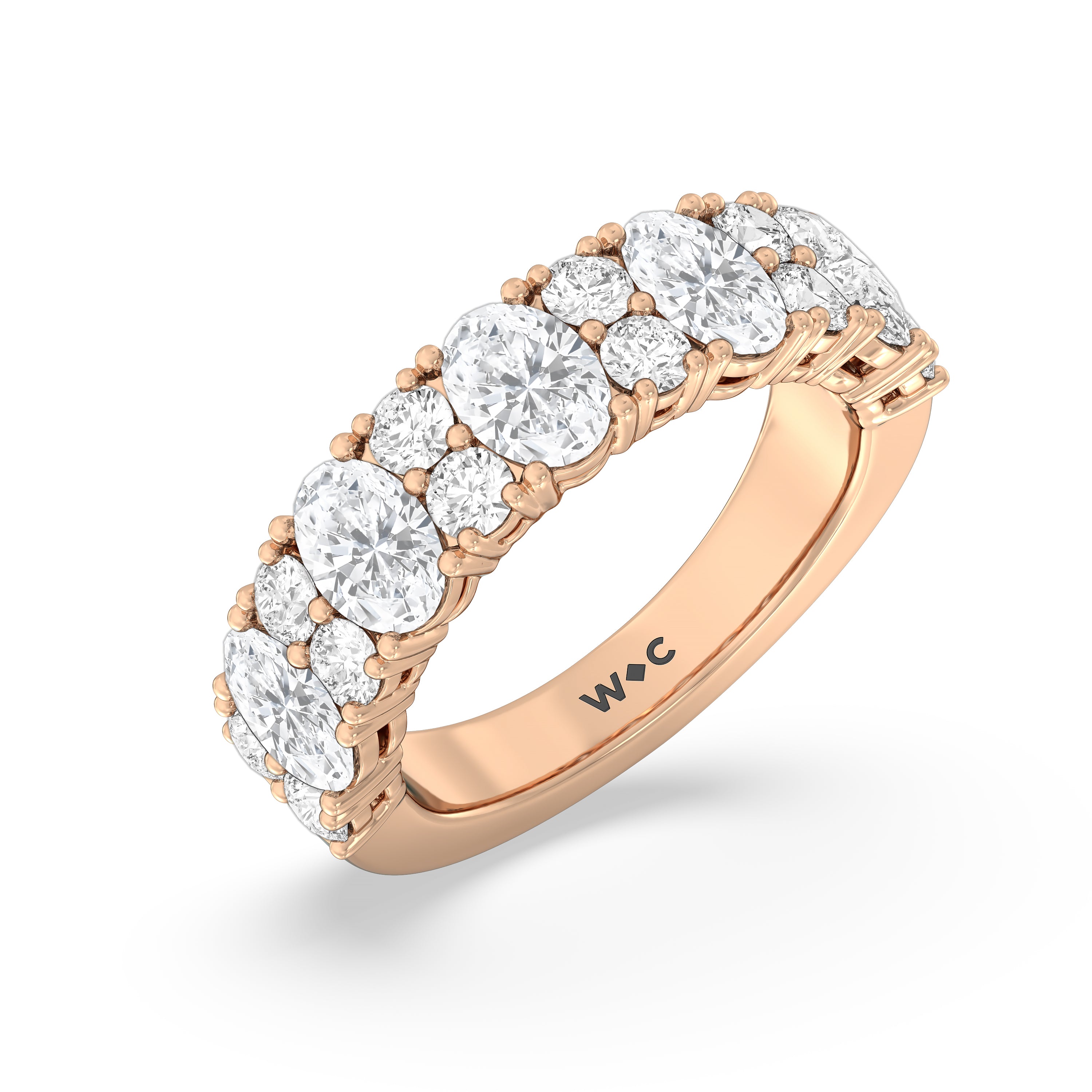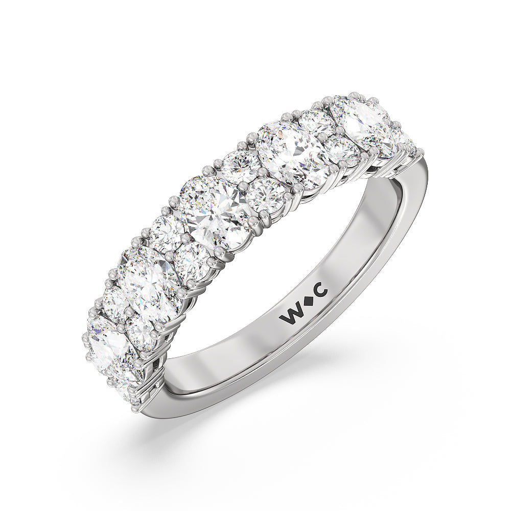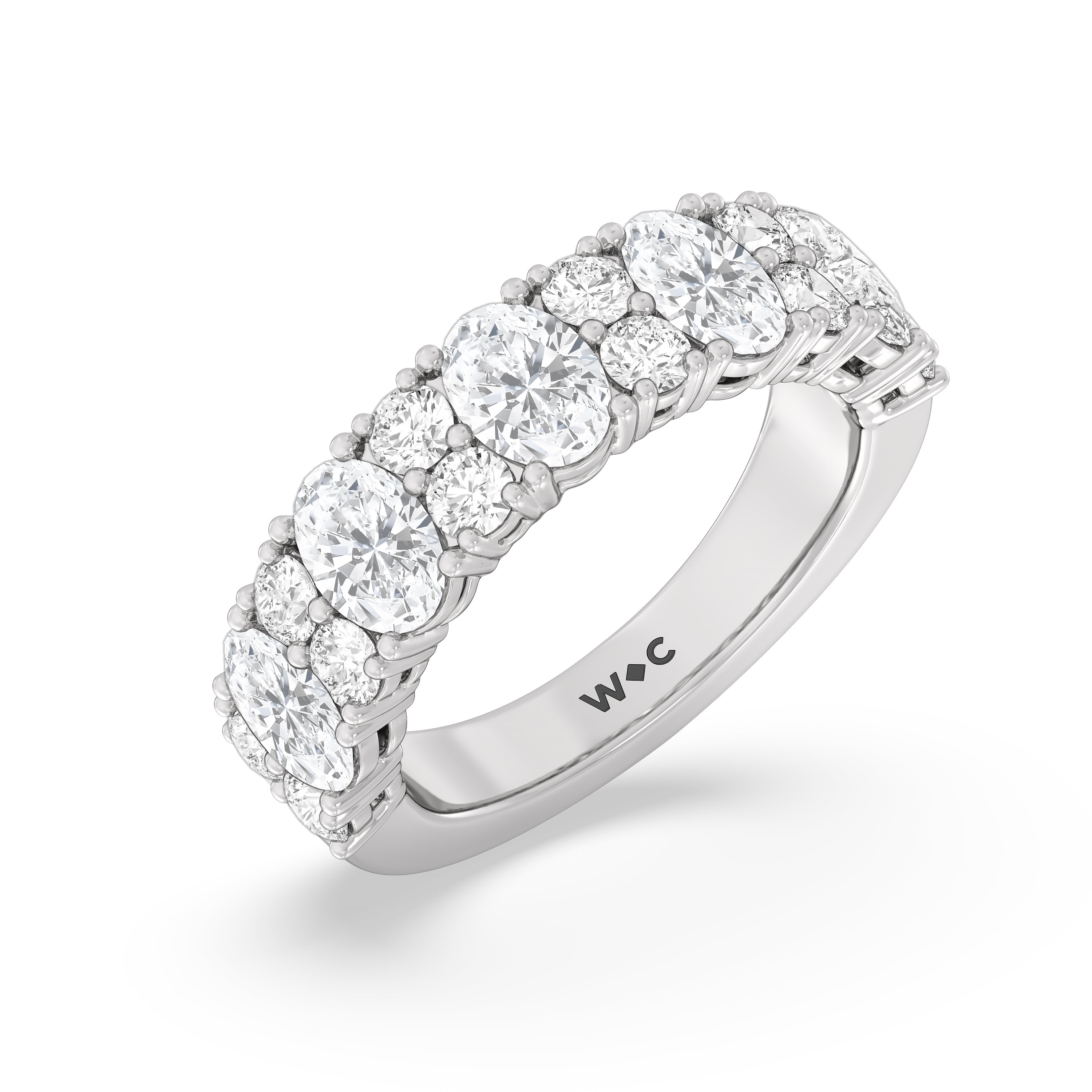 Keep things simple and classy with this half-eternity ring. The band features a glittering curve decorated with alternating oval and round diamonds. With endless sparkle, this ring is the perfect depiction of your story of infinite love.