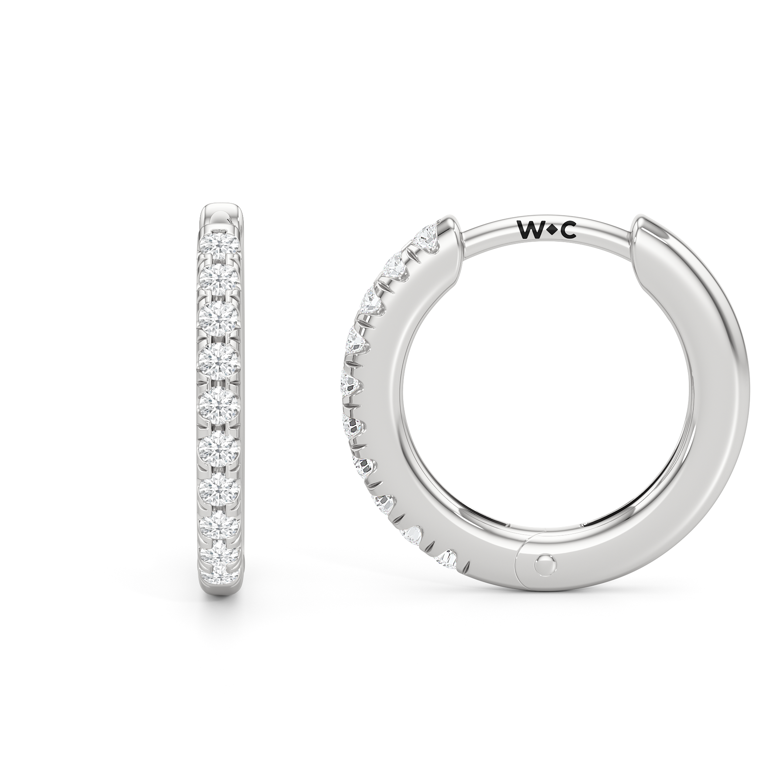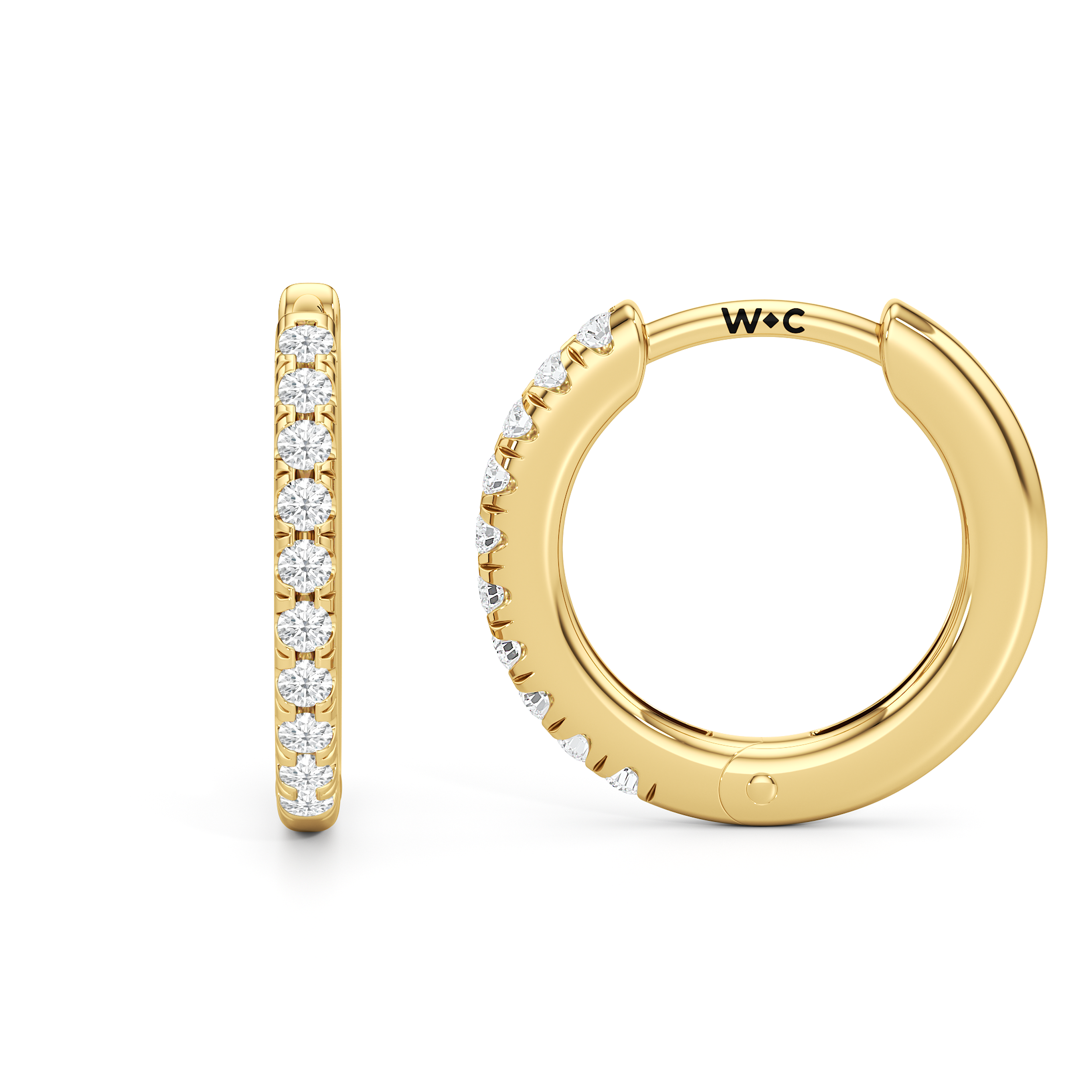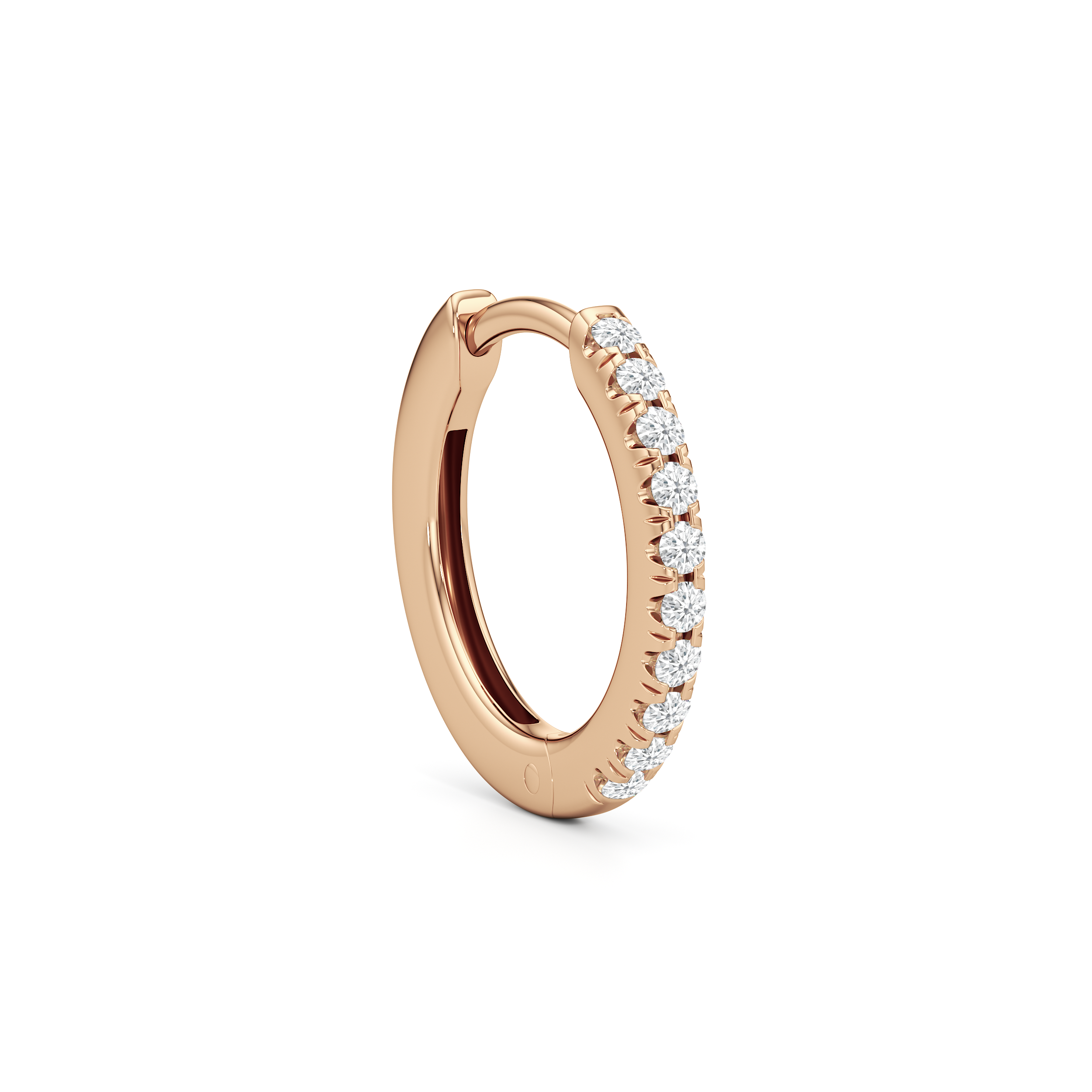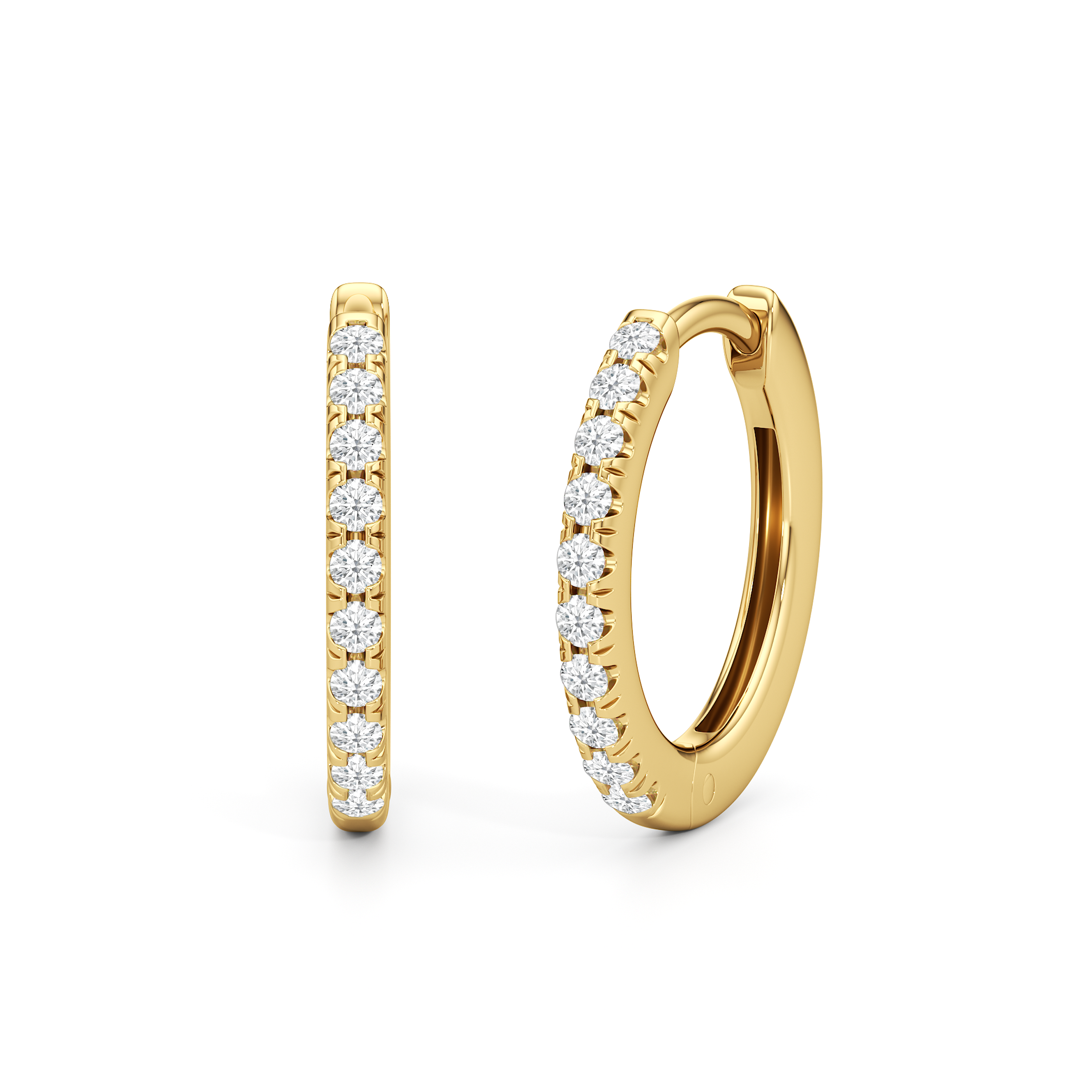 Sleek and subtly shaped, Anya is all about comfort that doesn’t compromise security and style. The huggie hoops have their front curved traced with round diamonds on U-cut prongs. A pair that’s easy on your ears and ready for wherever your day takes you.