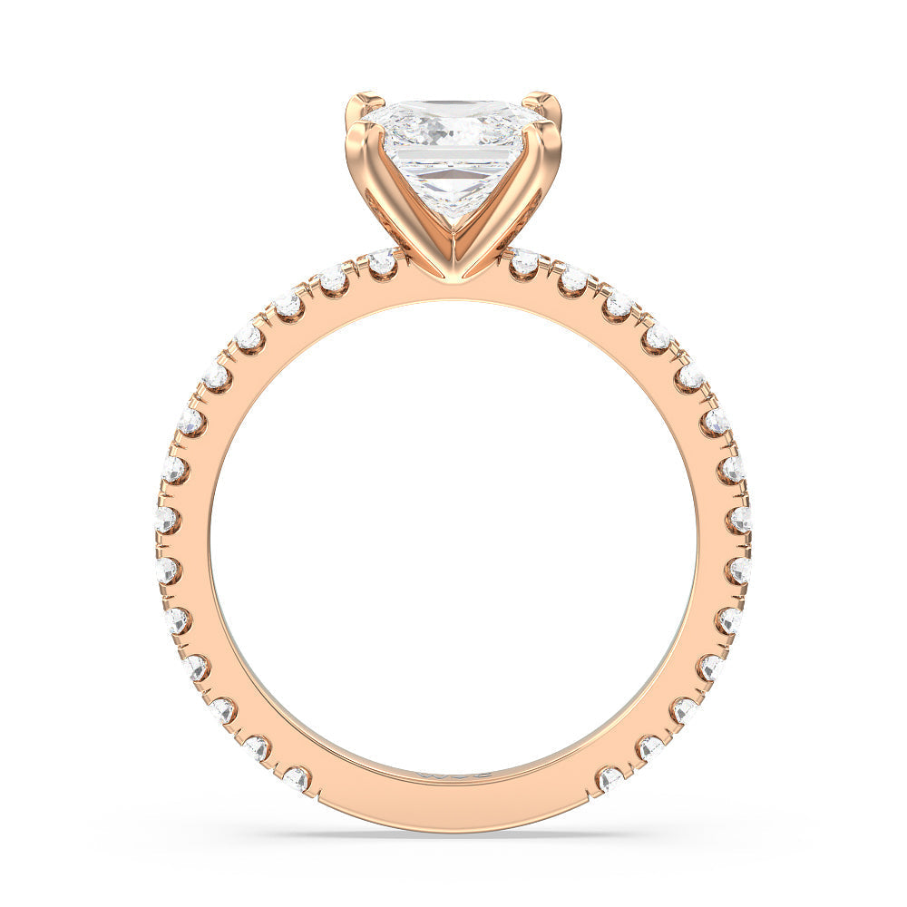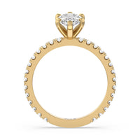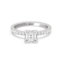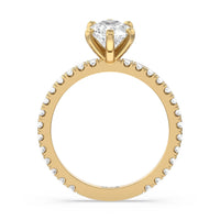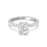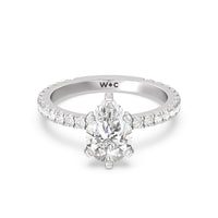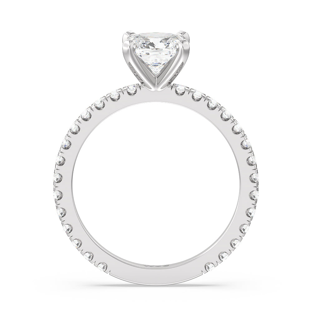 A timeless look of pave set diamonds and perfectly polished prongs make this ring perfect for any hand.