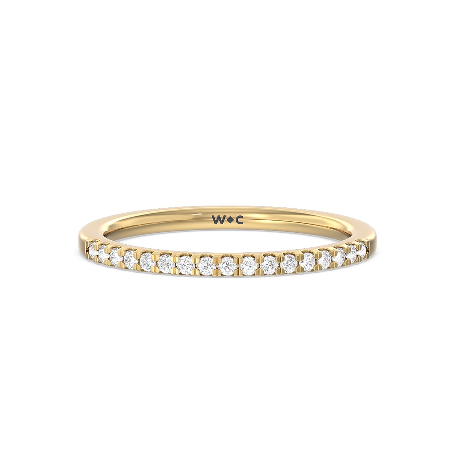 Shimmering pave diamonds cascade down this band to create a timeless beauty that will never go out of style. Designed to be paired with our arc hidden halo engagement ring for a simple and sophisticated look.