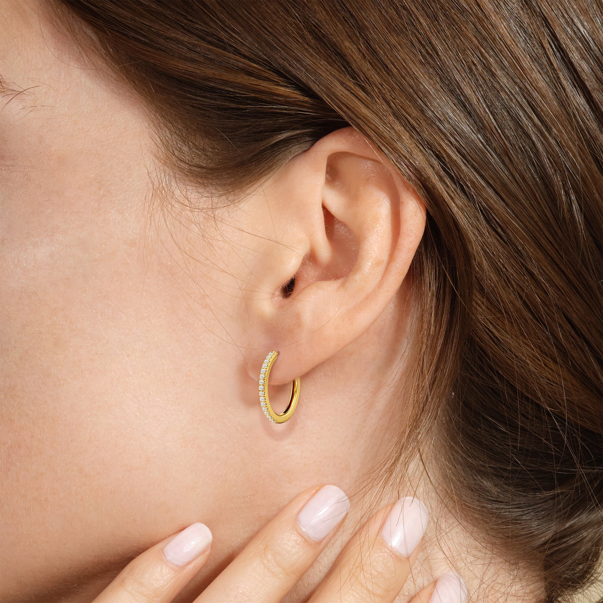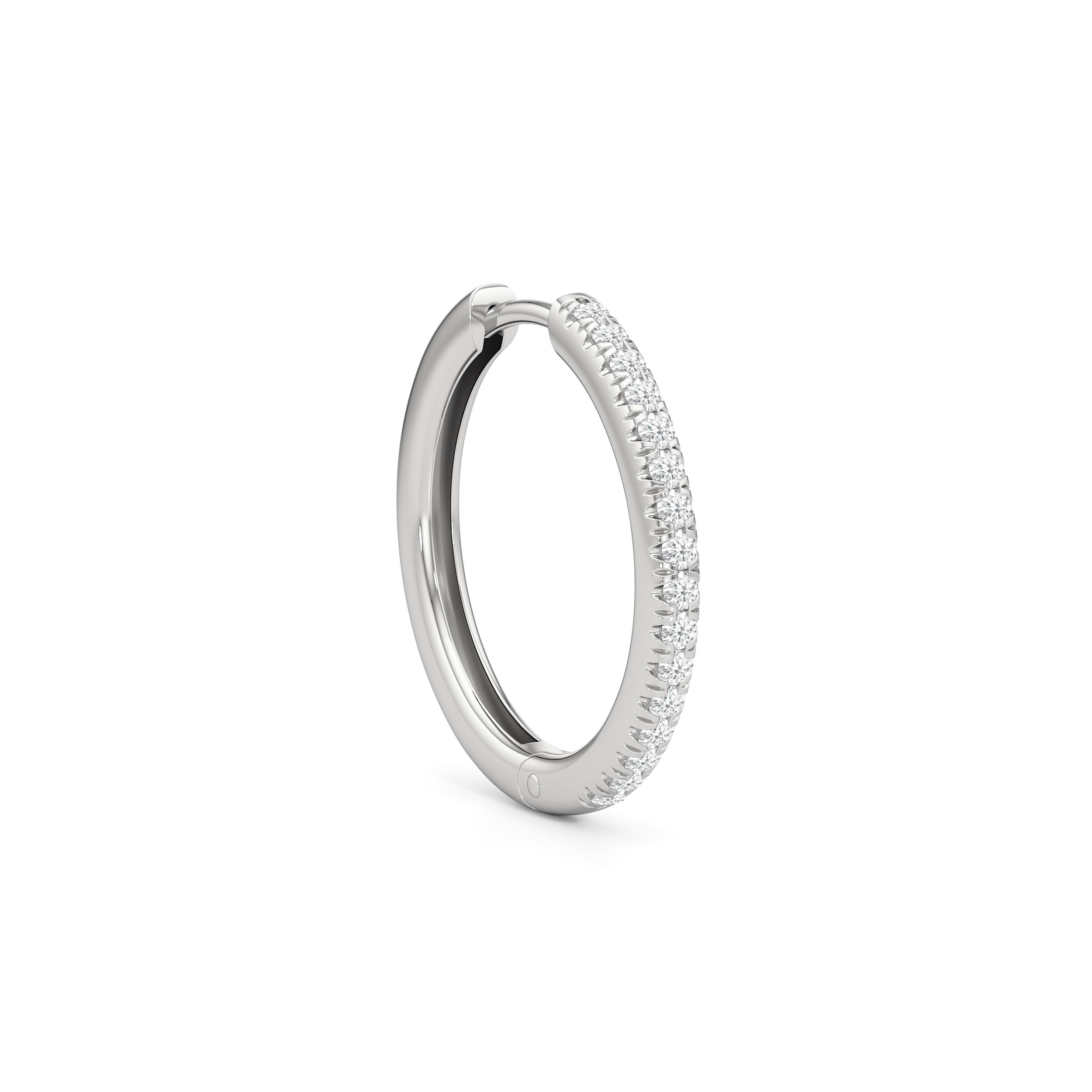 Slightly bolder than the classic huggie, Astra's design lands somewhere between standout and everyday. These hoops with diamonds on U-cut prongs are airy and modern, giving you style without the strain.