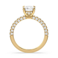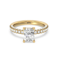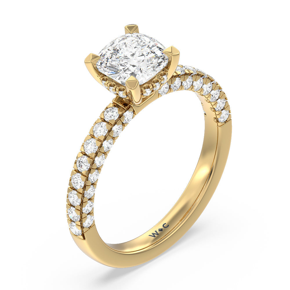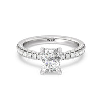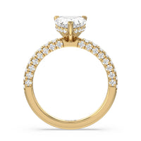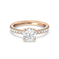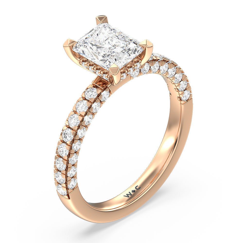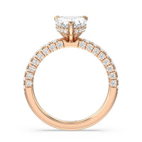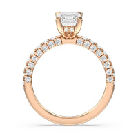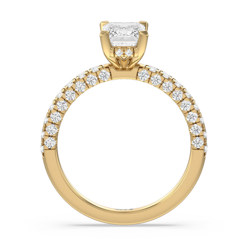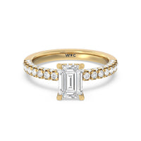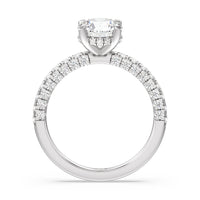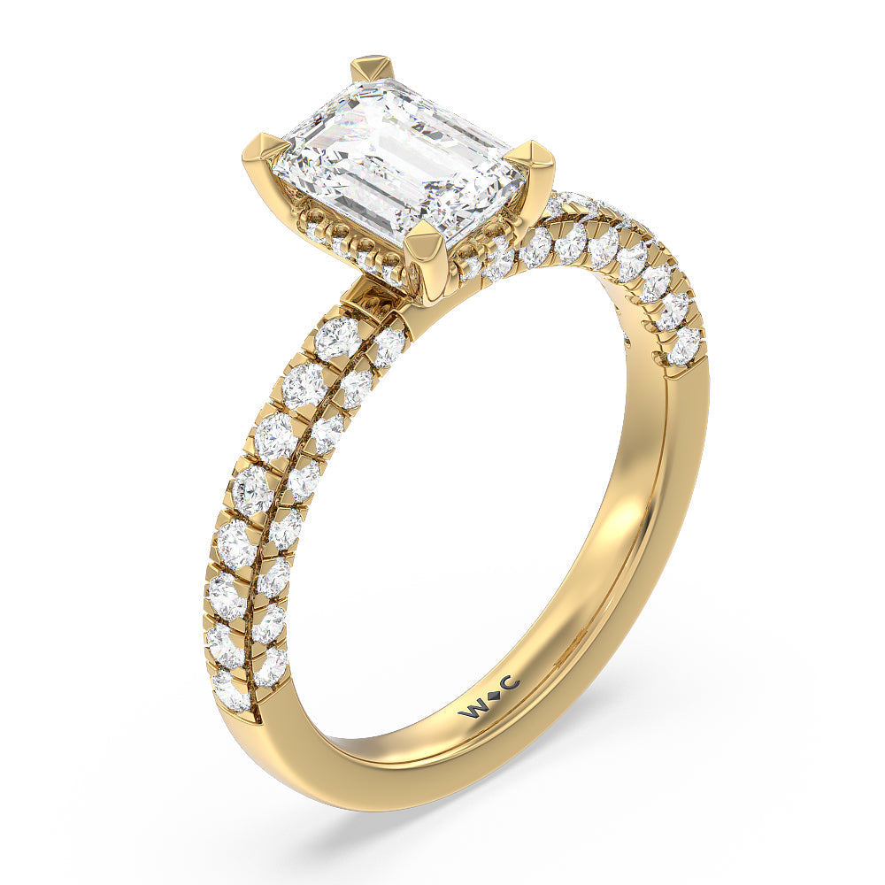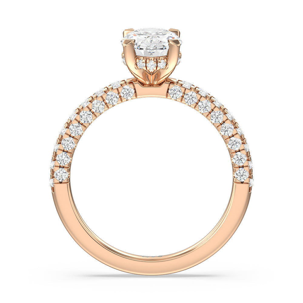 Make a statement with the under-the-radar elegance of this hidden halo diamond ring. This classy piece has its gorgeous center stone encircled from the side by a discreet band of diamonds. The ring brilliantly sparkles whether viewed on top, from the side, or at any angle.