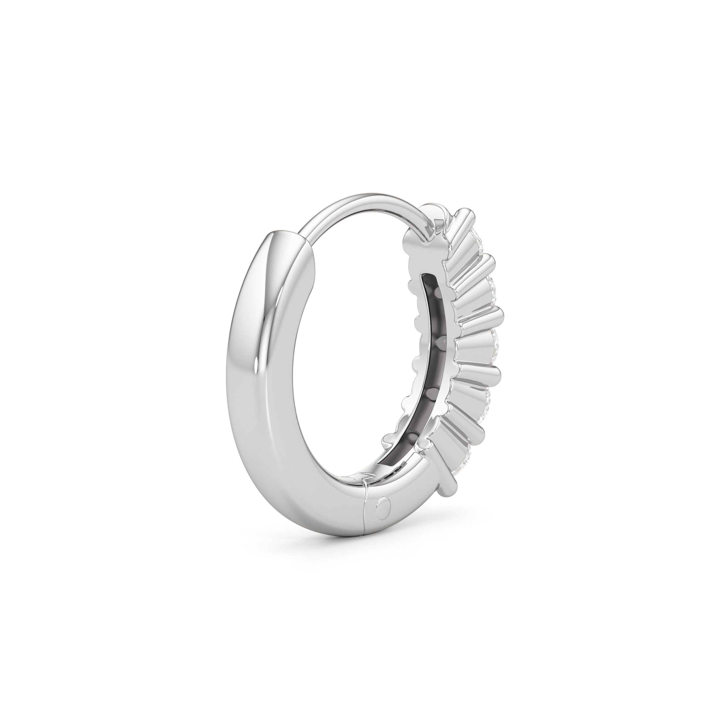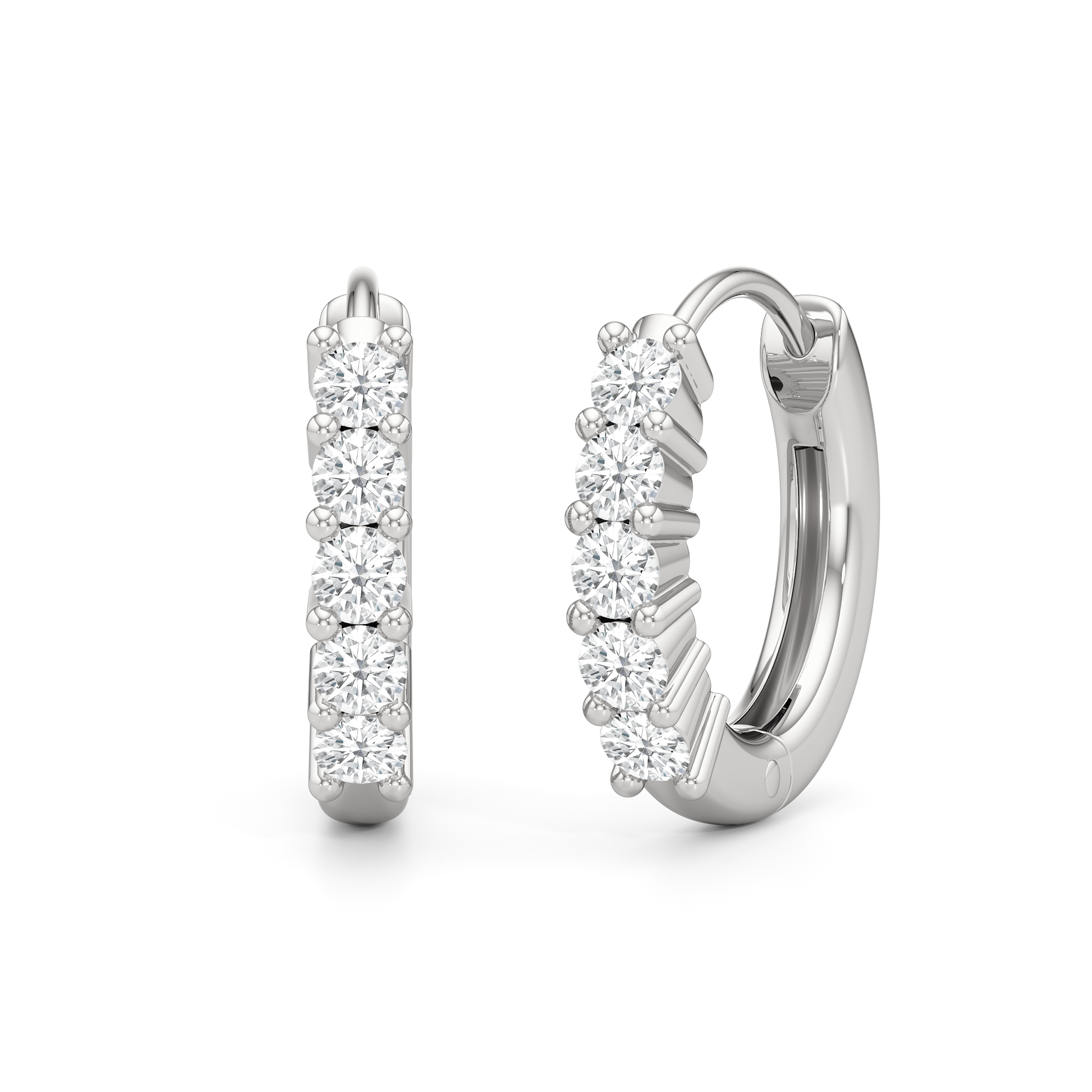 Warm and uncomplicated, Bask settles into your look like sunshine. A row of round diamonds lines each huggie’s front curve, held in shared prongs for maximum light. With less metal for more brilliance, this pair shines bright and wears easy.