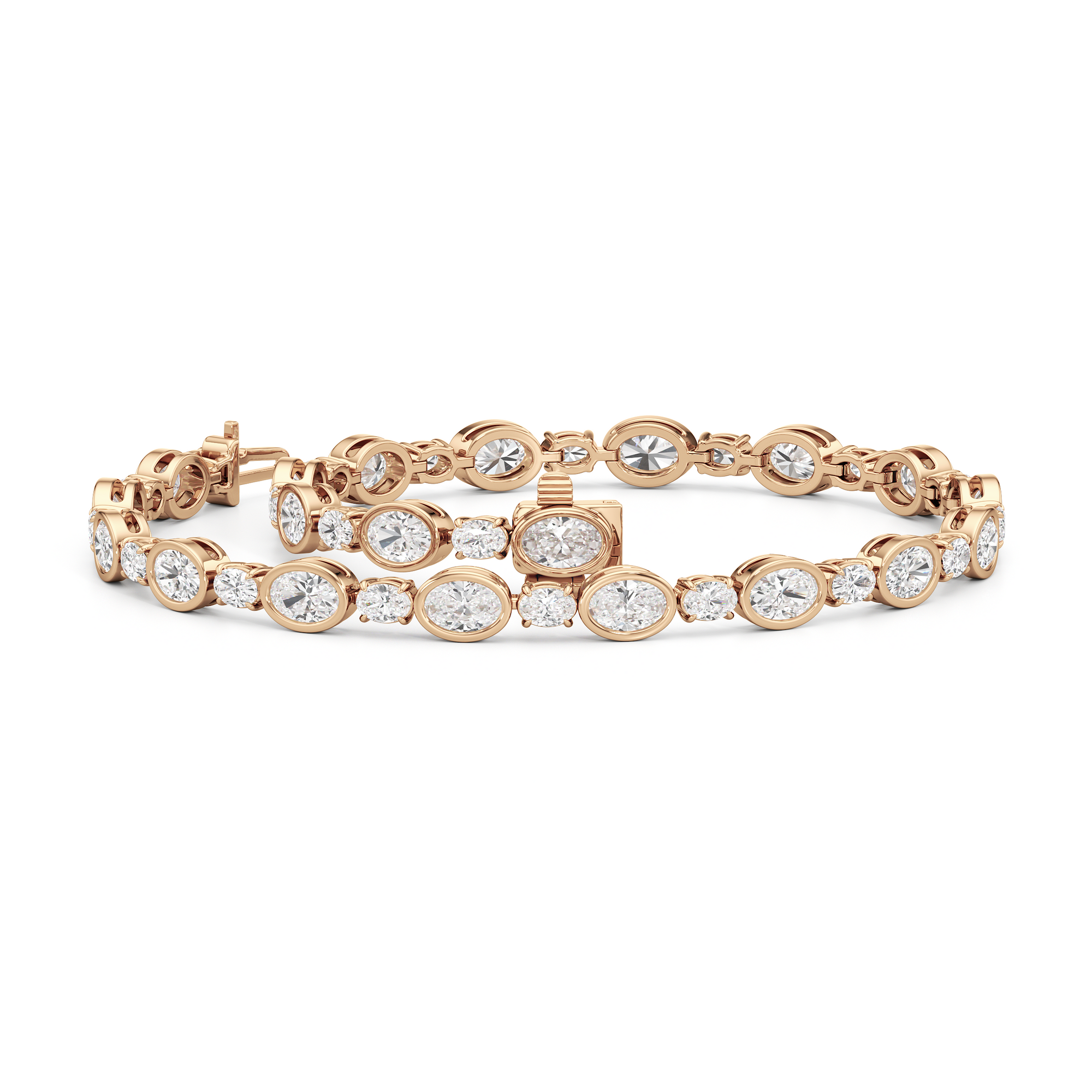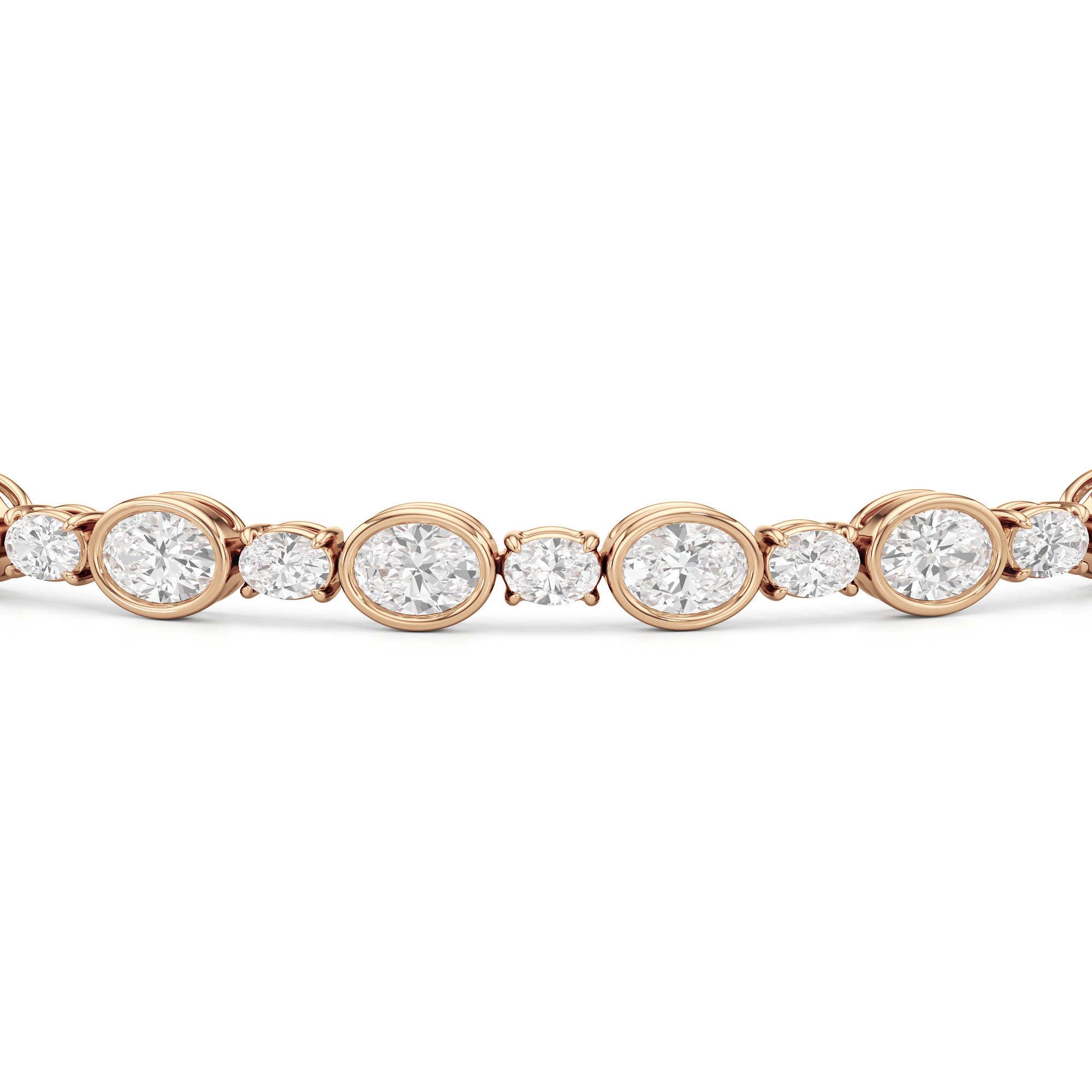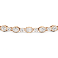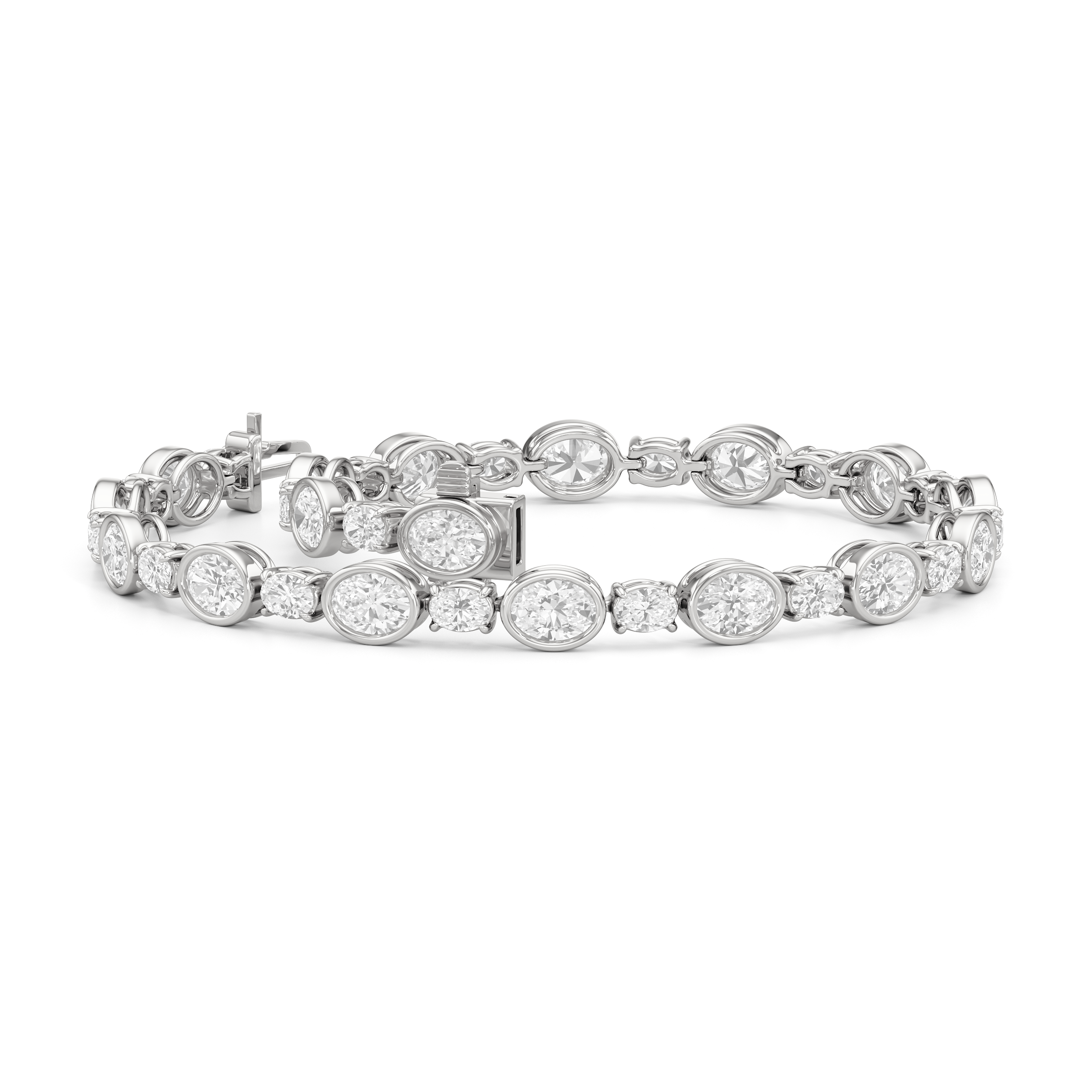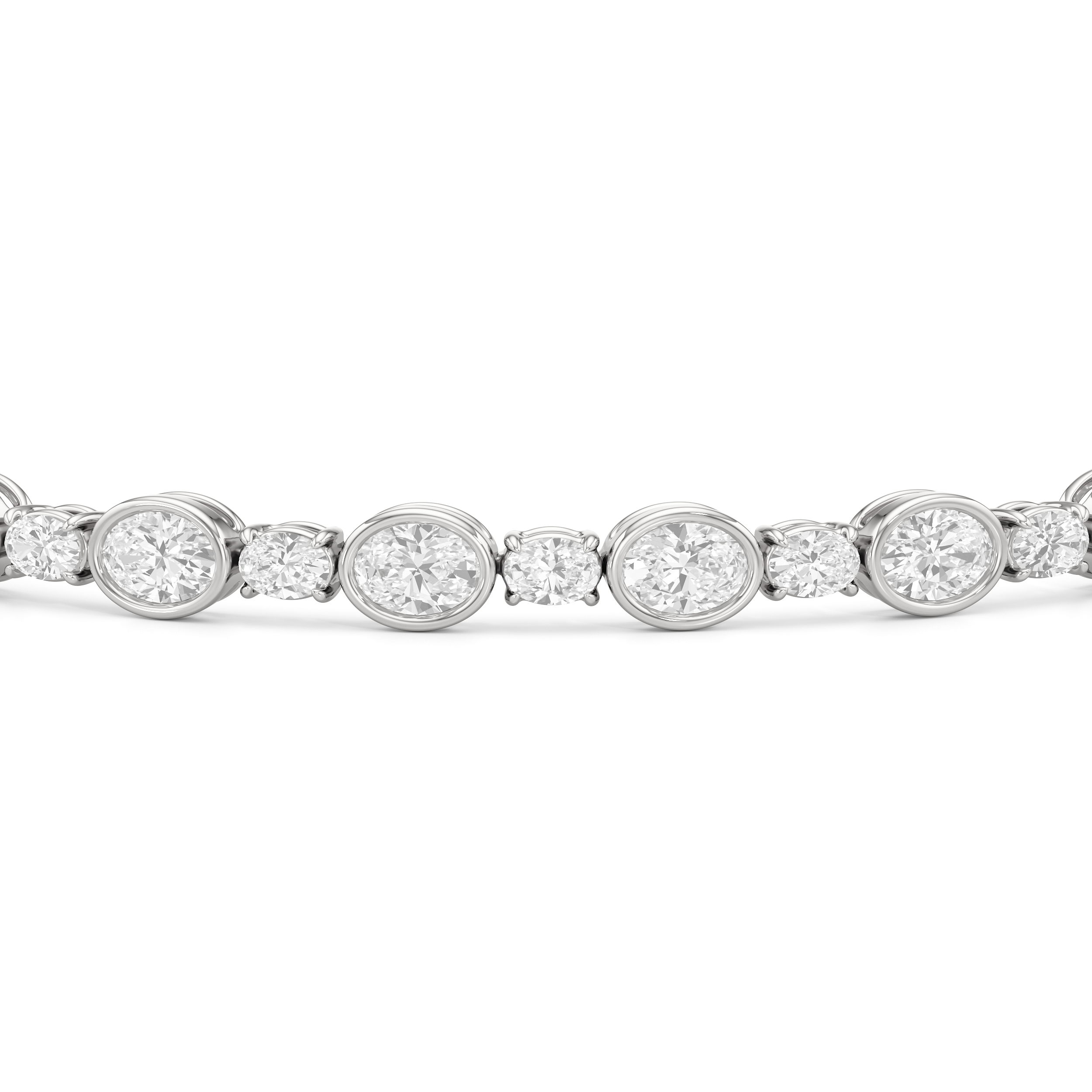 Alternating bezel-set and claw-prong-set oval diamonds line up beautifully in this timelessly elegant tennis bracelet. The straightforward chain of oval diamonds captures the spirit of simplicity, stripping back the unnecessary and leaving only what leaves real value.