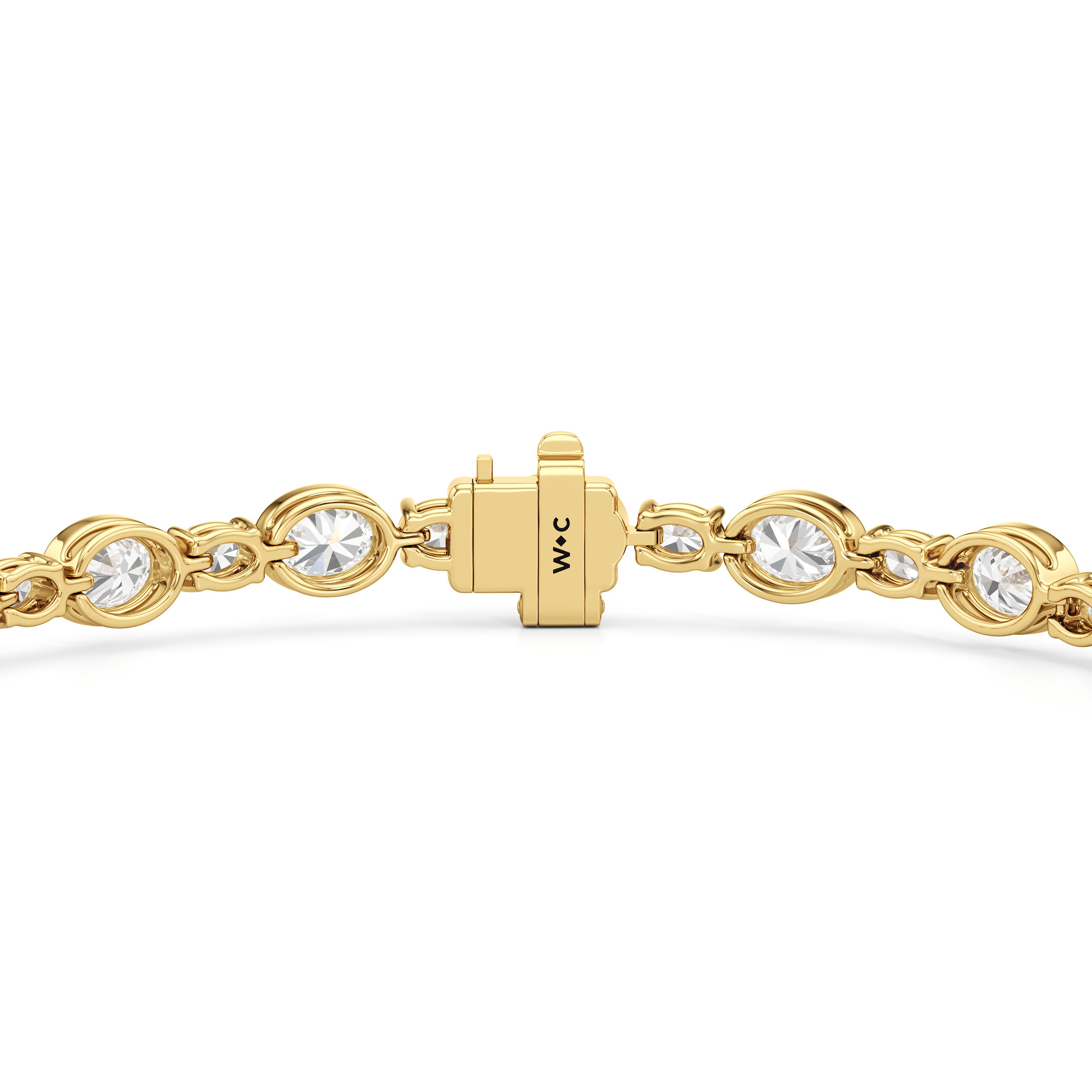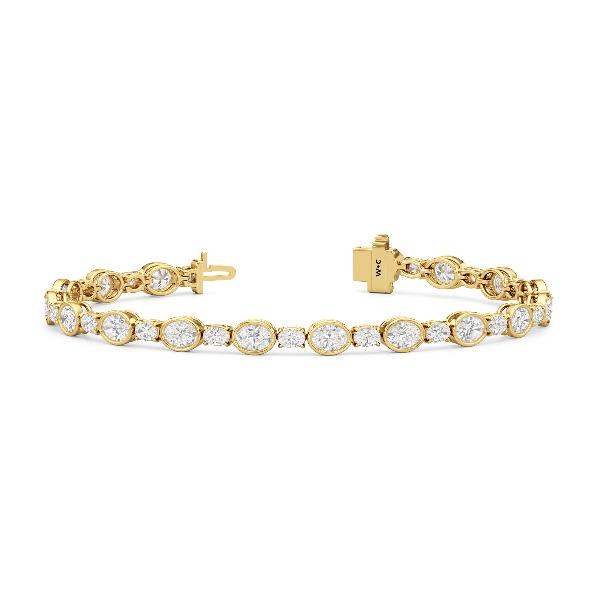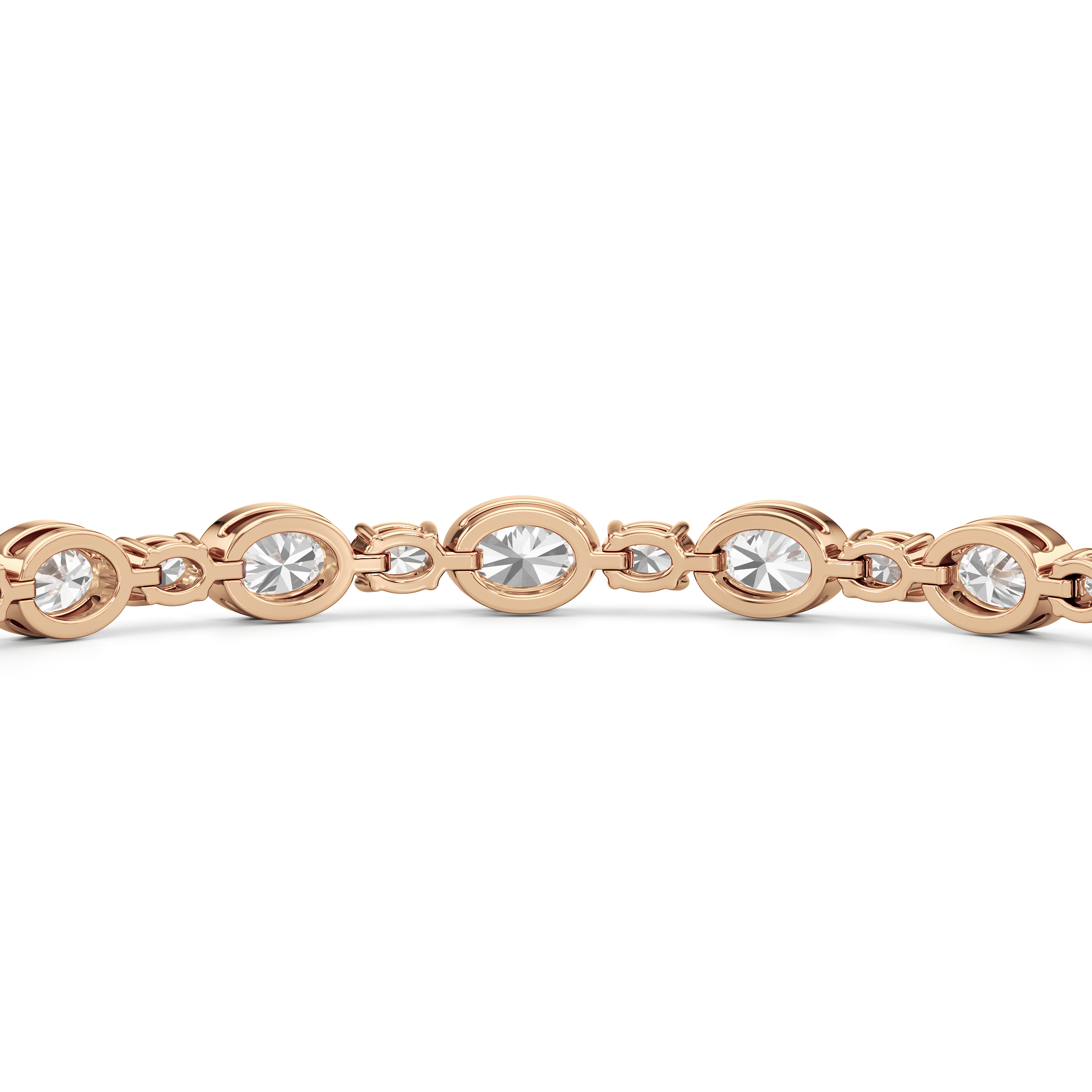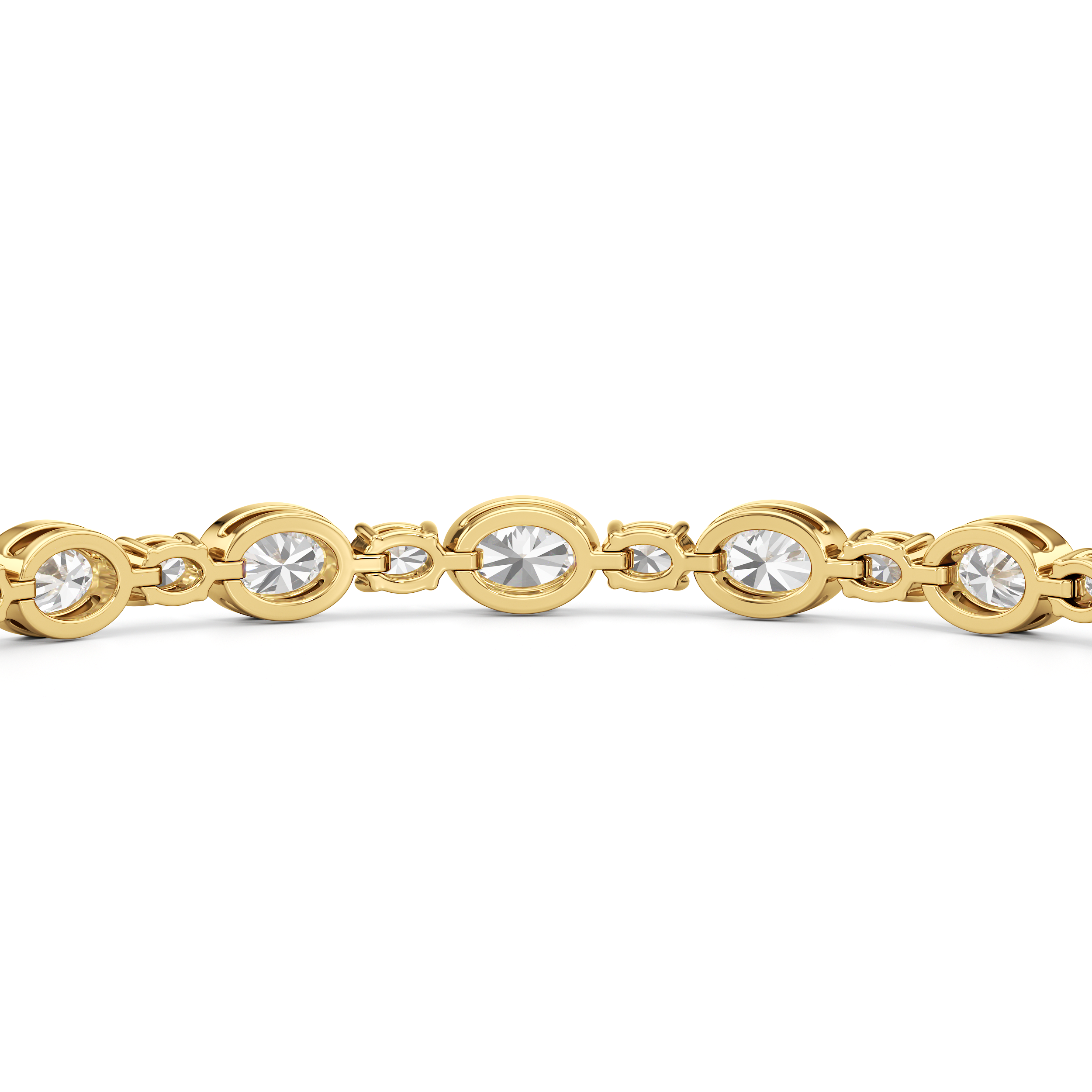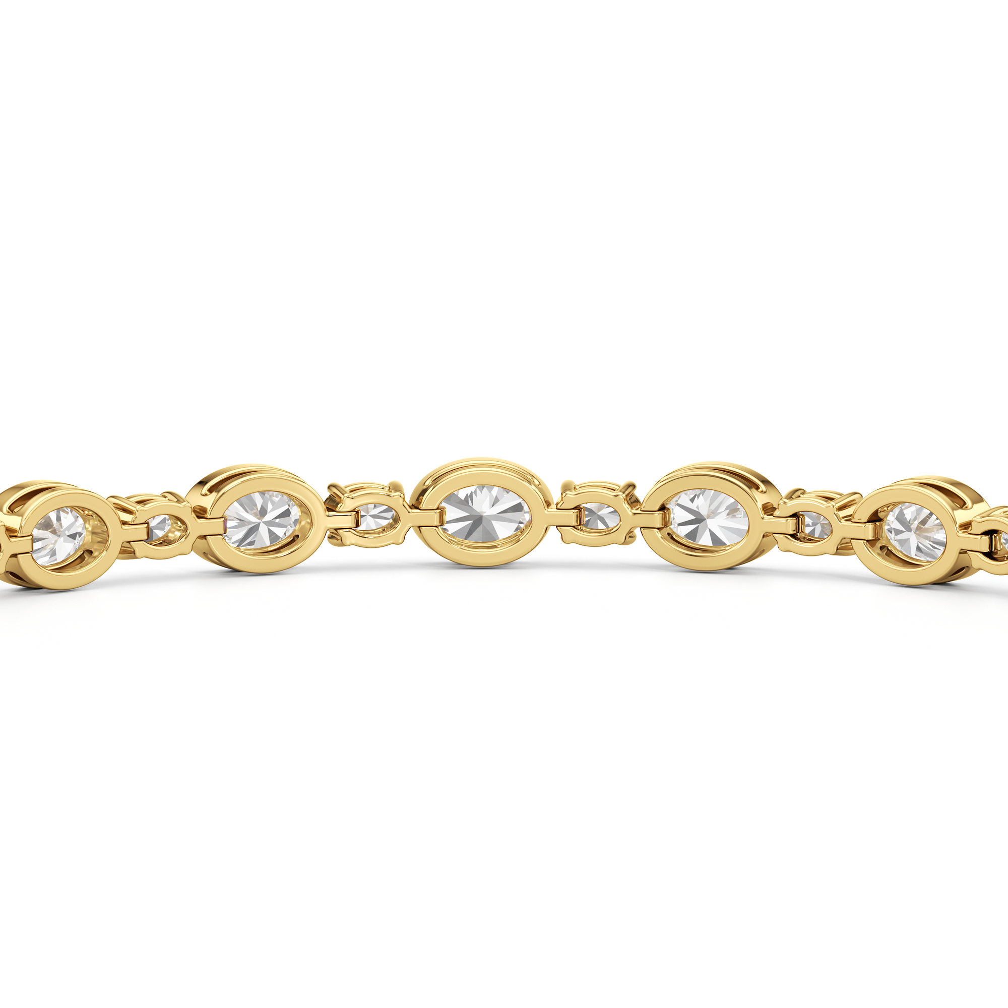 Alternating bezel-set and claw-prong-set oval diamonds line up beautifully in this timelessly elegant tennis bracelet. The straightforward chain of oval diamonds captures the spirit of simplicity, stripping back the unnecessary and leaving only what leaves real value.
