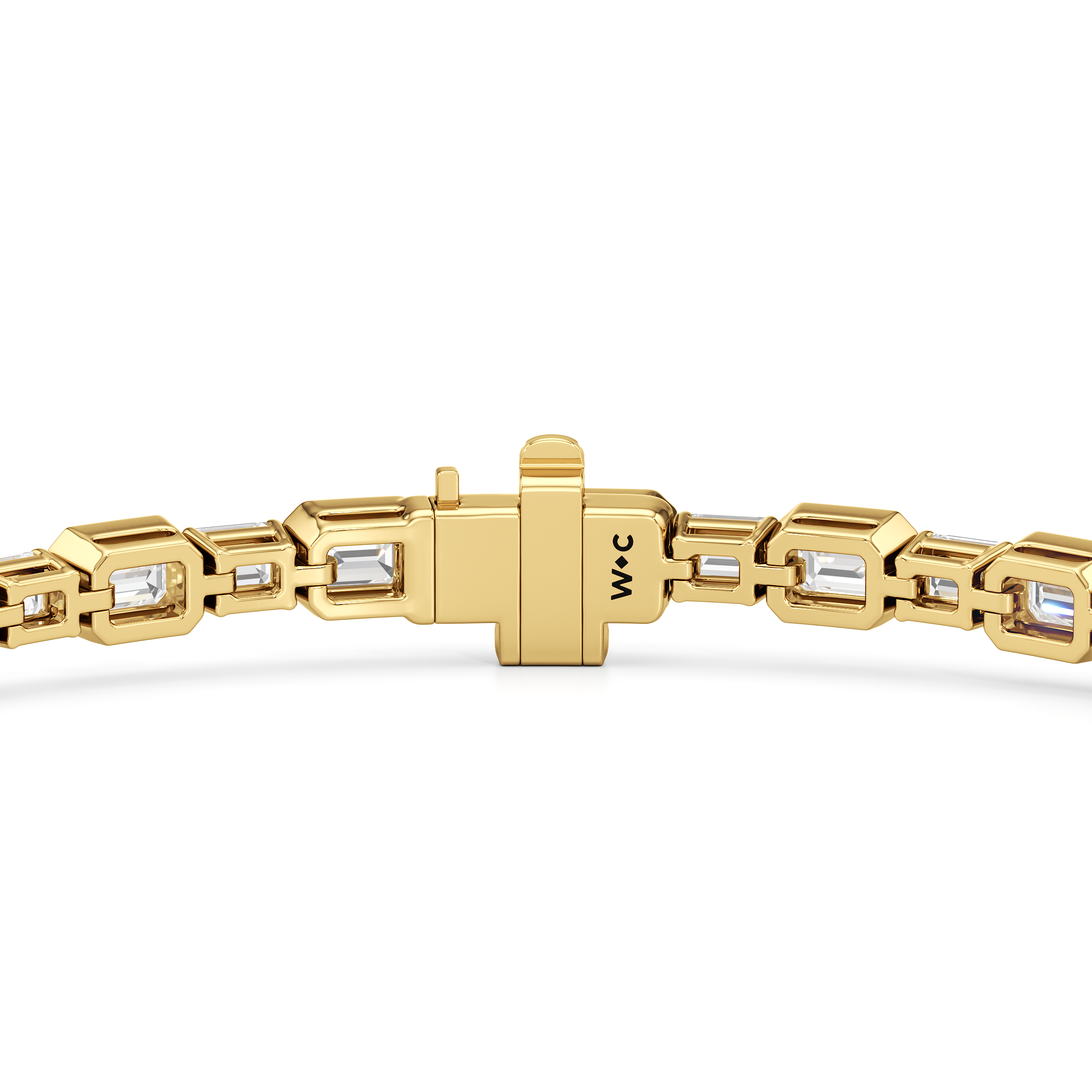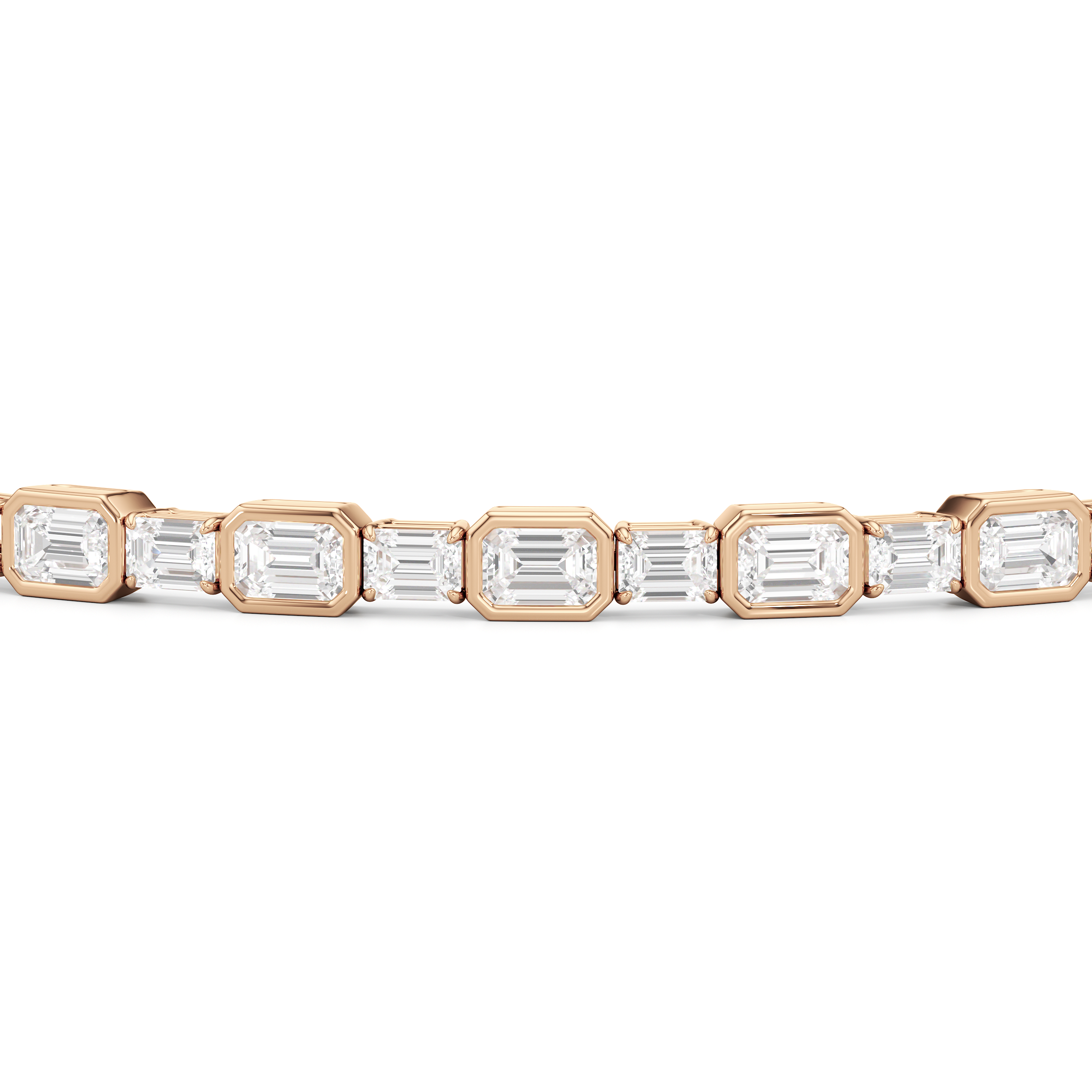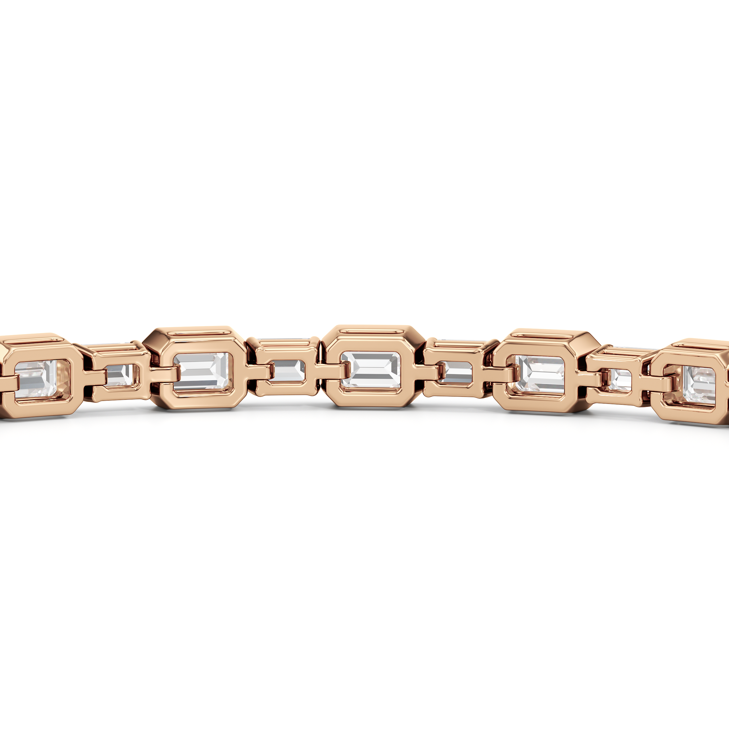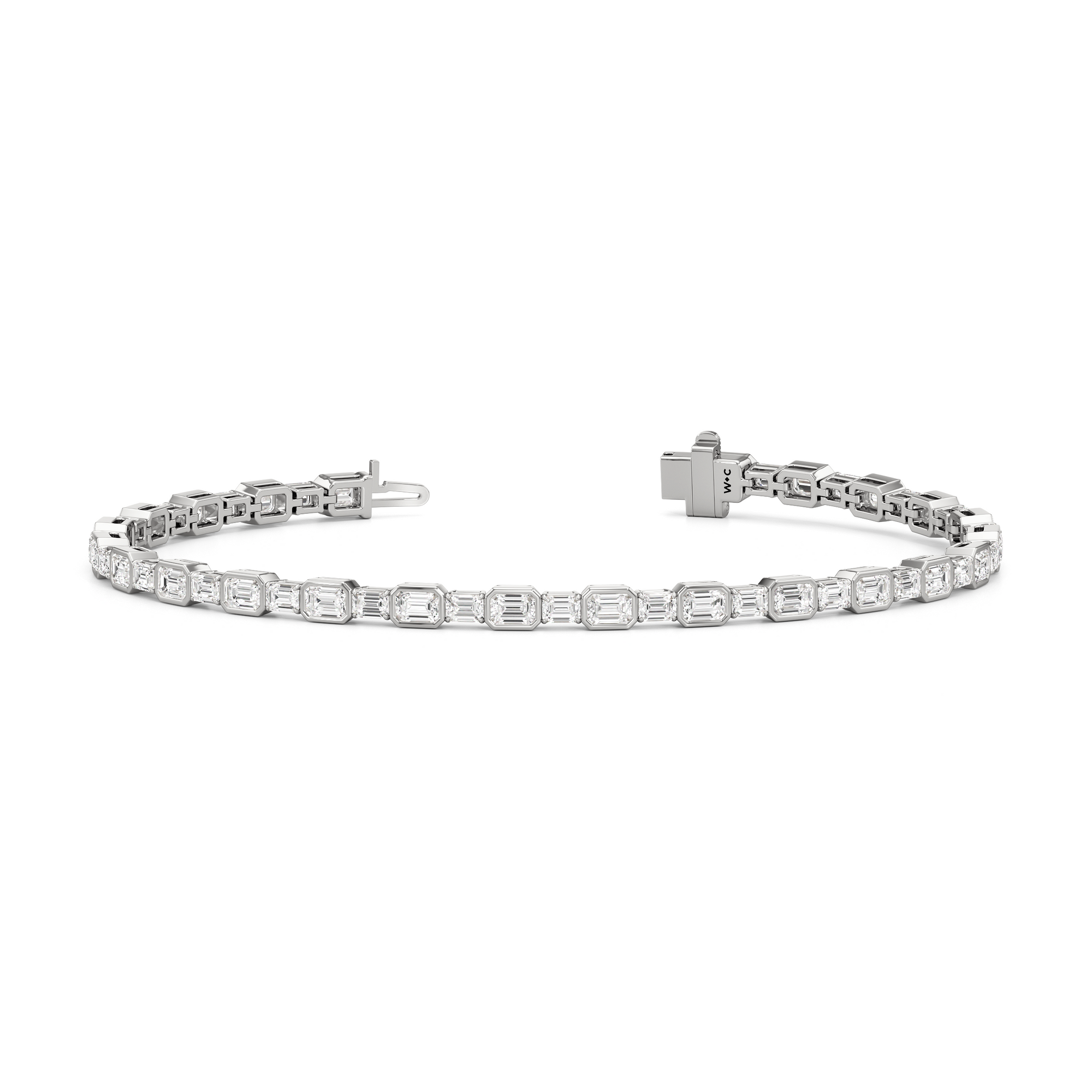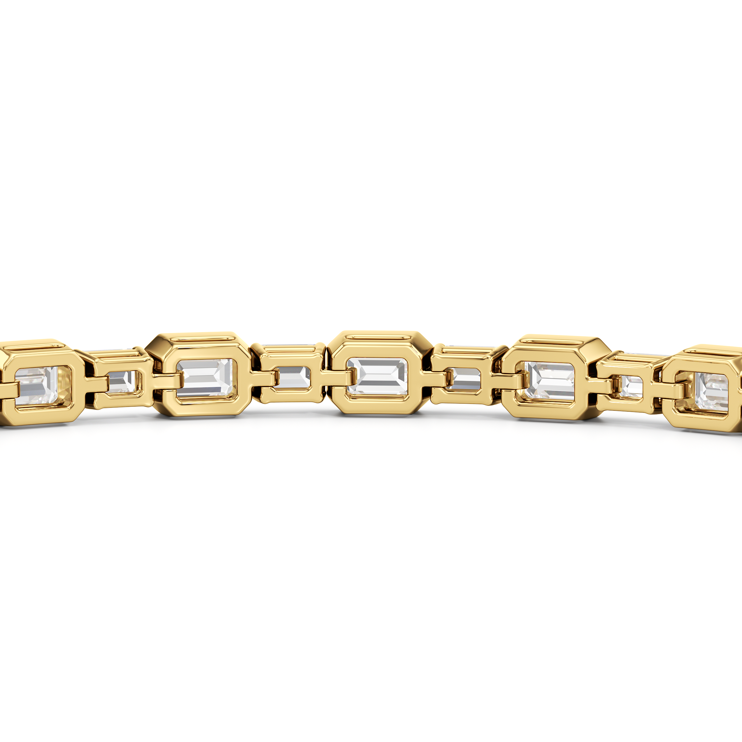 See this diamond tennis bracelet sit boldly on your wrist. It features a continuous line of emerald-cut diamonds alternately set in claw prongs and bezel settings. With its series of emerald-cut diamonds that command attention, this diamond bracelet is undeniably a covetable piece.