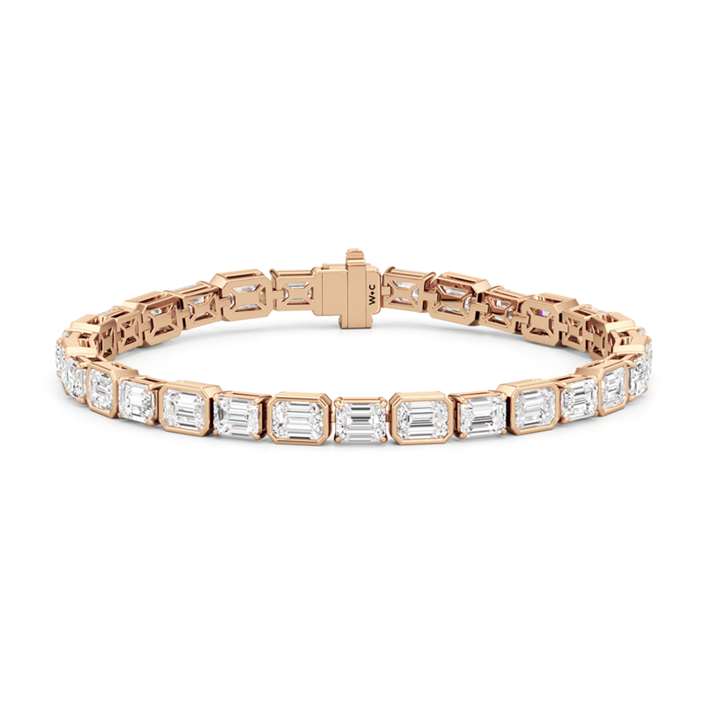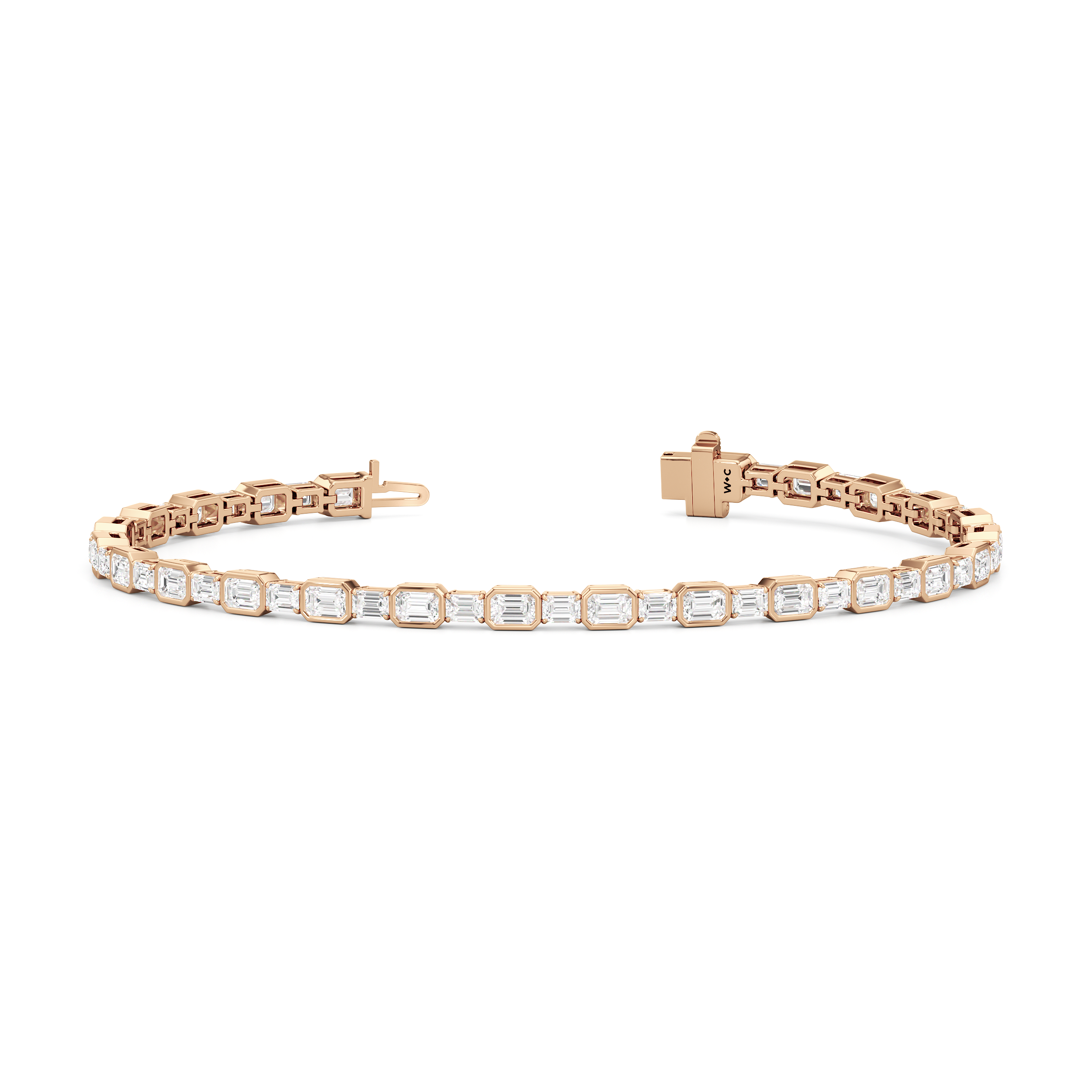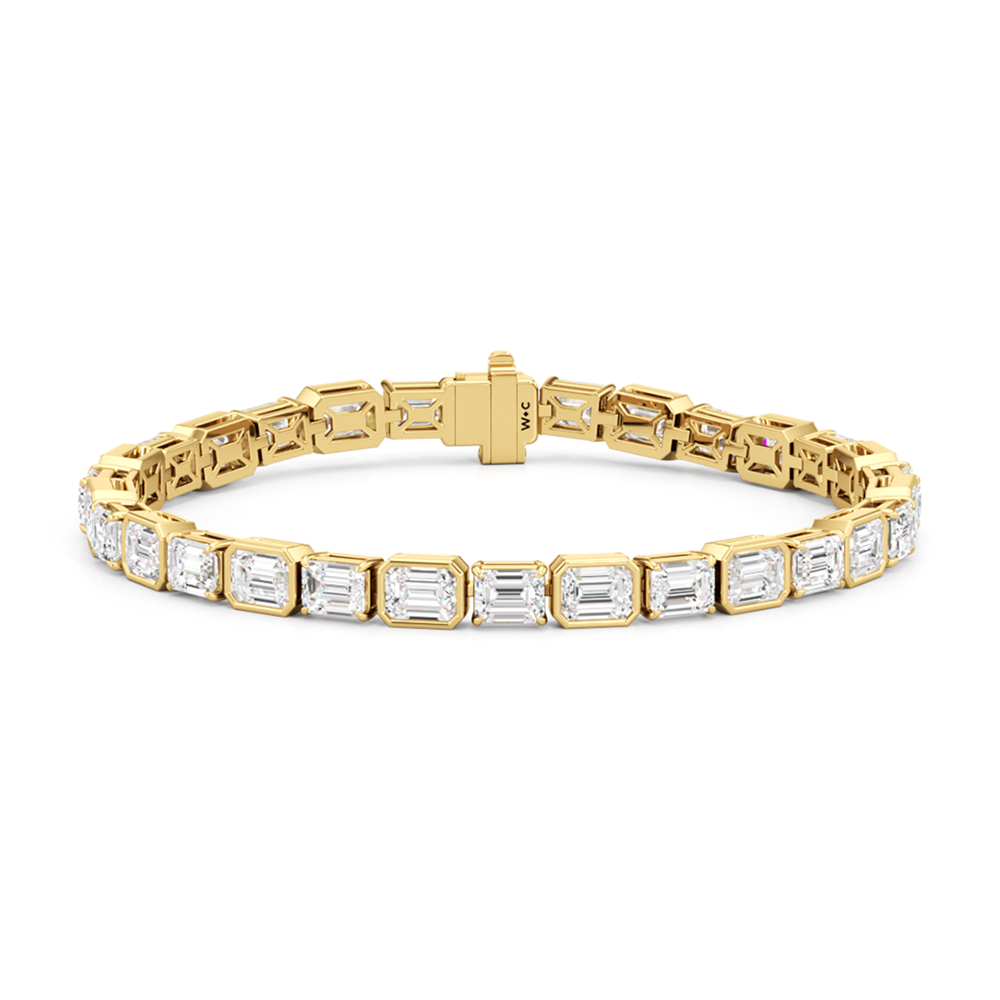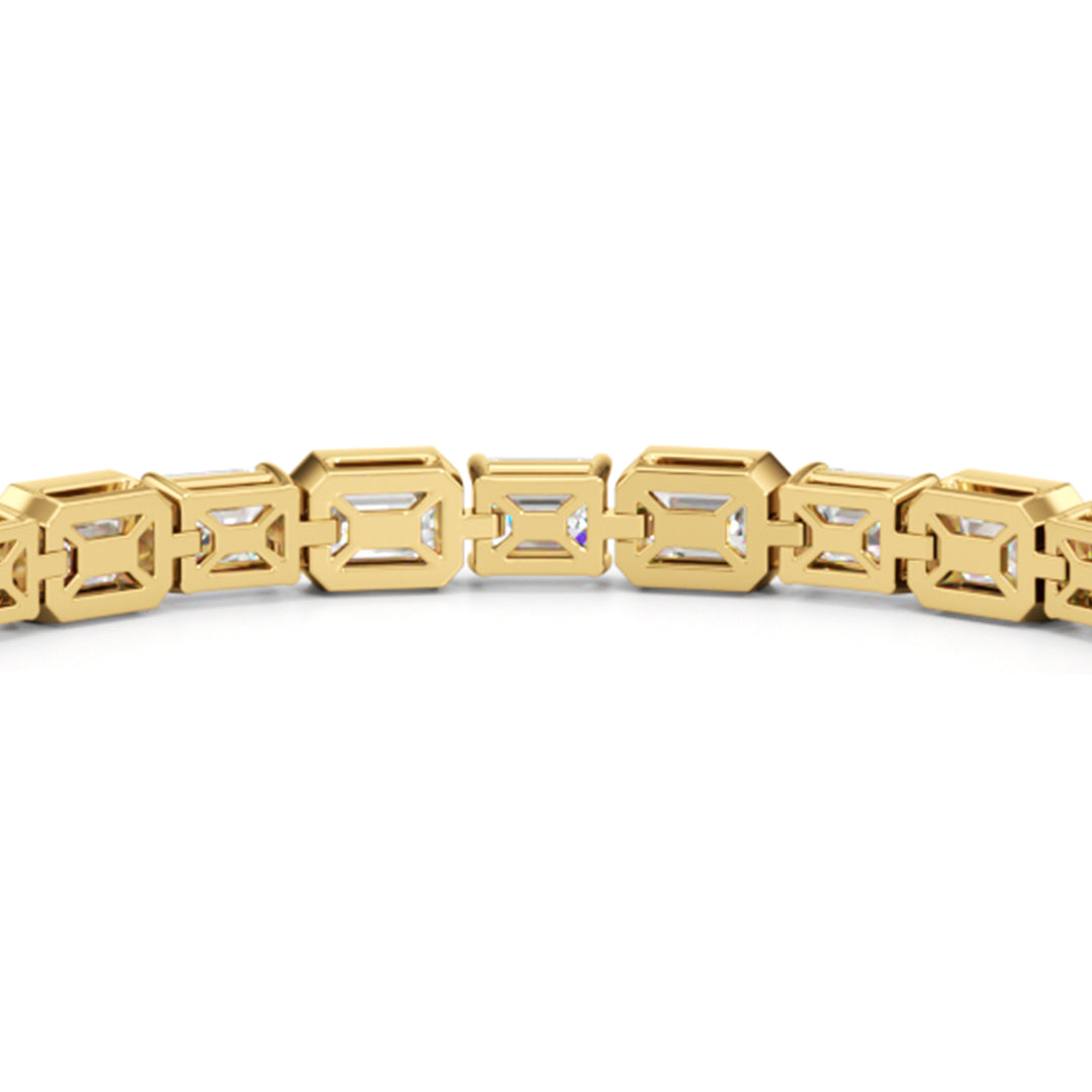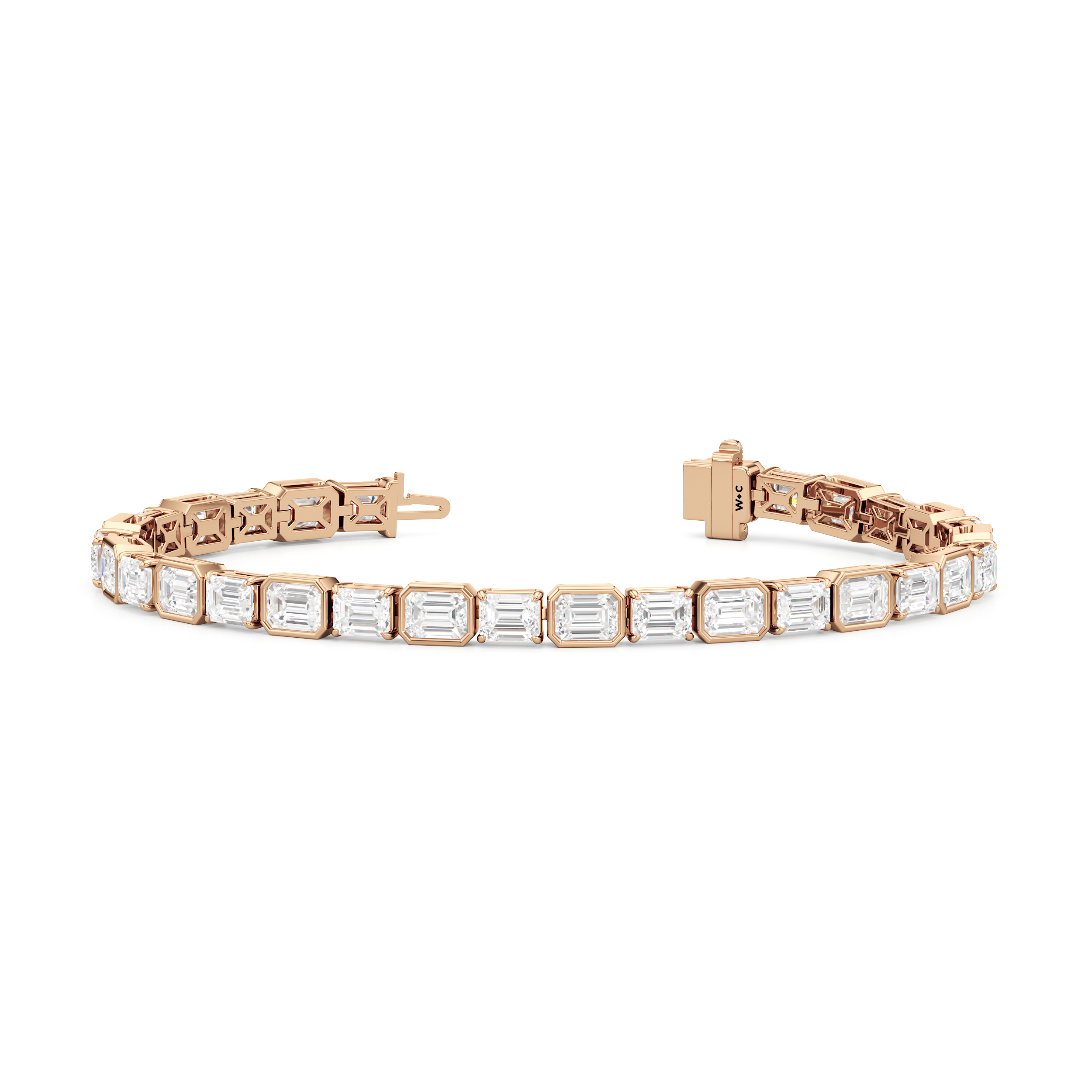 See this diamond tennis bracelet sit boldly on your wrist. It features a continuous line of emerald-cut diamonds alternately set in claw prongs and bezel settings. With its series of emerald-cut diamonds that command attention, this diamond bracelet is undeniably a covetable piece.