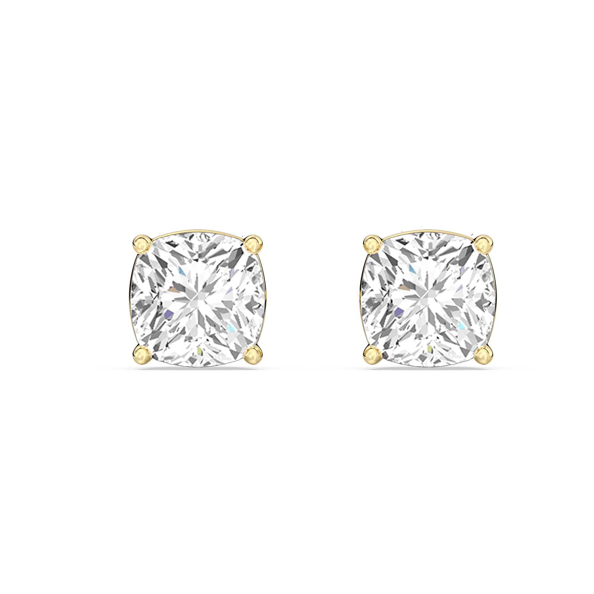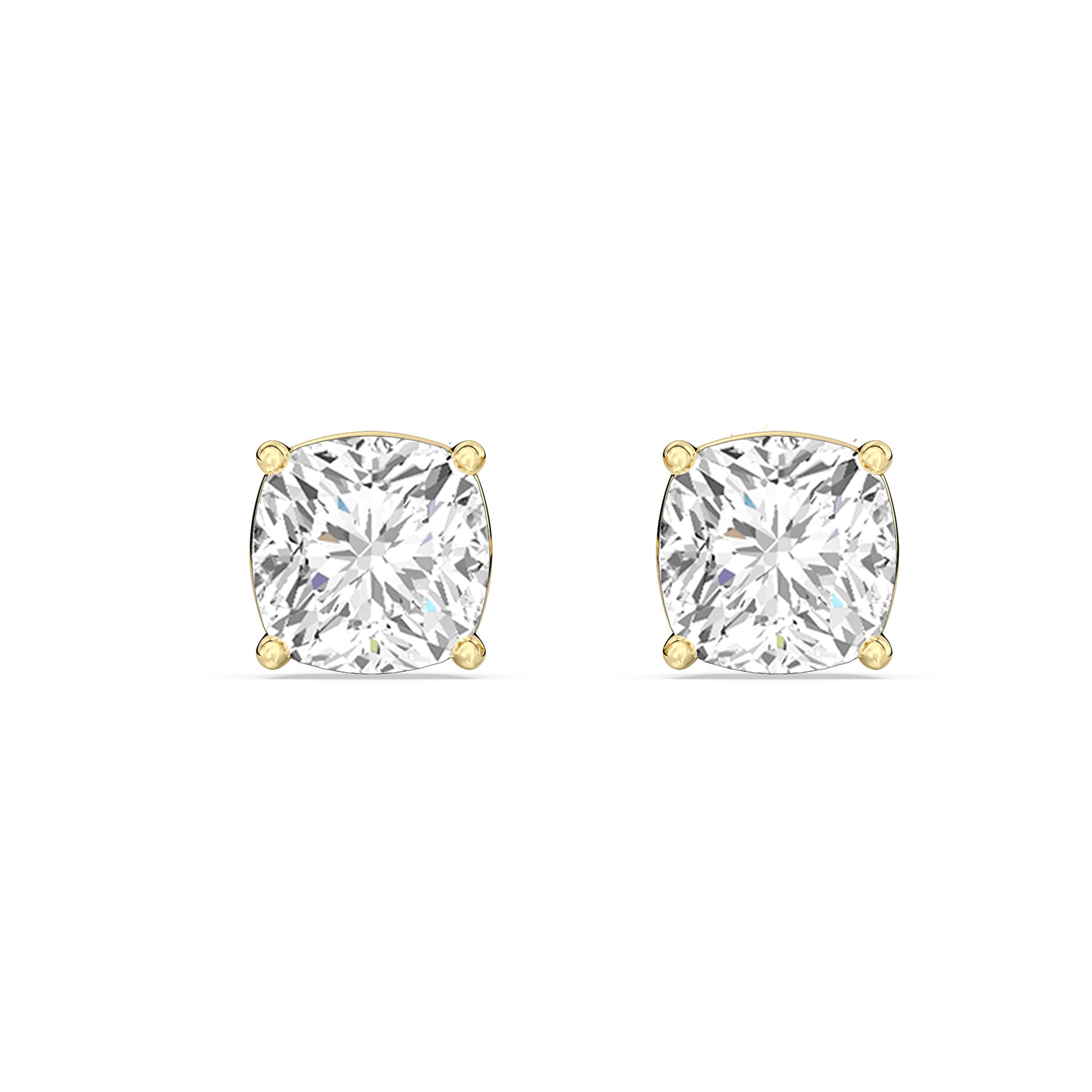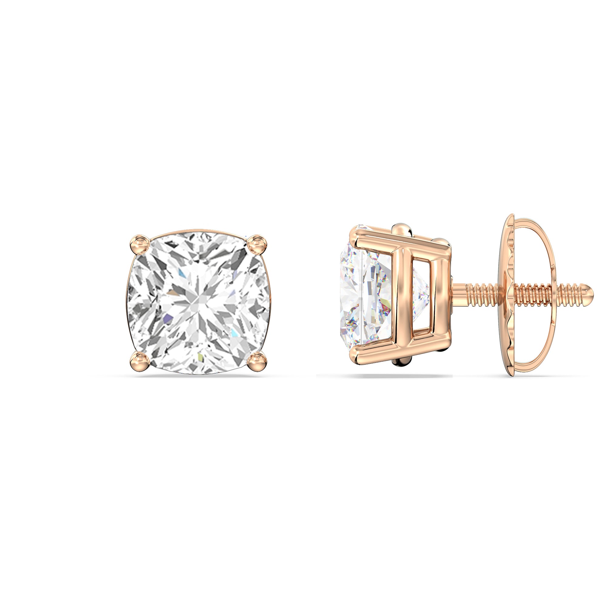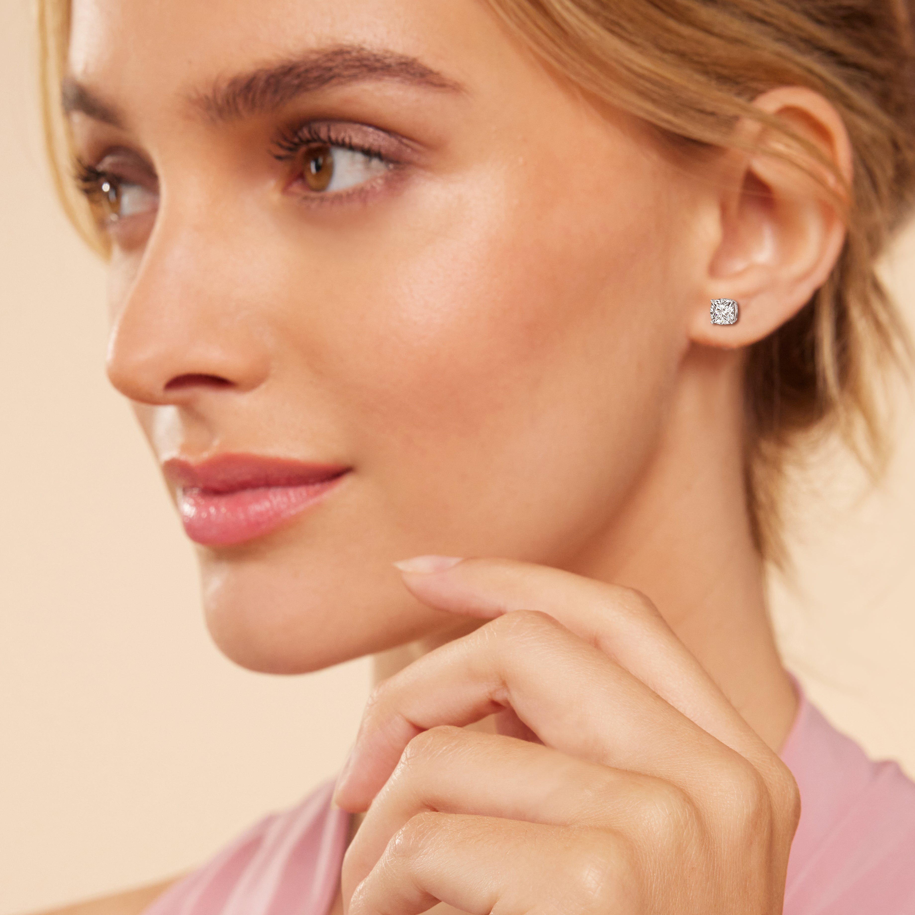 These cushion diamond stud earrings make daily accessorizing infinitely easier. They boast a distinct look with their square shape, rounded corners, large facets, and exceptional brilliance—all presented in a versatile, minimalist profile. The screw backs ensure a secure and effortless fit.