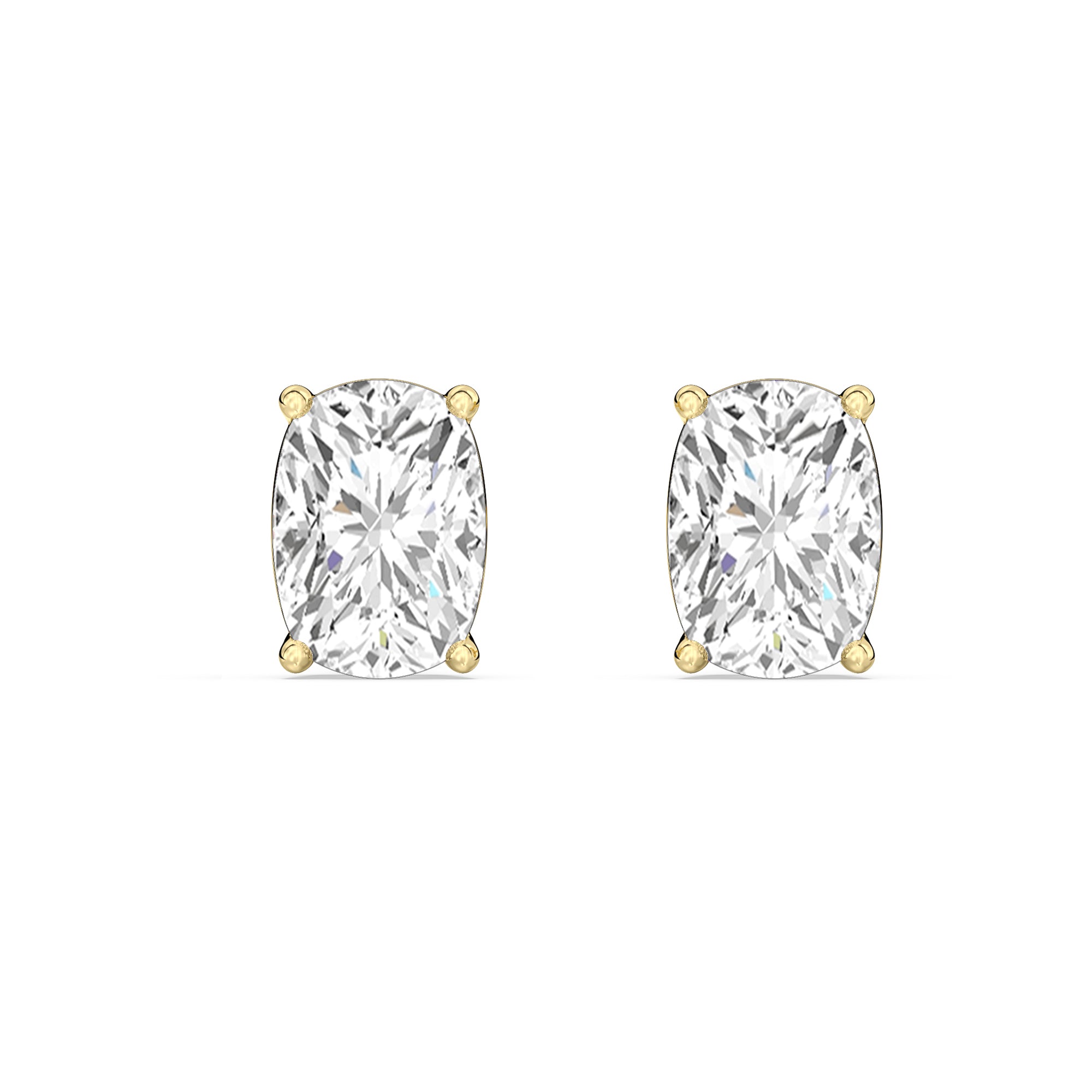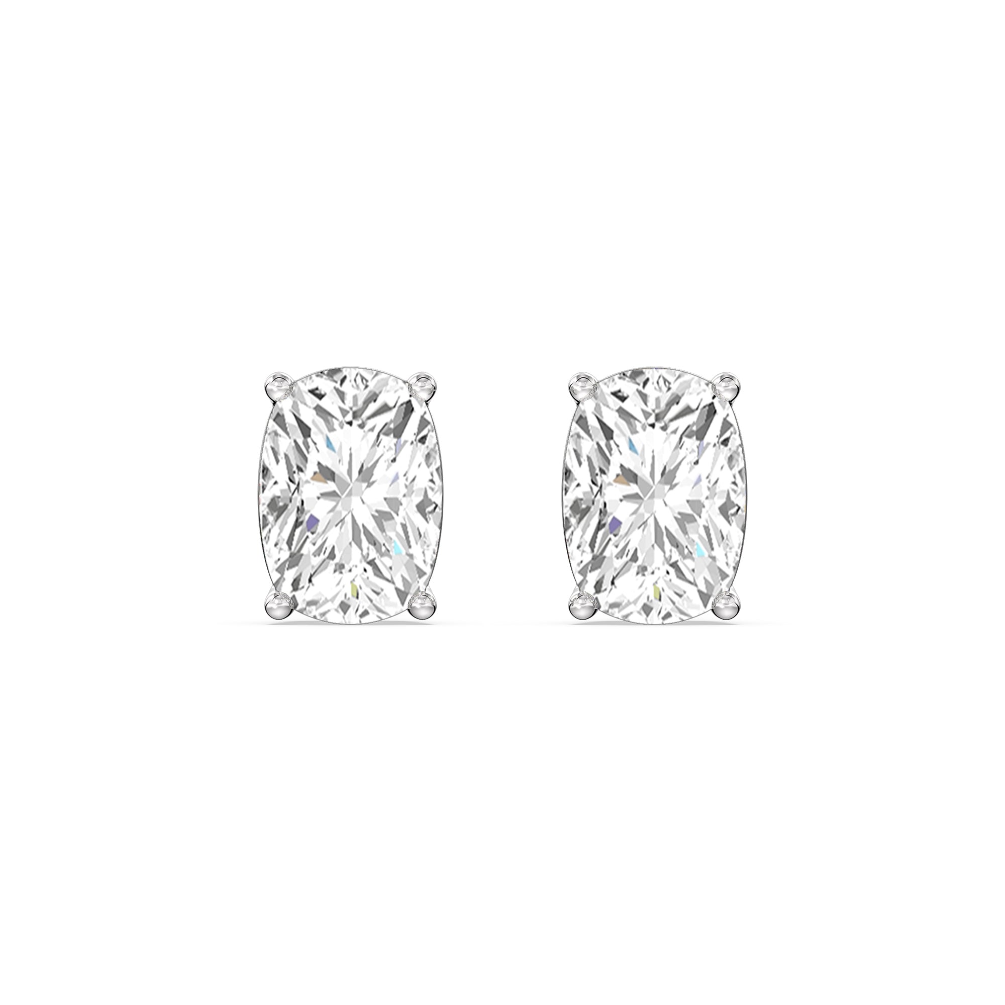 The stretched silhouette of the elongated cushion diamonds gives these studs a distinct look. Their unmistakable flashes of brilliance will effortlessly complete an outfit. These diamond studs feature a threaded post and a screw-back closure, ensuring security and ease of wear.