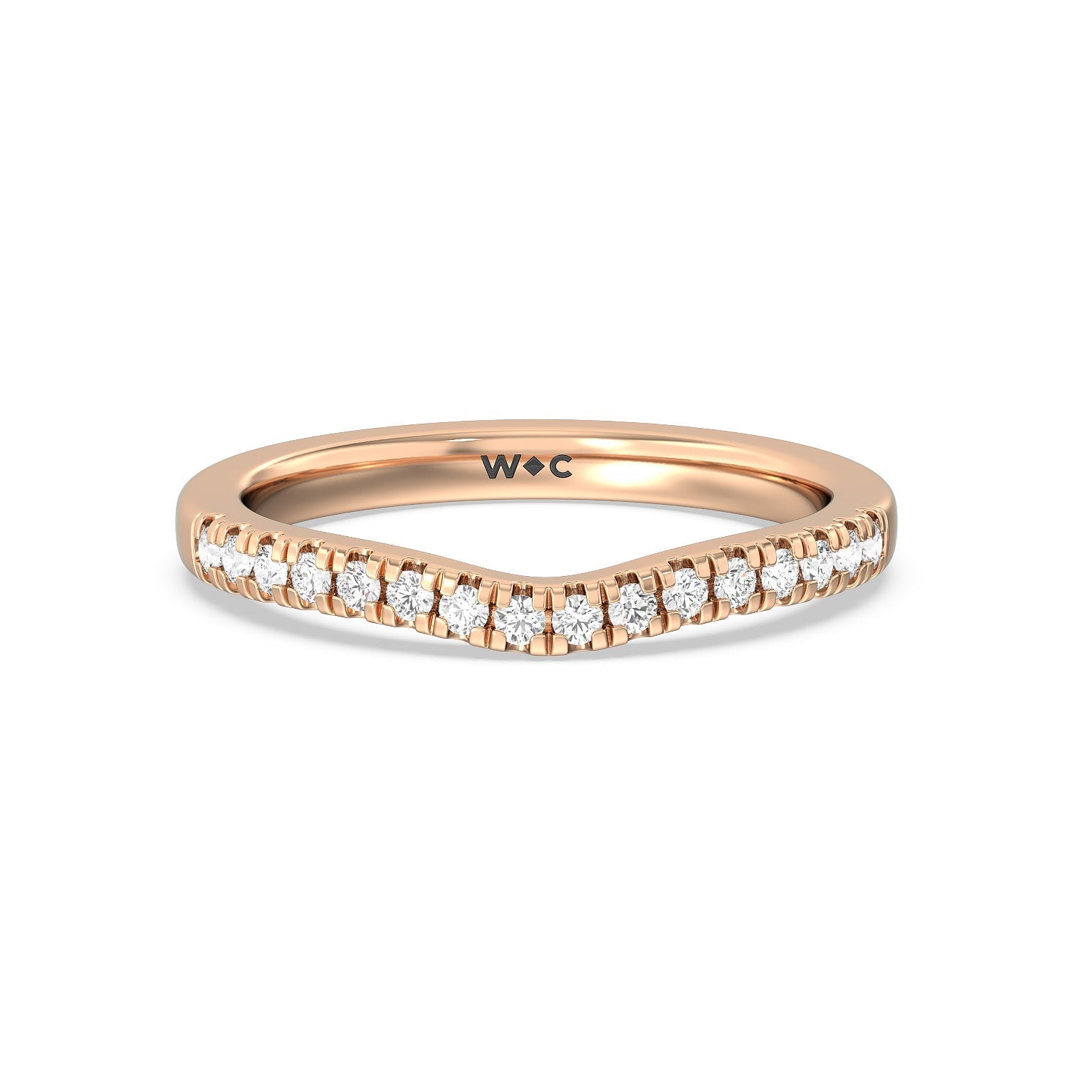 This curved diamond set wedding band is perfectly contoured to complement our classic four prong solitaire diamond engagement ring for a simple and sophisticated look.