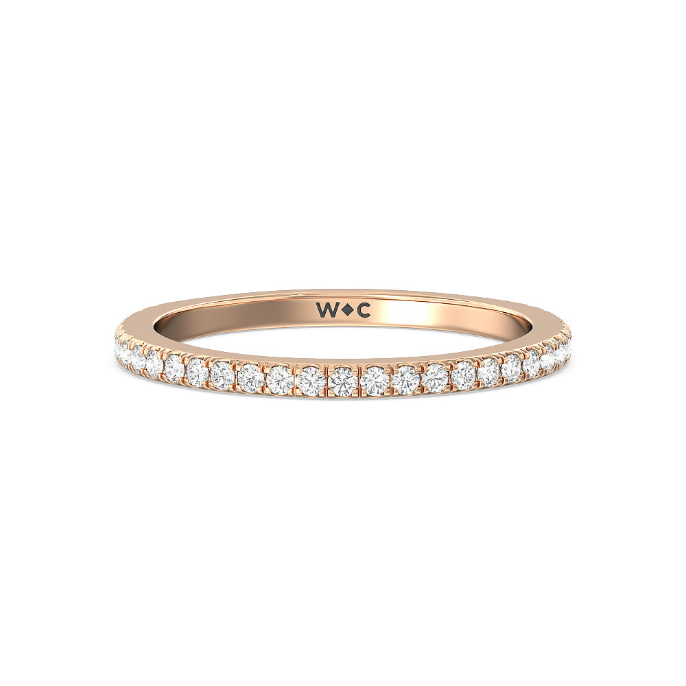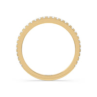 Shimmering pave diamonds cascade down this band to create a timeless beauty that will never go out of style. Designed to be paired with our classic hidden halo engagement Ring for a simple and sophisticated look.