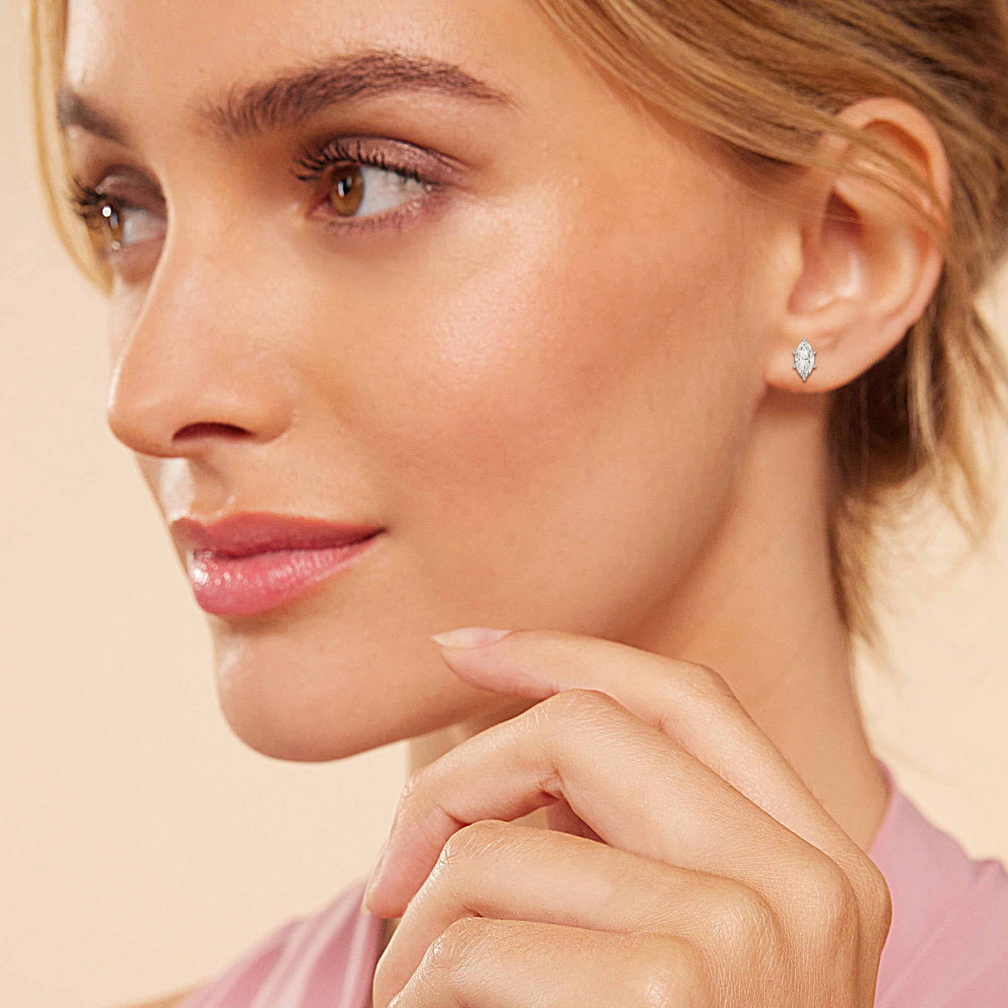 Full of sophistication, the marquise diamond stud earrings are a captivating choice. These stud earrings are secured with a six prong setting with screw backings for versatile, everyday wear.