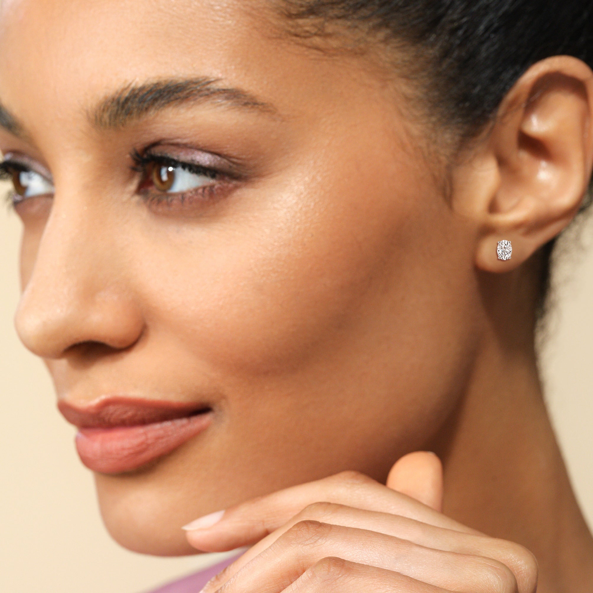 Simple and Stunning, These Oval Brilliant-Cut Diamond Studs Glisten From Every angle. The Carefully Matched Diamonds are Set In Four-Prong Baskets Of Gold For 360 Degree Sparkle.