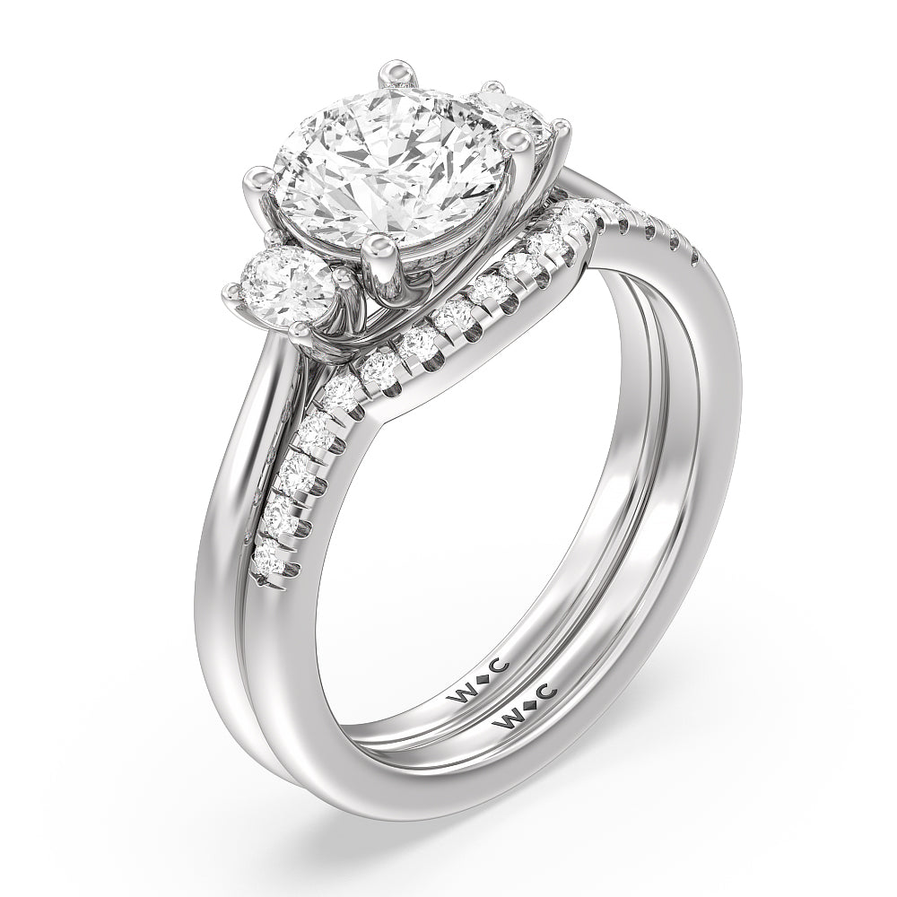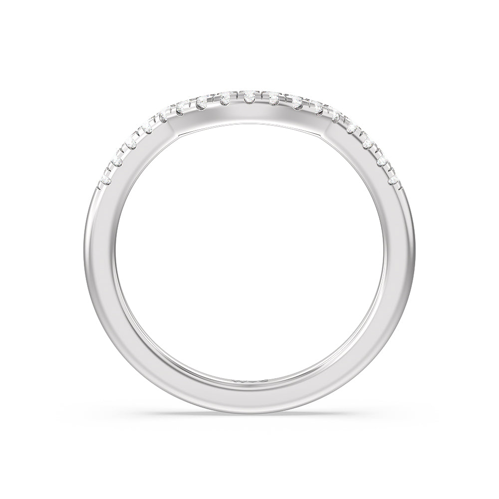 This curved diamond set Engagement Ring is perfectly contoured to complement our classic oval side stone In trellis basket engagement ring for a simple and sophisticated look.