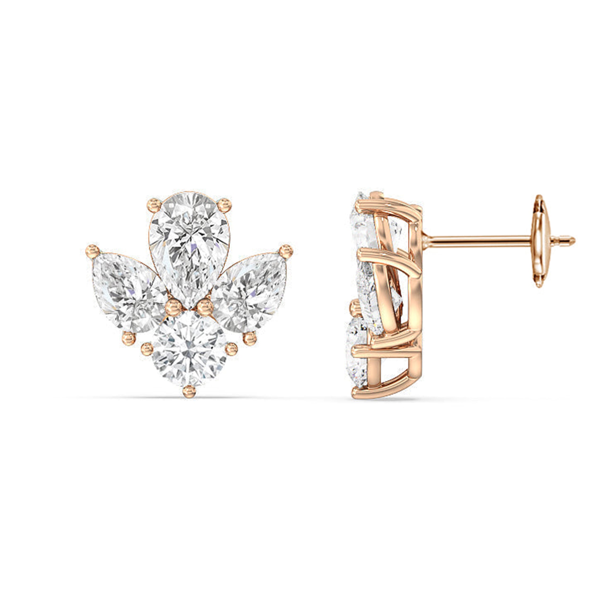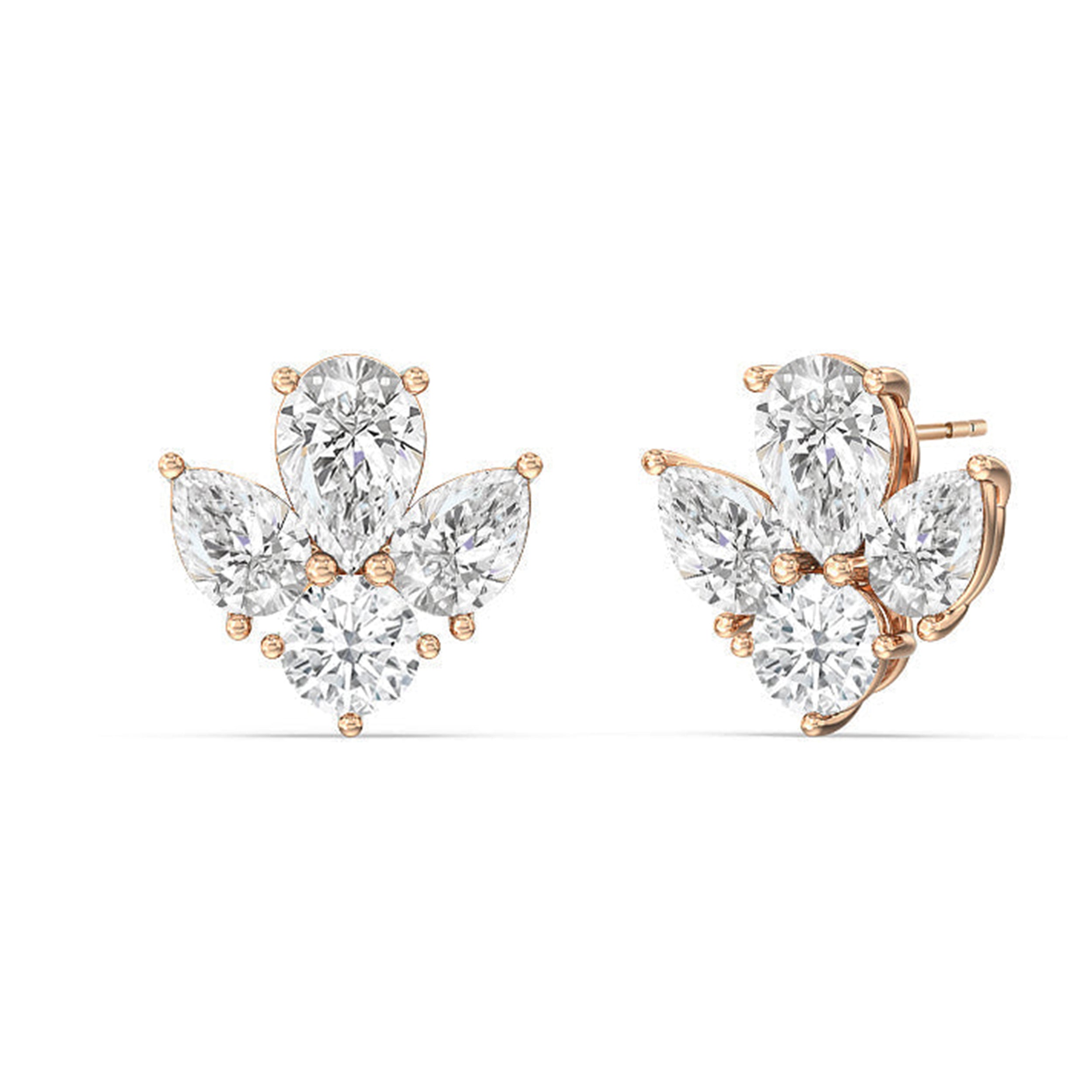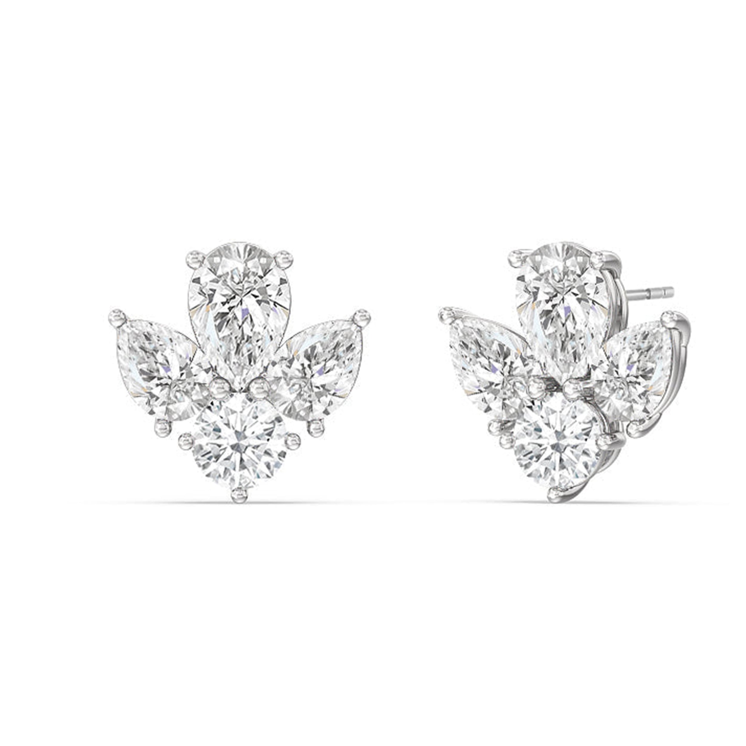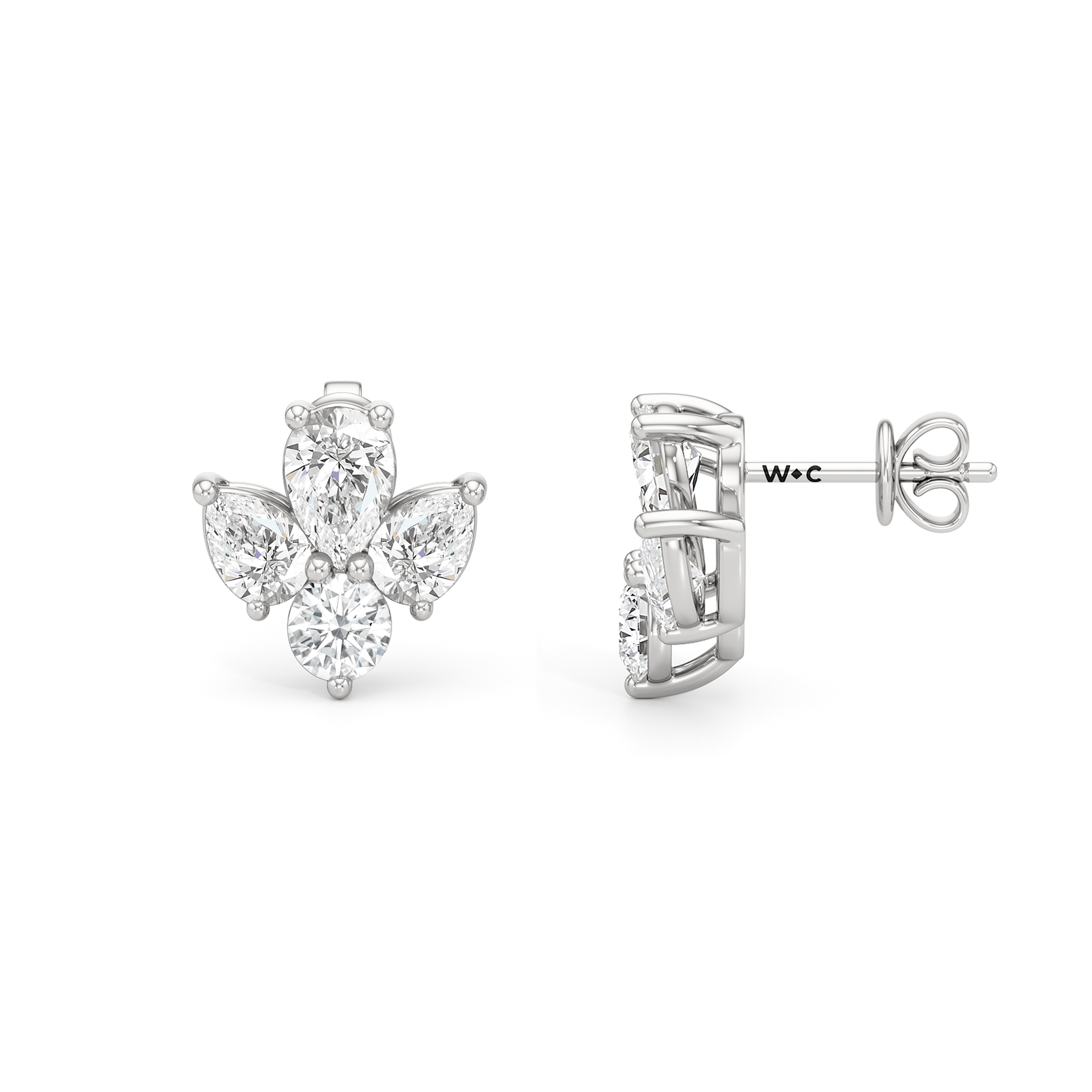 You can't fault the timeless appeal of these diamond cluster earrings. Each stud features a symmetrical assembly of pear-cut diamonds, punctuated by a single round diamond on a four-prong basket setting. You'll love these earrings for their understated