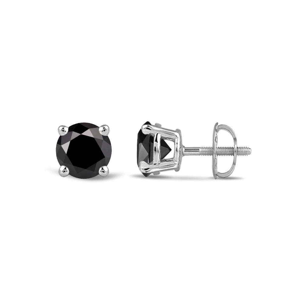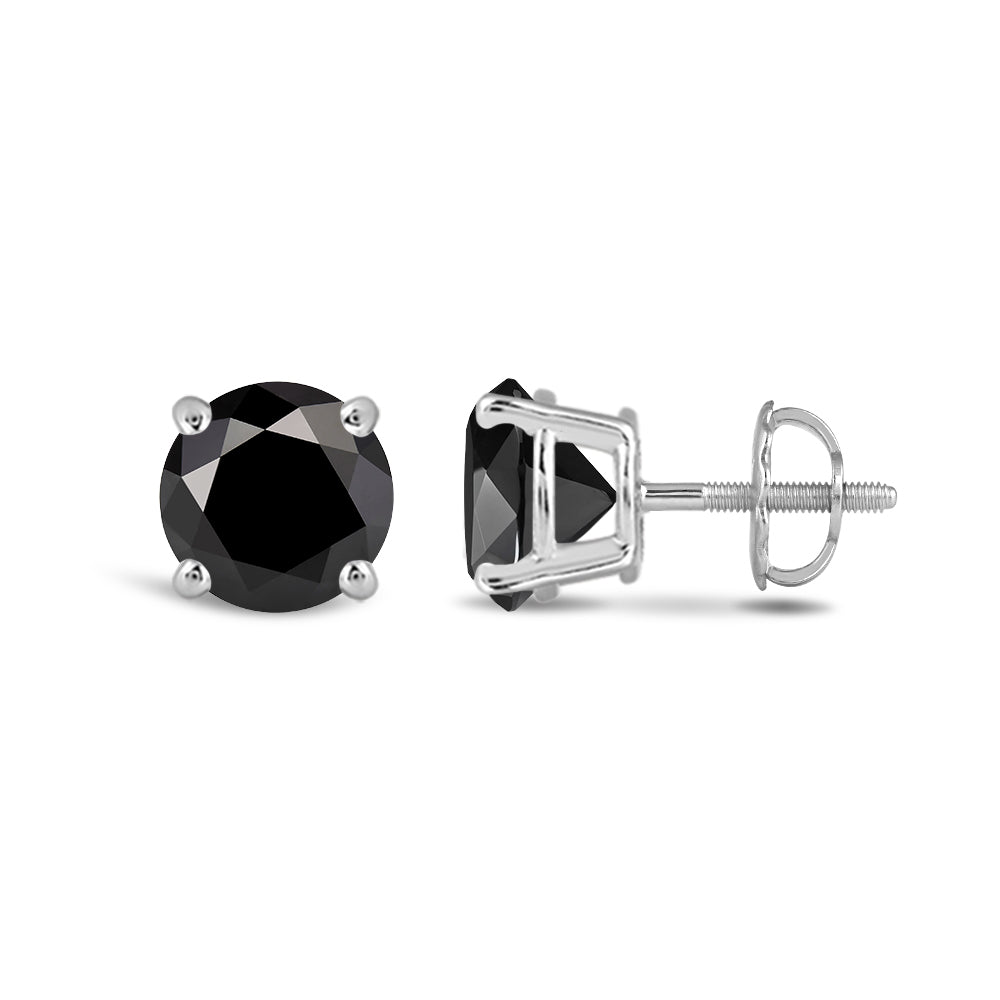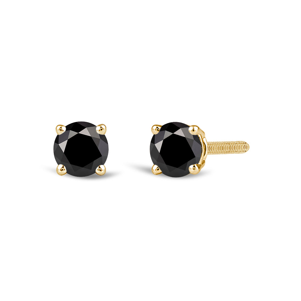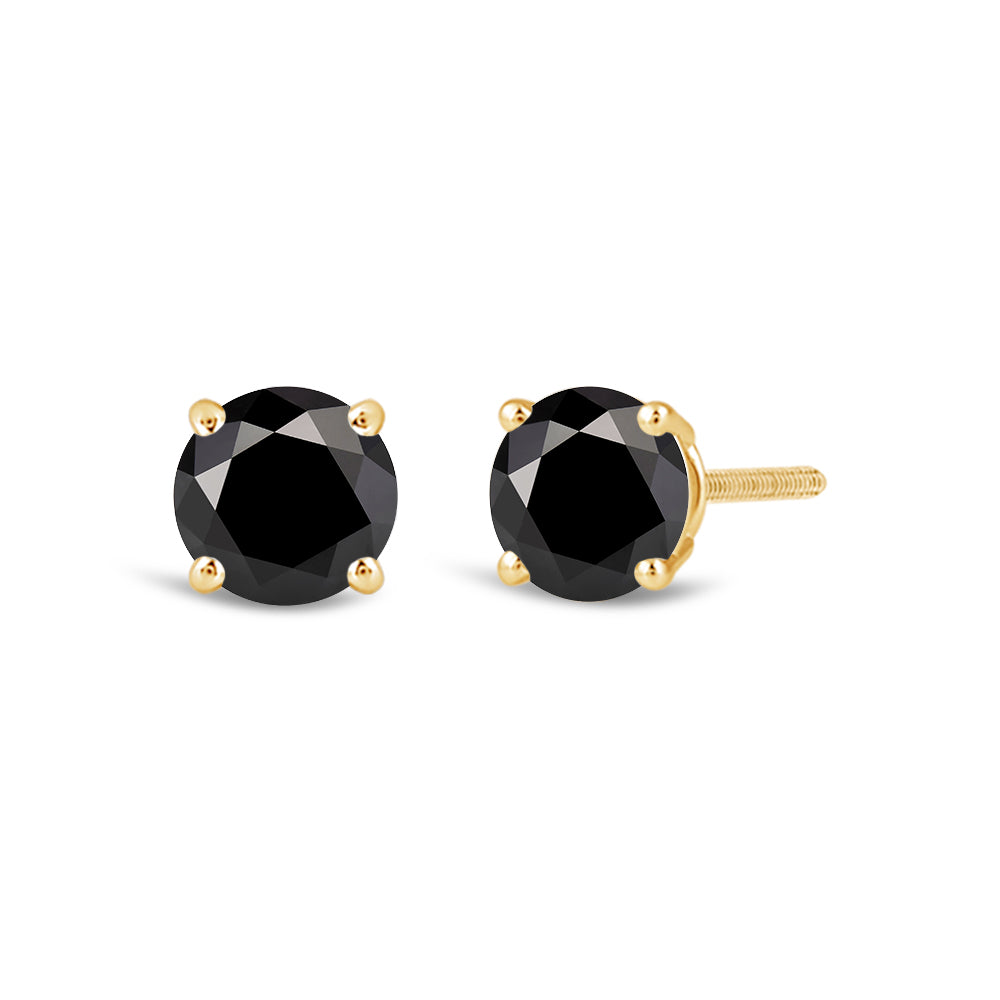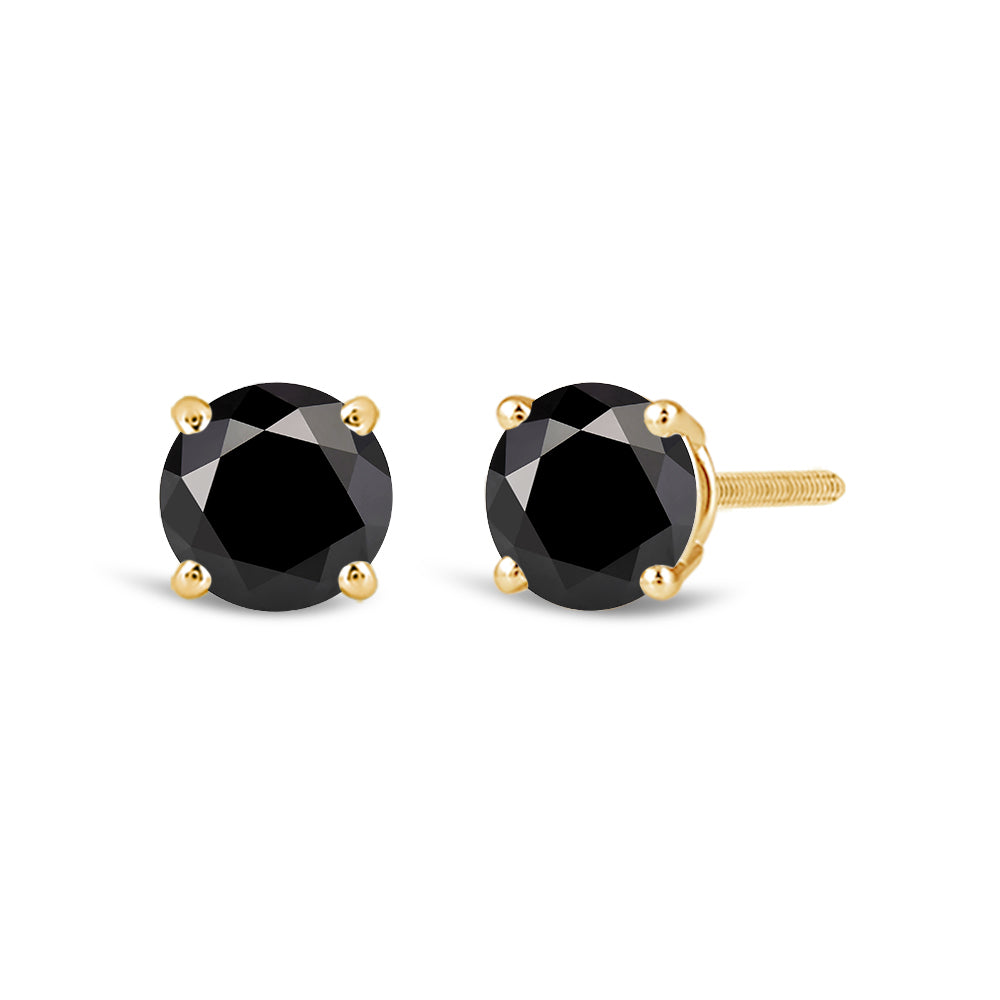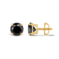 Simple and Stunning, These Round Brilliant-Cut Black Diamond Studs Glisten From Every angle. The Carefully Matched Diamonds are Set In Four-Prong Baskets Of Gold For 360 Degree Sparkle.