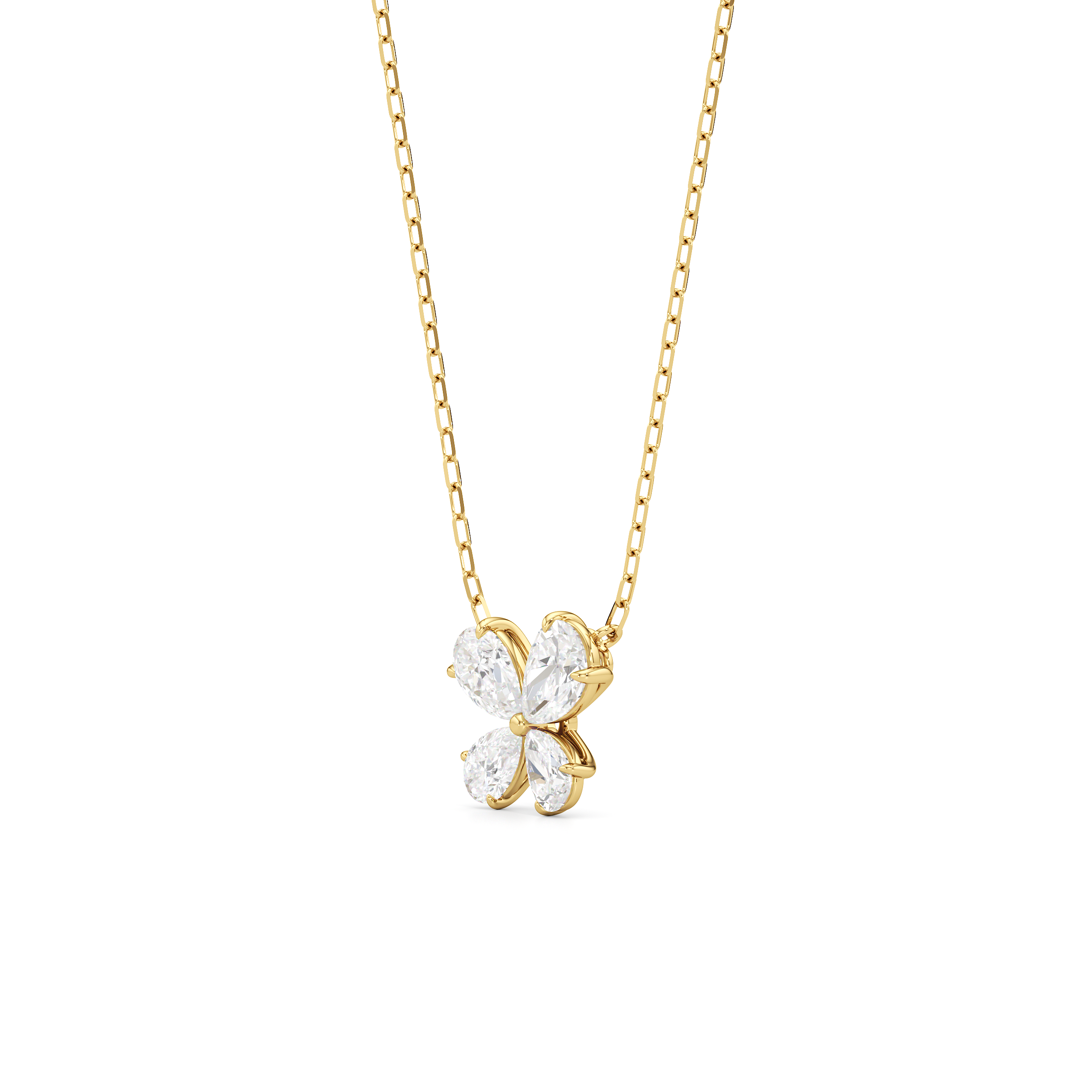The Clover Pendant is a timeless symbol of elegance and fortune, inspired by the delicate symmetry of a four-petal clover. Each petal is adorned with brilliant diamonds, radiating light and harmony, while the open design adds an airy, modern touch. Suspended from a fine cable chain, this refined pendant floats effortlessly, creating a look of understated sophistication. A perfect balance of nature’s beauty and exquisite craftsmanship, the Clover Pendant is a luminous everyday piece designed to bring luck and brilliance to every moment.