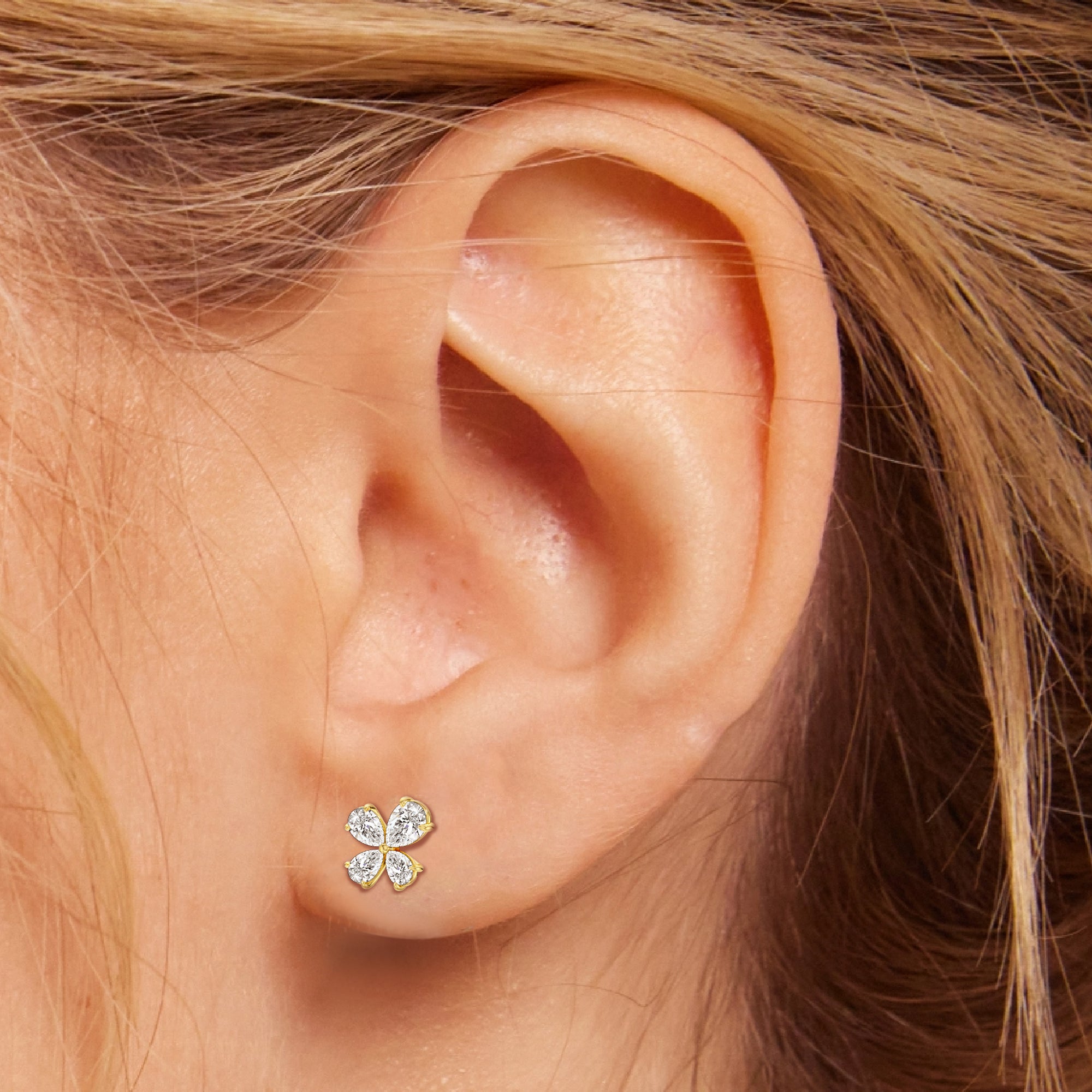The Clover Bloom Studs are a radiant expression of luck and elegance, inspired by the timeless beauty of a four-petal clover. Each petal is delicately outlined with shimmering diamonds, creating a harmonious balance of brilliance and grace. Designed with a classic push-post closure for effortless wear, these studs offer a refined yet modern take on a nature-inspired motif. Perfect for everyday sophistication or special occasions, the Clover Bloom Studs are a timeless symbol of beauty, fortune, and effortless charm.