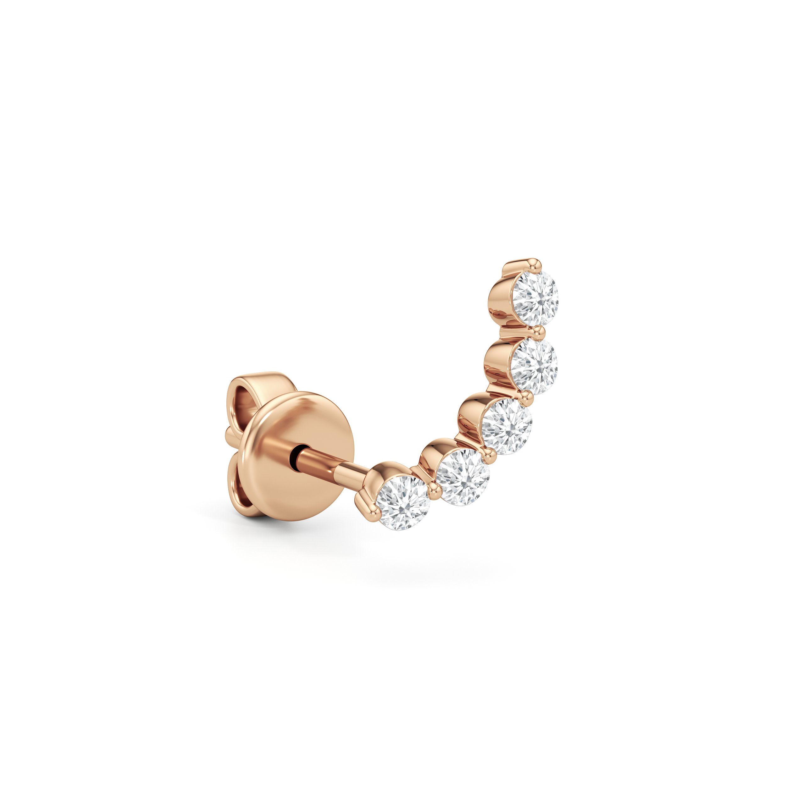 Diamond climber earrings of effortless elegance. Their graceful design never appears rushed but rather cascades naturally along the earlobe. The diamonds present a seamless ascent of brilliance, creating a stacked effect without the need for extra piercings
