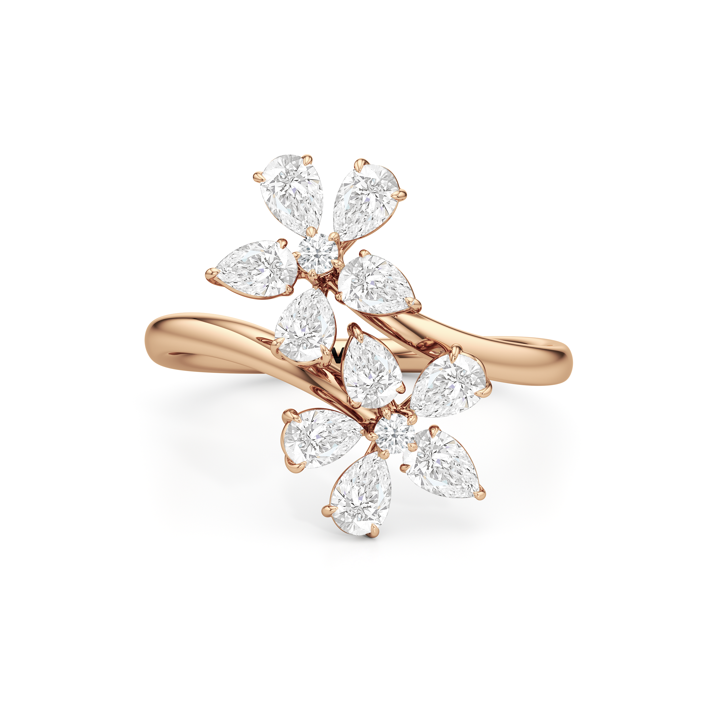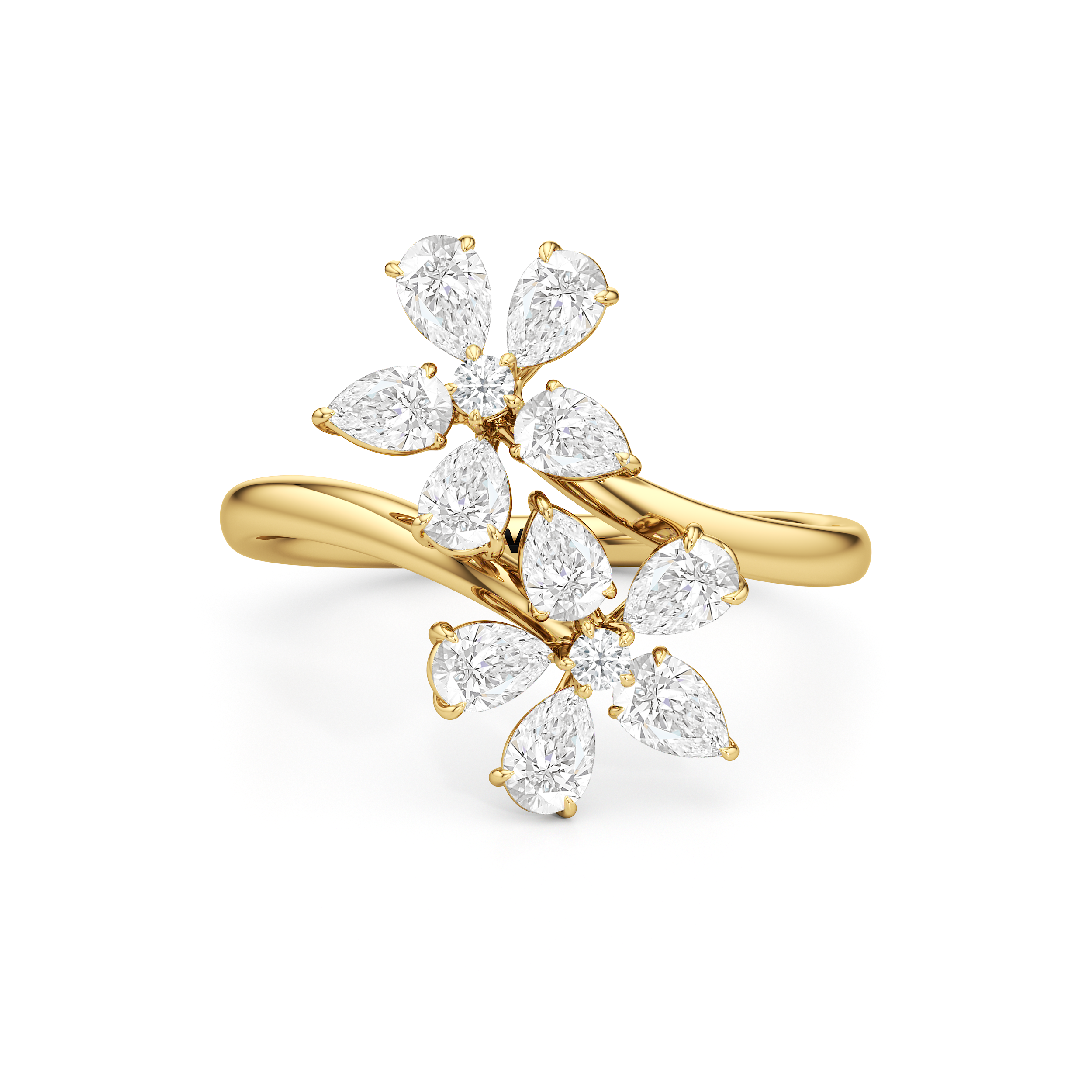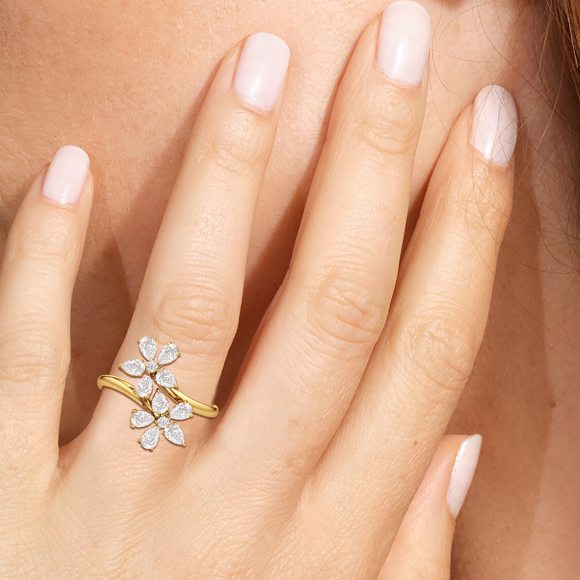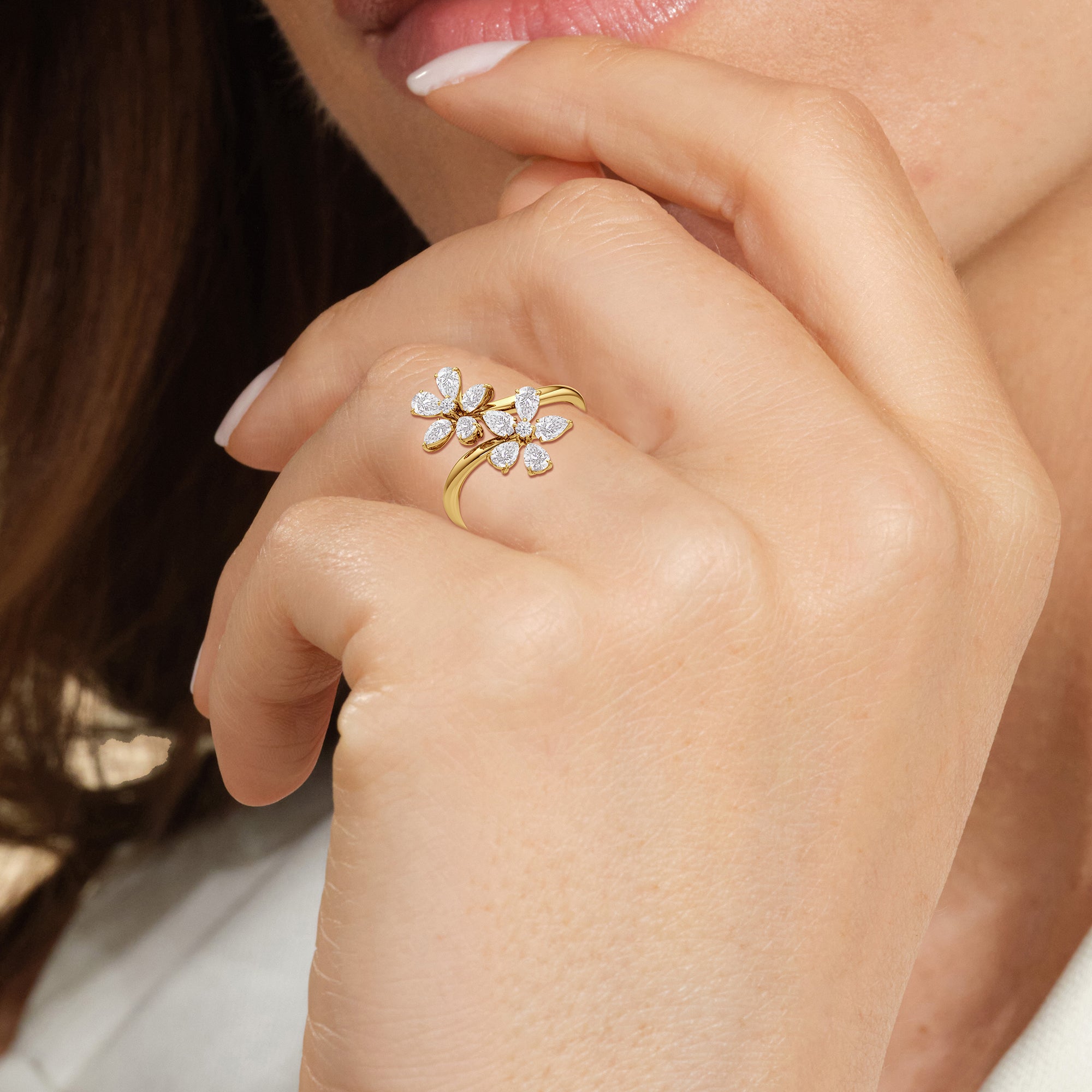Inspired by the delicate charm of daisies, the Daisy Duet Diamond Bypass Ring is a breathtaking fusion of nature and luxury. This exquisite design showcases two radiant five-petal diamond flowers, gracefully crossing each other in a unique bypass setting that symbolizes harmony and movement.