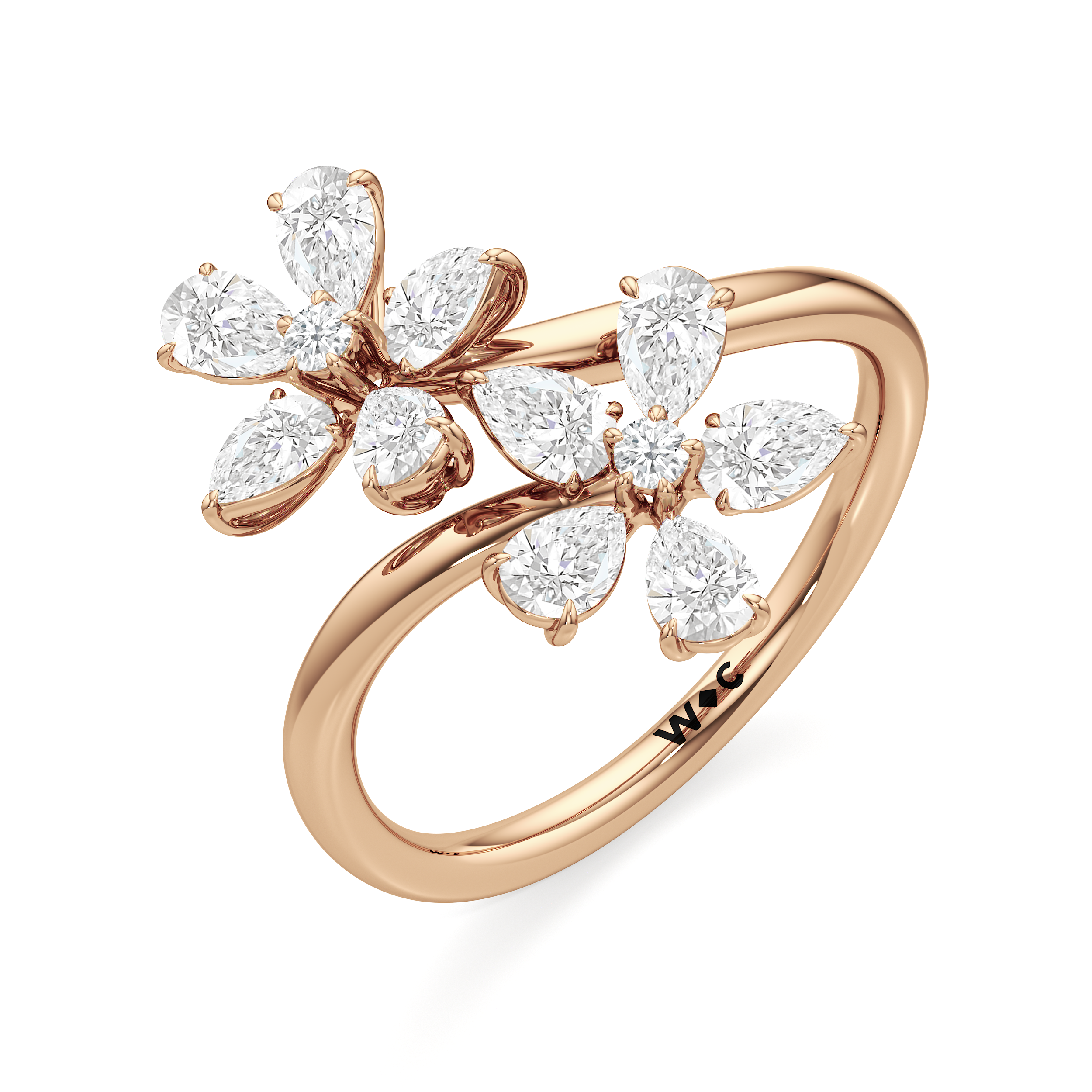Each petal is adorned with shimmering diamonds, exuding an ethereal sparkle, while the gracefully curved band enhances the ring’s fluidity and elegance. Crafted in precious metal of your choice, the bypass design creates a contemporary yet timeless silhouette, making this ring a perfect statement of grace and sophistication.