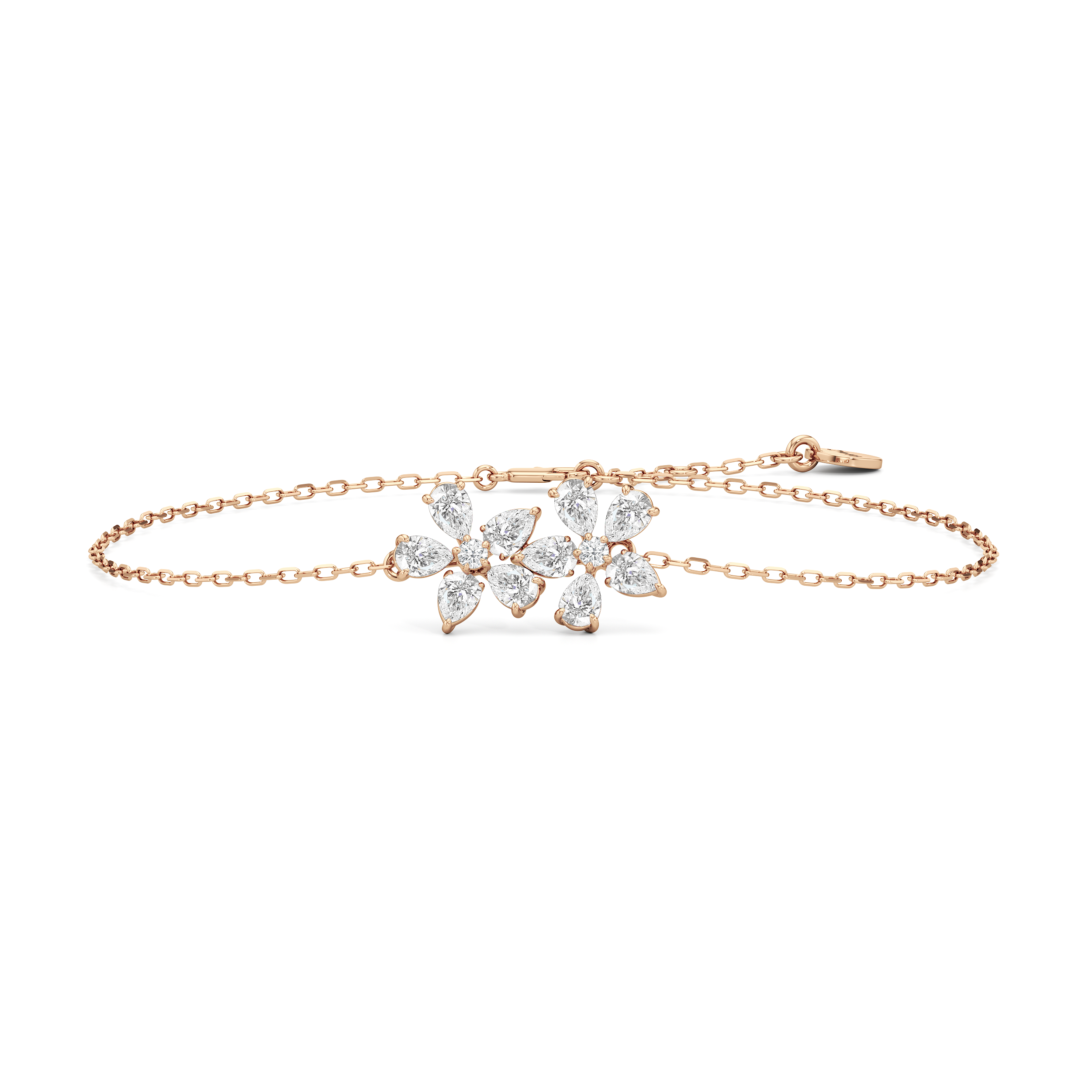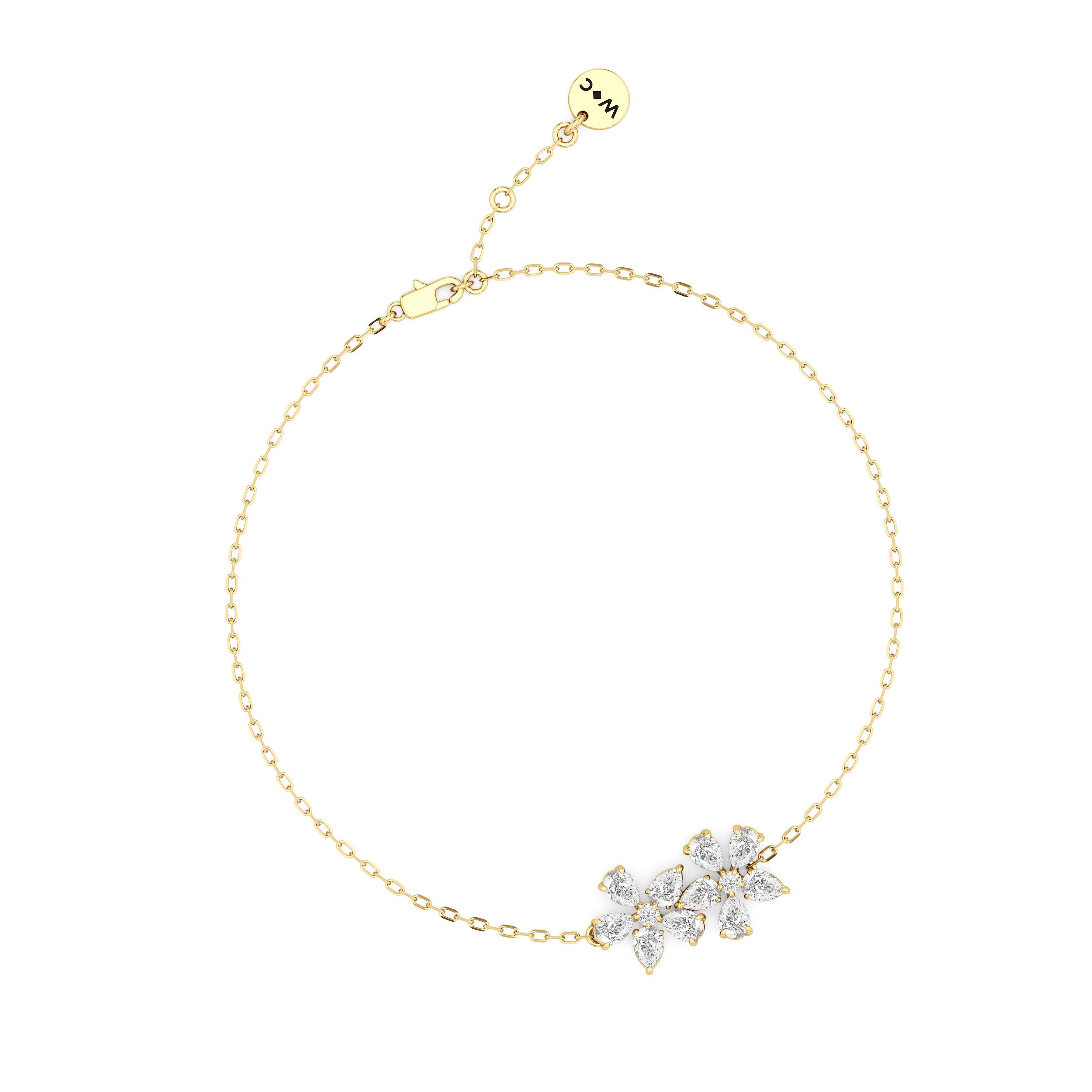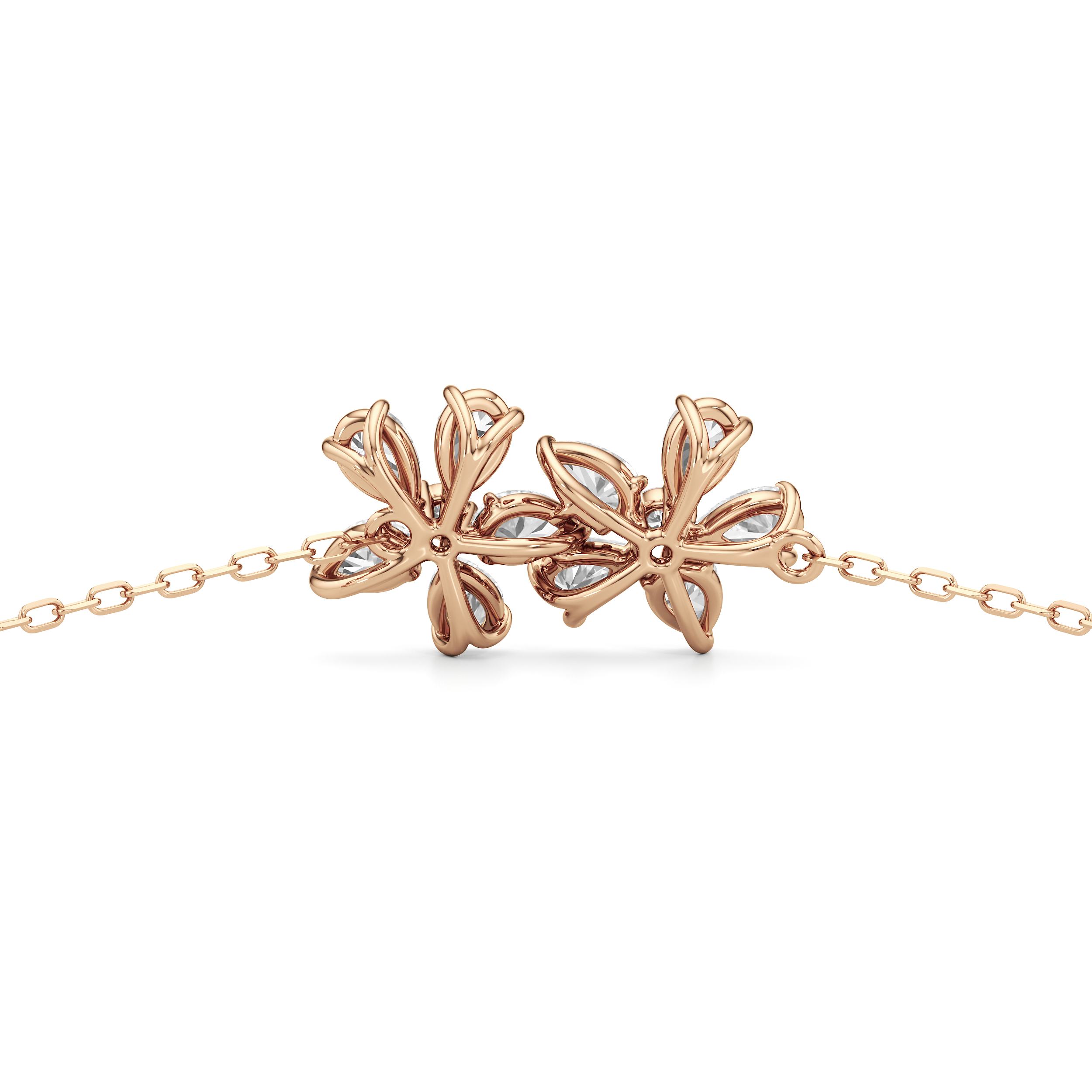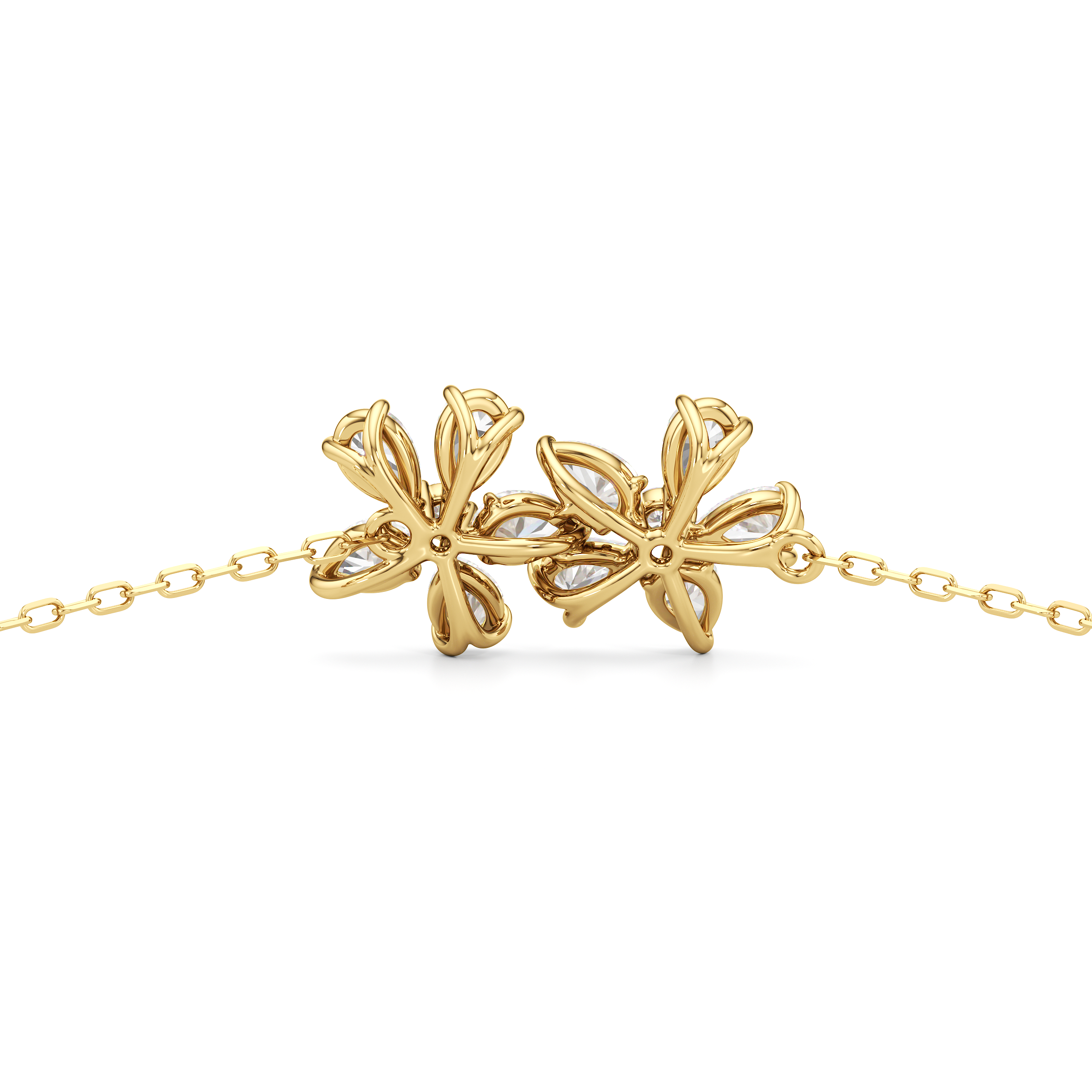 The Daisy Duet Bracelet is a radiant celebration of nature’s beauty, featuring two delicately crafted daisy blossoms that symbolize joy, new beginnings, and harmony. Each flower is adorned with shimmering diamonds, creating a luminous contrast against the fine chain that connects them.