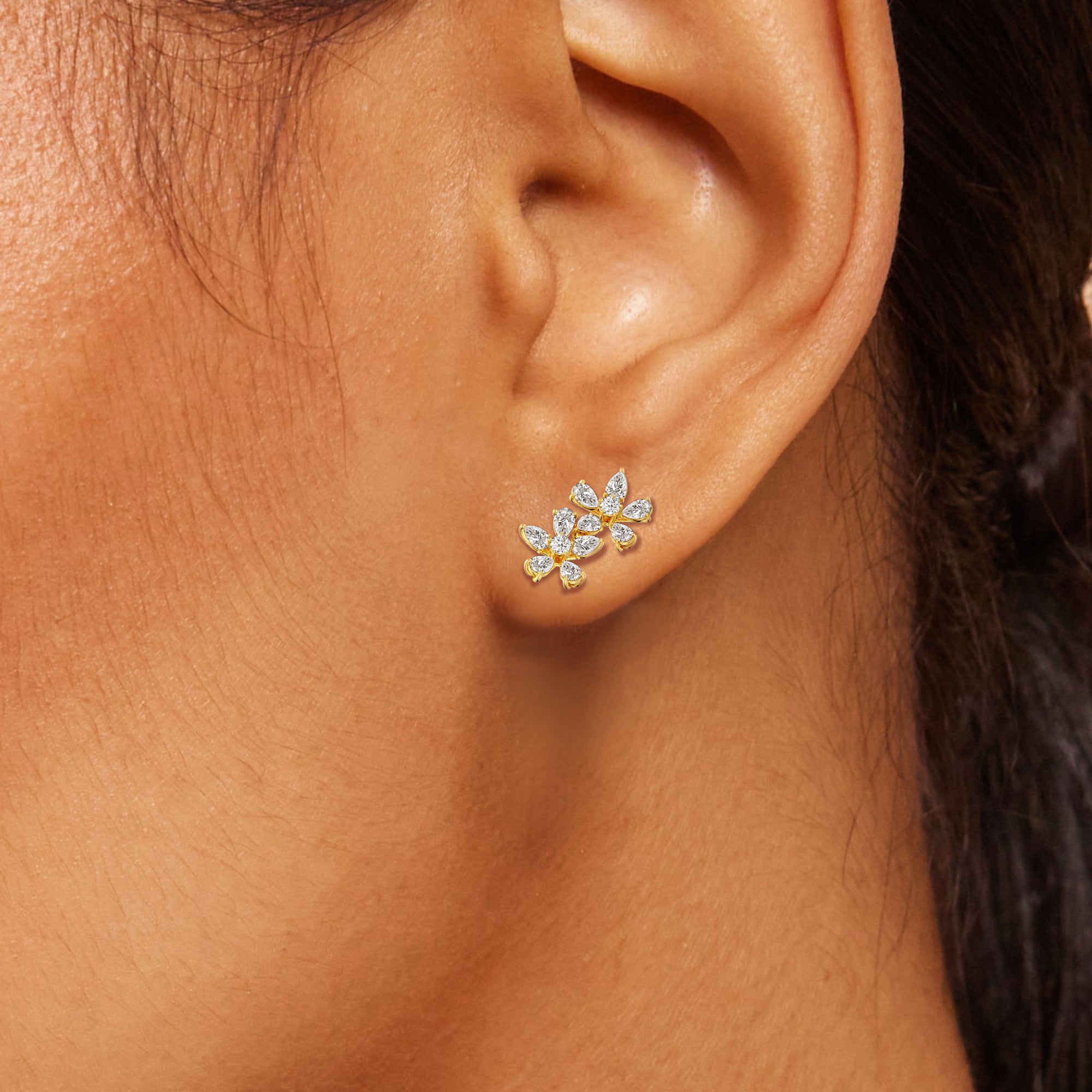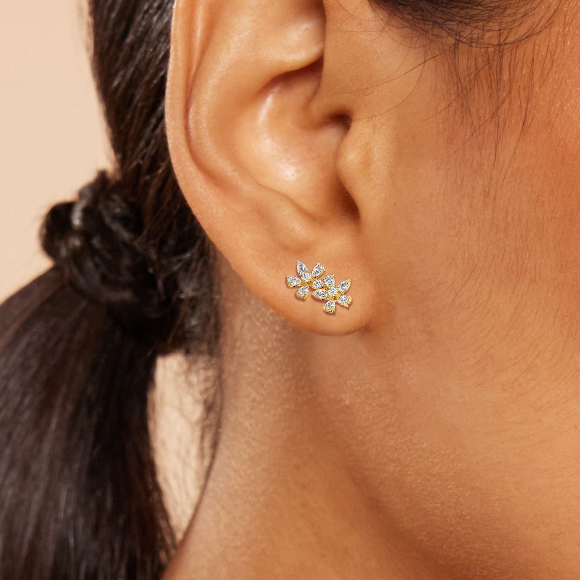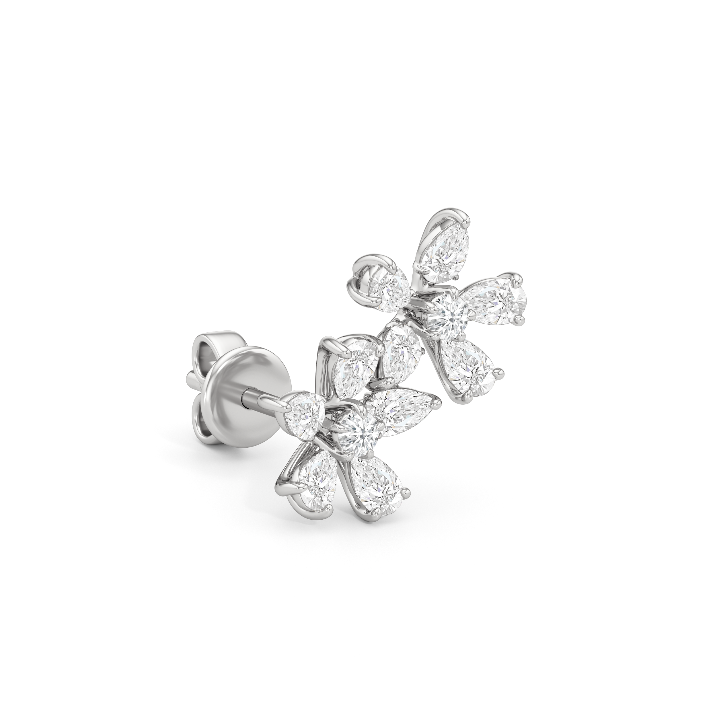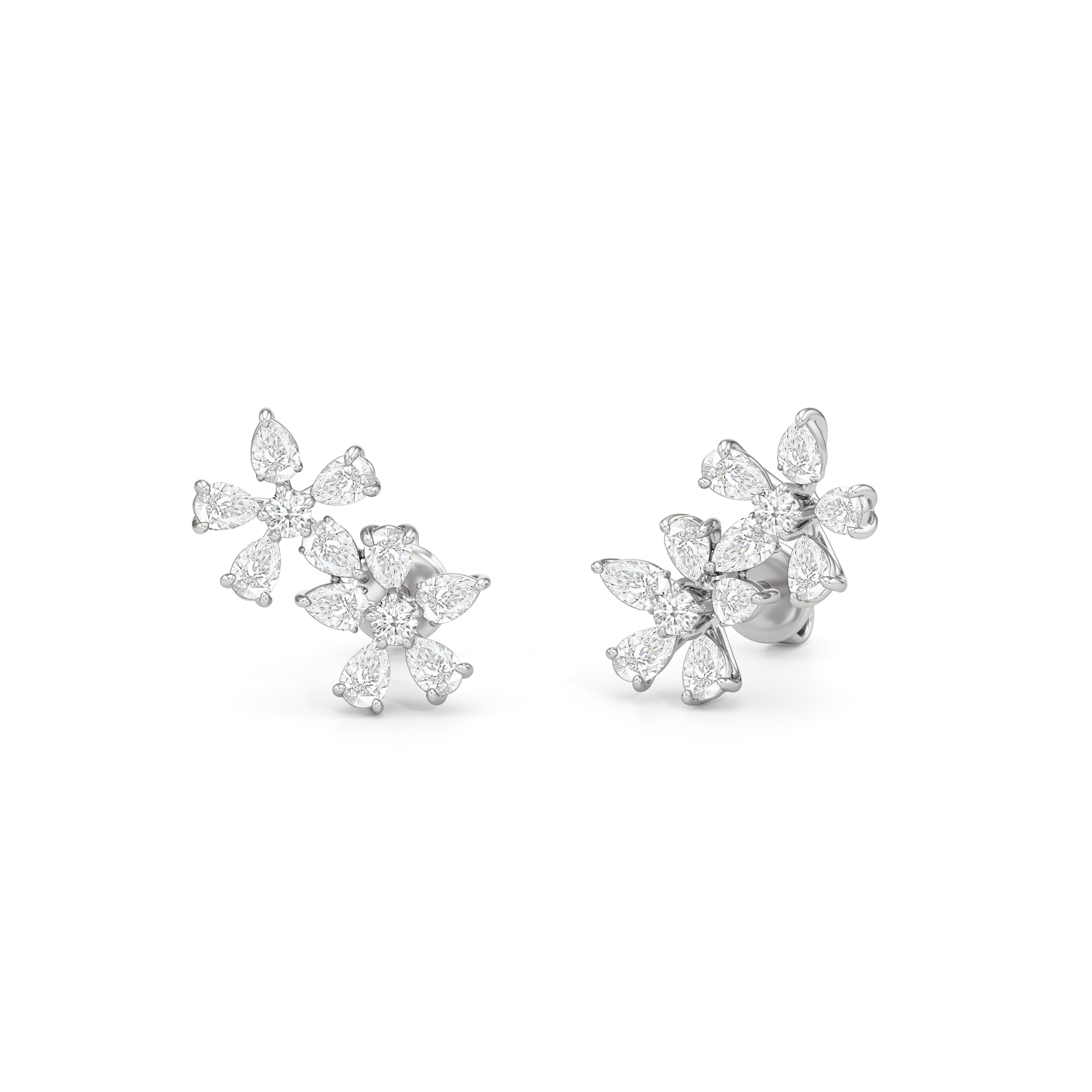 Delicate yet dazzling, the Daisy Duet Diamond Studs bring the beauty of nature to life with a luxurious touch. Inspired by the graceful charm of daisies, these exquisite earrings feature two five-petal diamond flowers, elegantly intertwined in a captivating design. Each petal is encrusted with dazzling diamonds, creating a radiant floral cluster that catches the light from every angle. Set in precious metal of your choice, these studs offer a modern yet timeless appeal, while the secure push-post closure ensures comfort and ease for all-day wear.