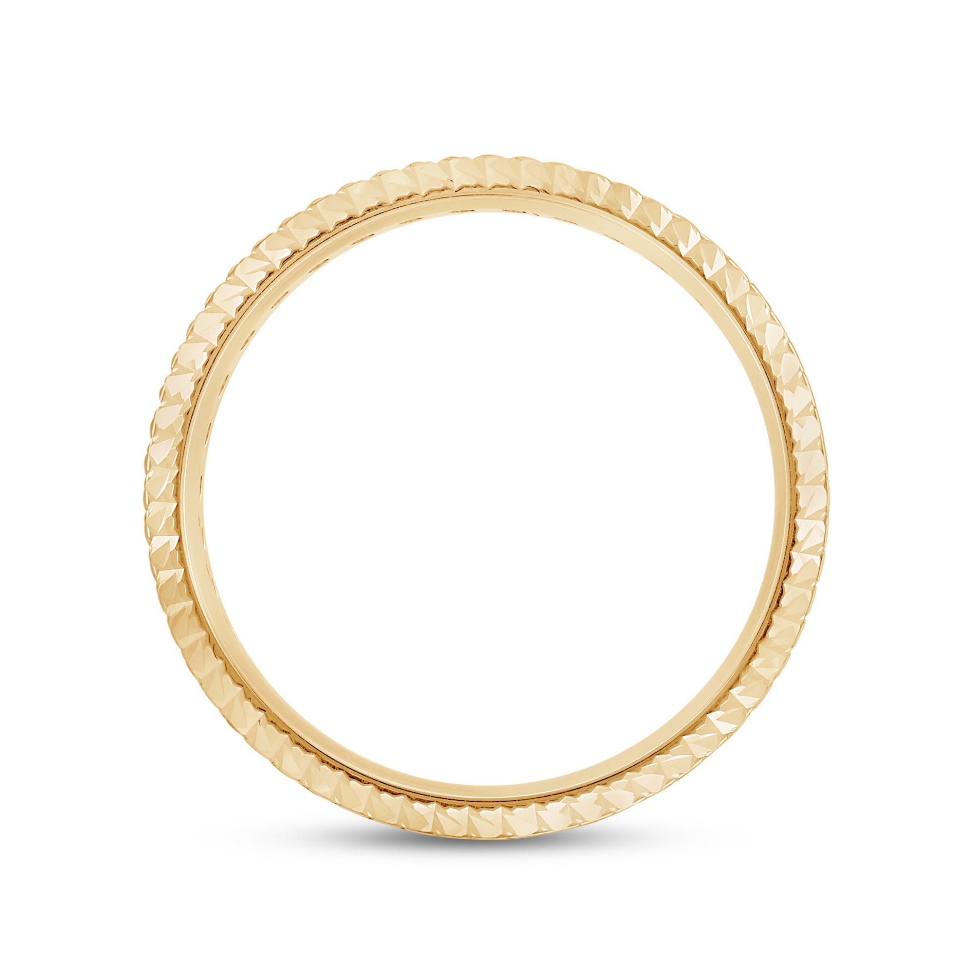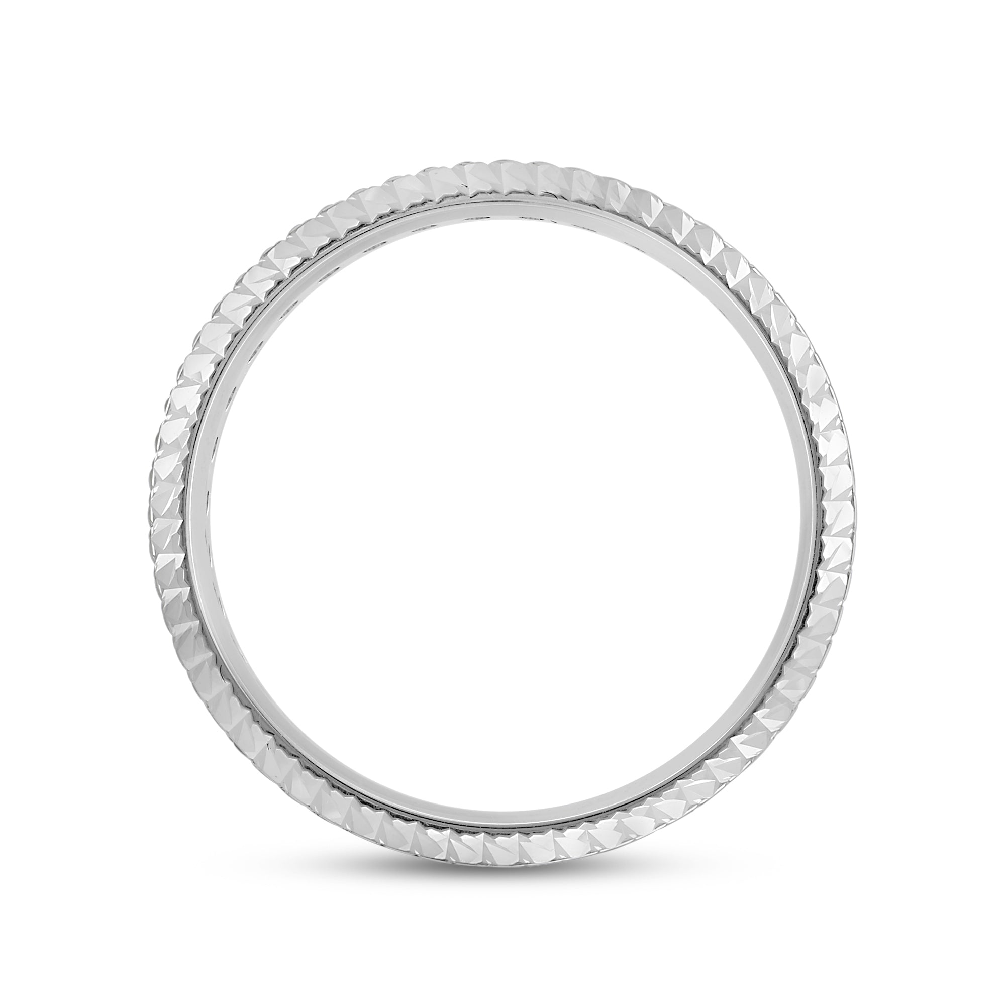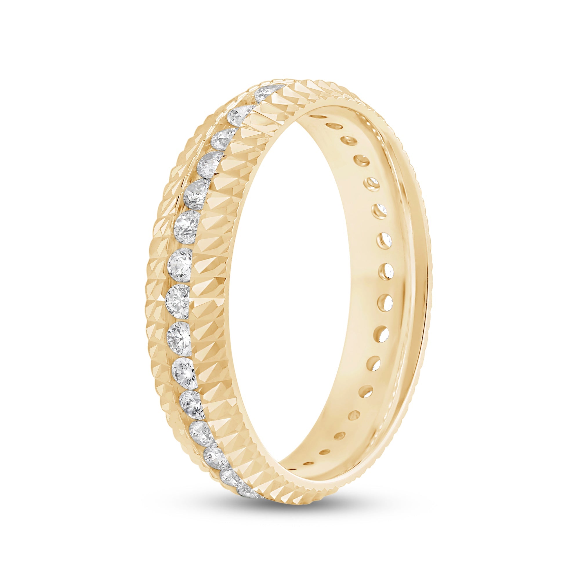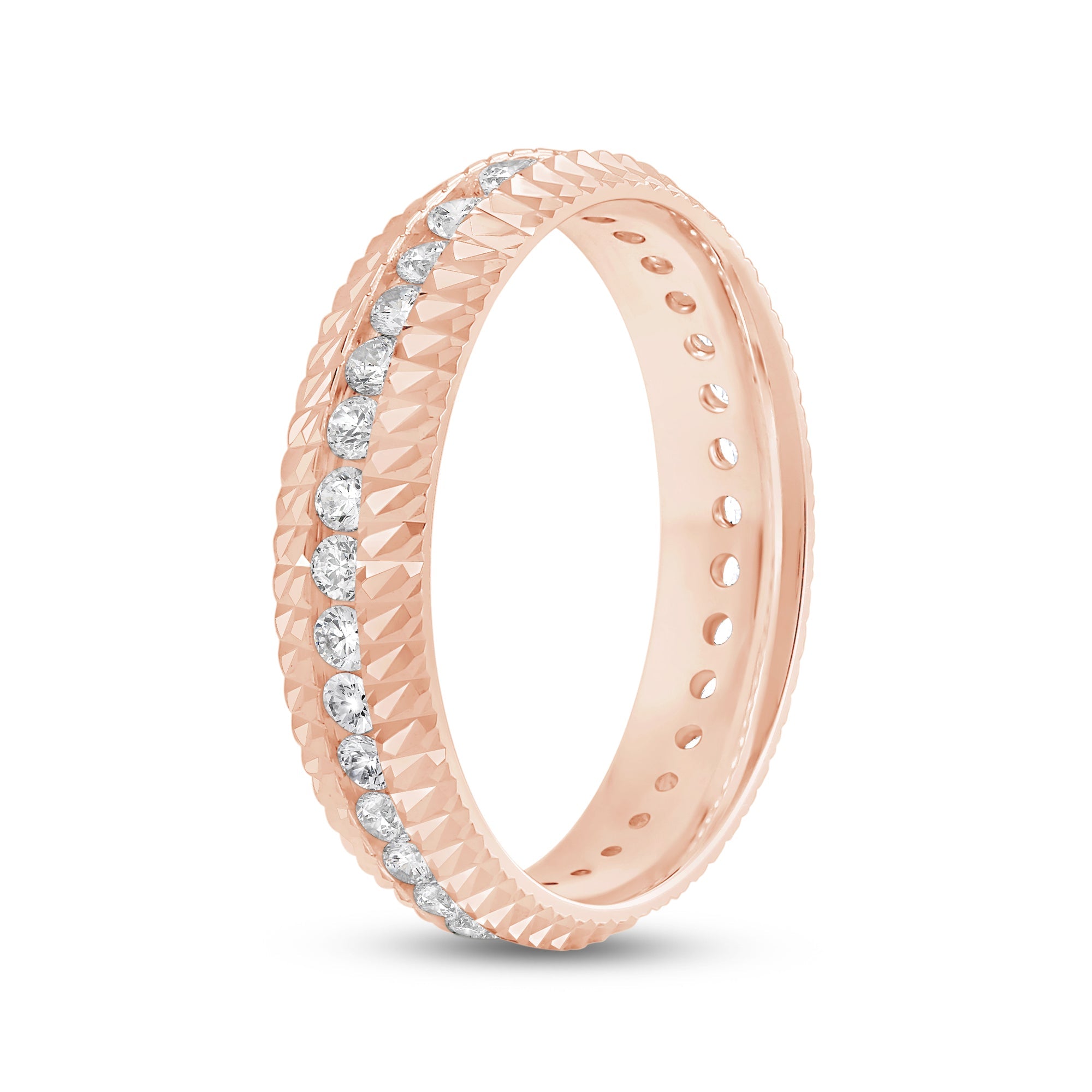 It's time to upgrade your bauble collection. You won't regret getting this band, uniquely forged with a diagonal pattern. Set in between the diagonally ridged edges of the ring is a circle of diamonds for a brilliant impression.