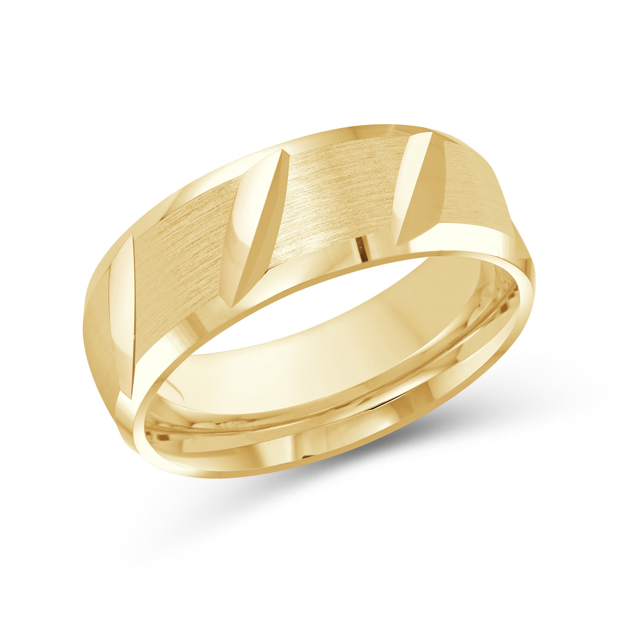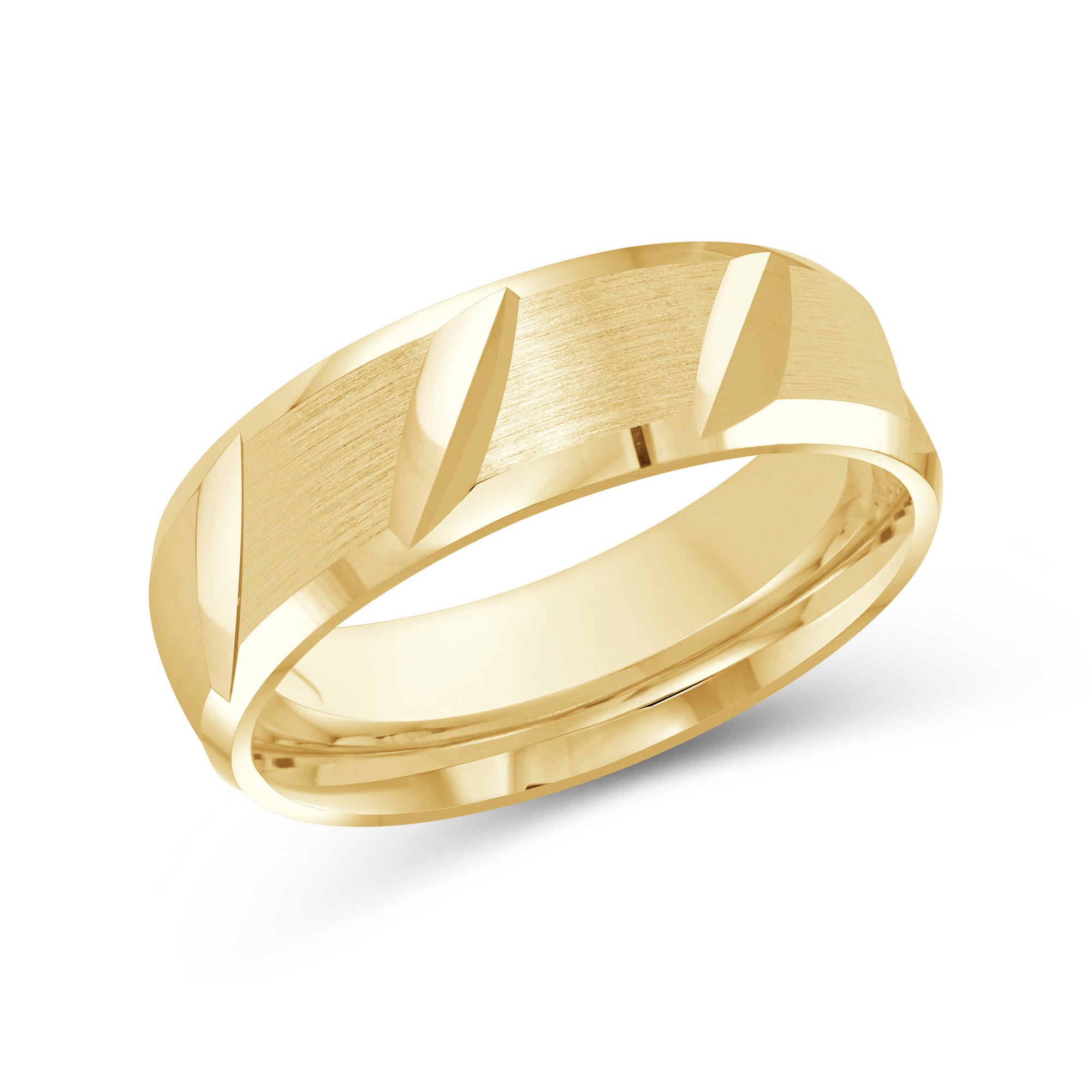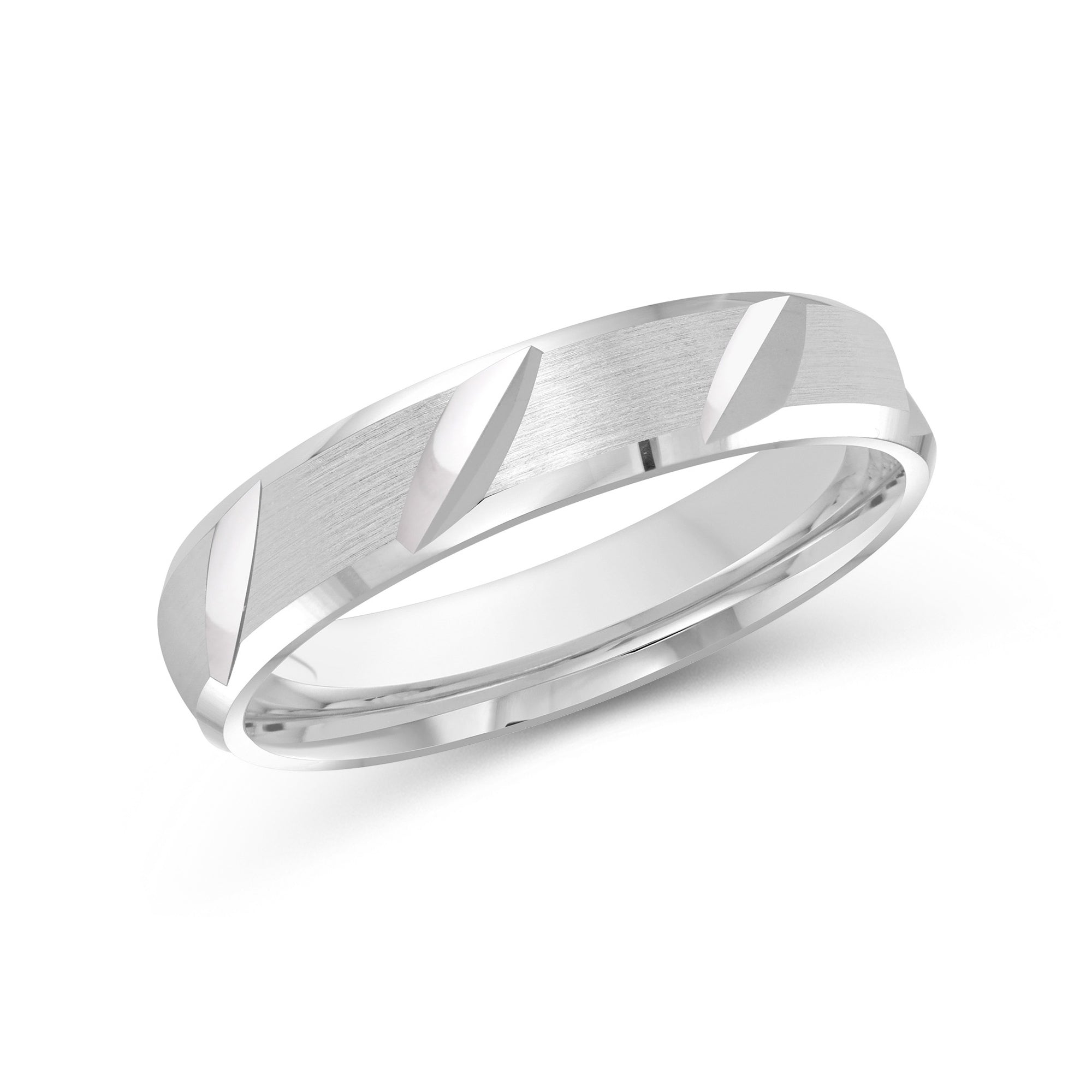 Designed with refined casualness, this men's band blurs the line between timeless and modern. The ring is shaped with rounded interior edges (comfort fit) and a satin-brushed exterior finish. Diagonal slits align the band's circumference that bring character and depth to the ring.