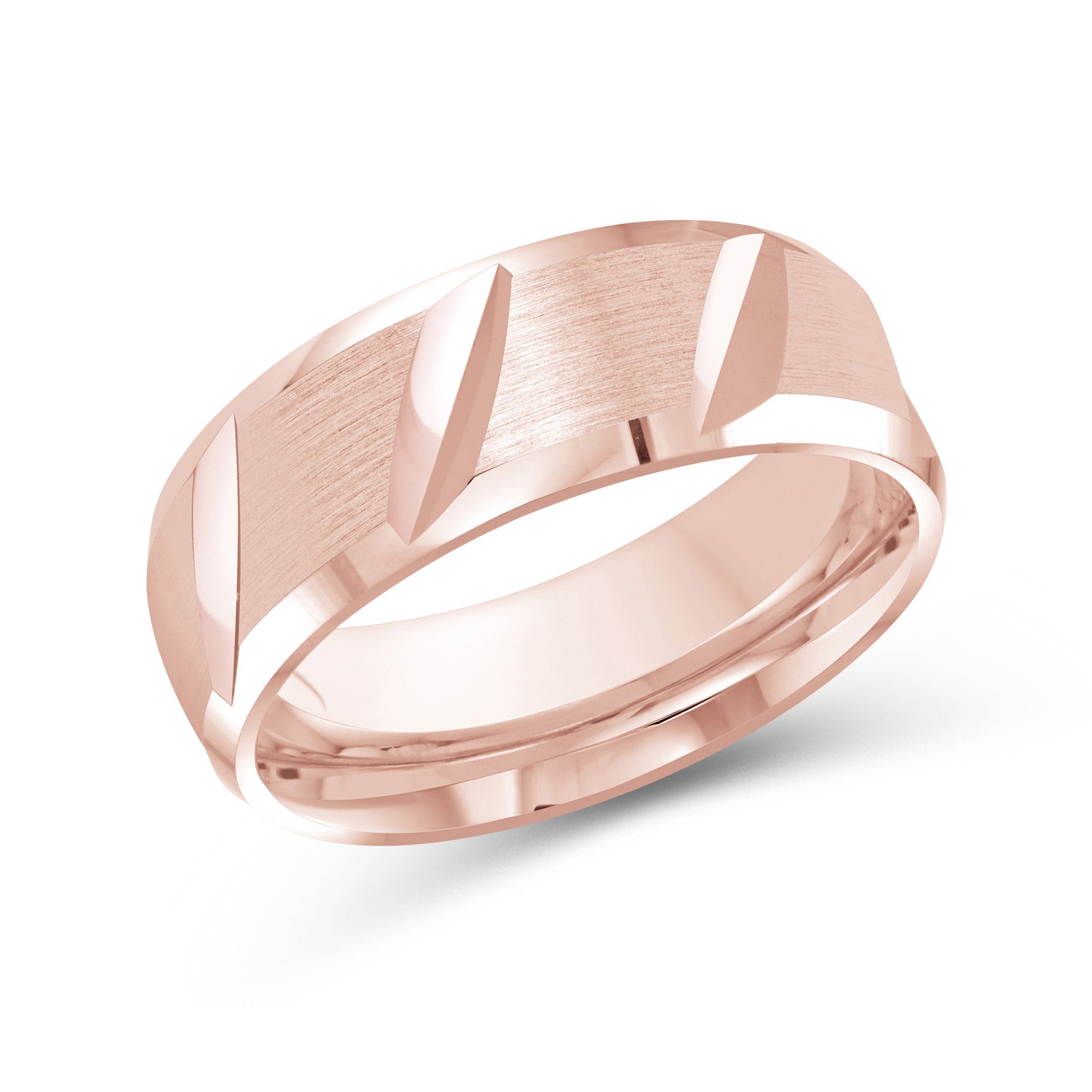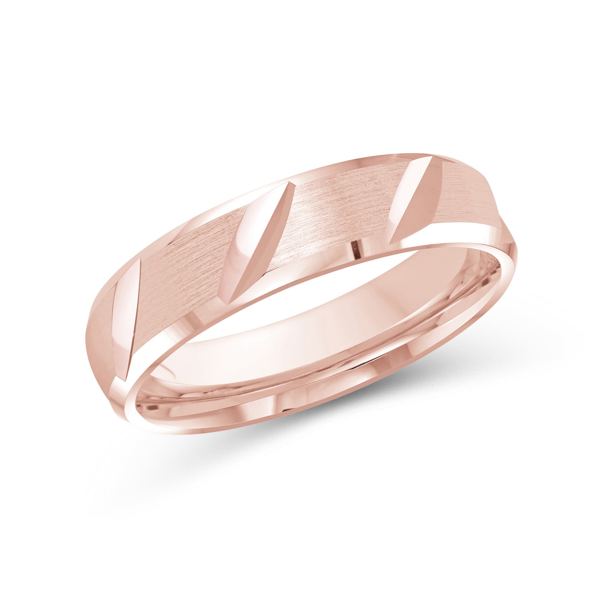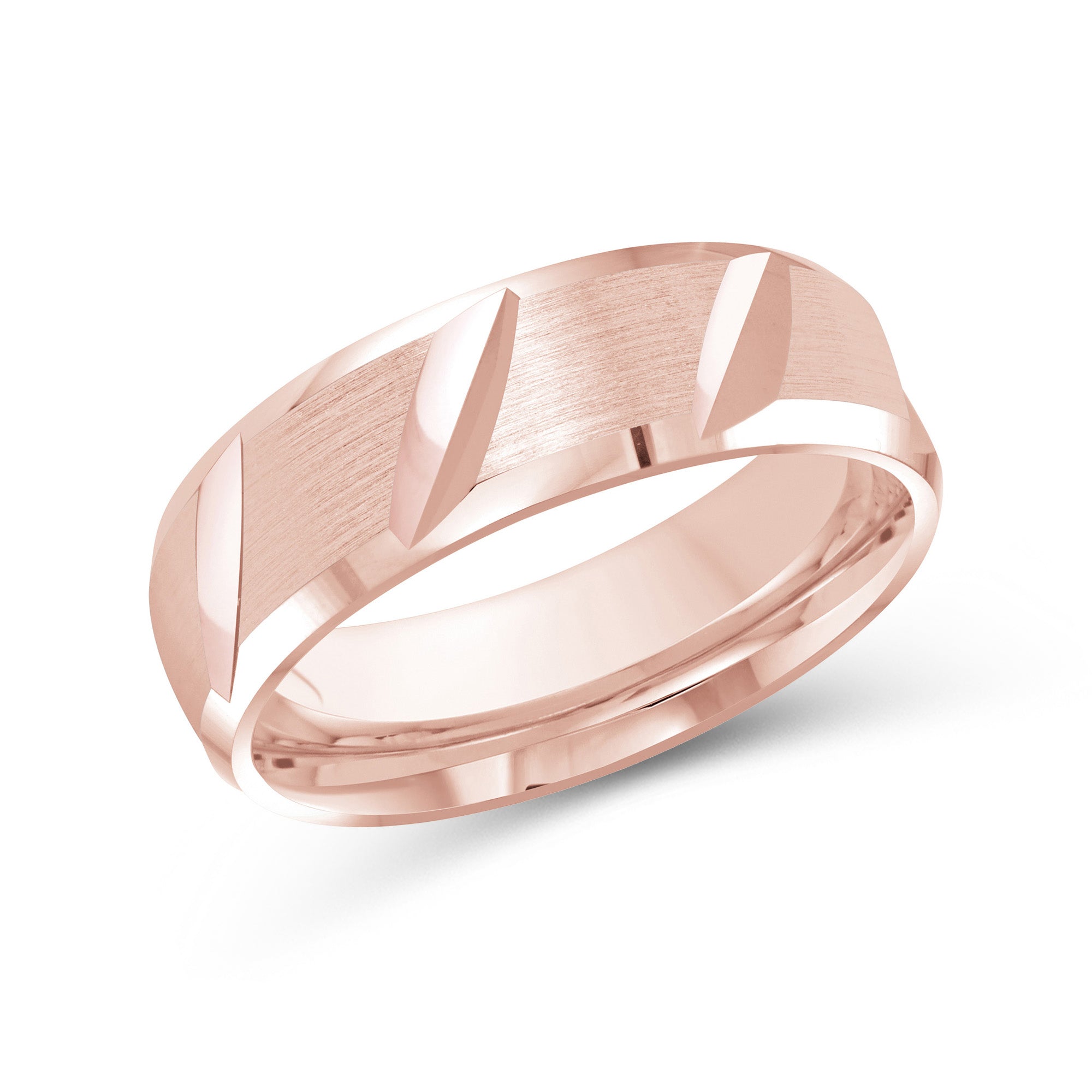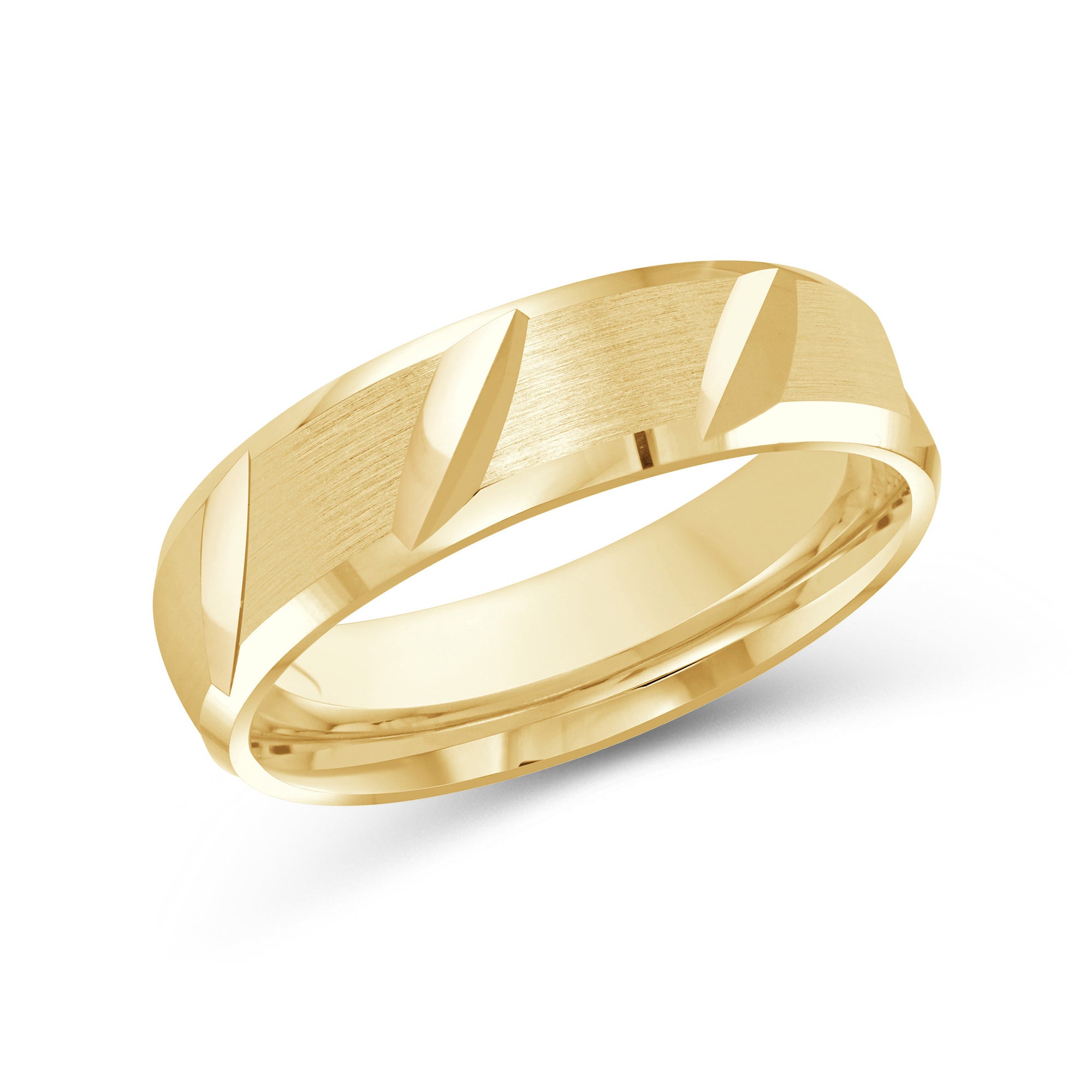 Designed with refined casualness, this men's band blurs the line between timeless and modern. The ring is shaped with rounded interior edges (comfort fit) and a satin-brushed exterior finish. Diagonal slits align the band's circumference that bring character and depth to the ring.