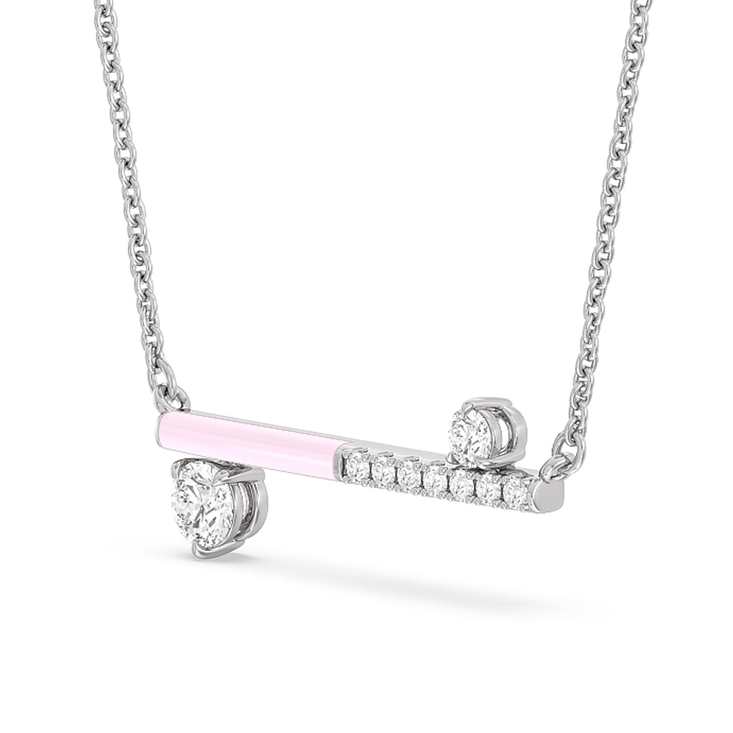 Add a classic pop of color to any occasion. The necklace features a bar pendant with two portions: one finished in ceramic and the other embellished with round diamonds. A bigger round diamond on three prongs dots the bottom of the ceramic side, while a smaller round diamond punctuates the top of the pendant's brilliant side.