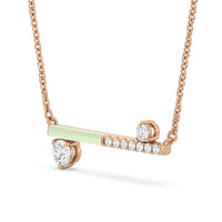 Add a classic pop of color to any occasion. The necklace features a bar pendant with two portions: one finished in ceramic and the other embellished with round diamonds. A bigger round diamond on three prongs dots the bottom of the ceramic side, while a smaller round diamond punctuates the top of the pendant's brilliant side.