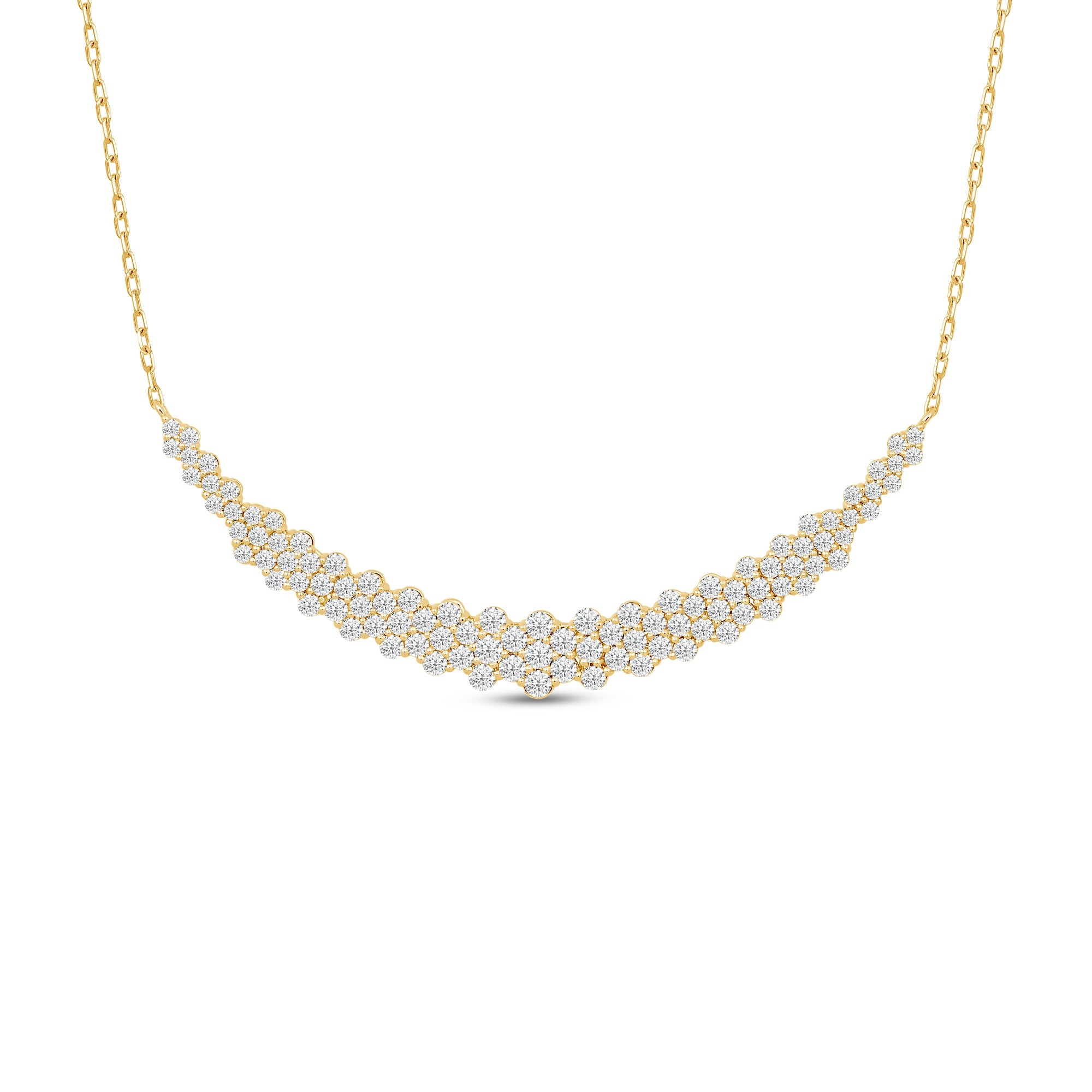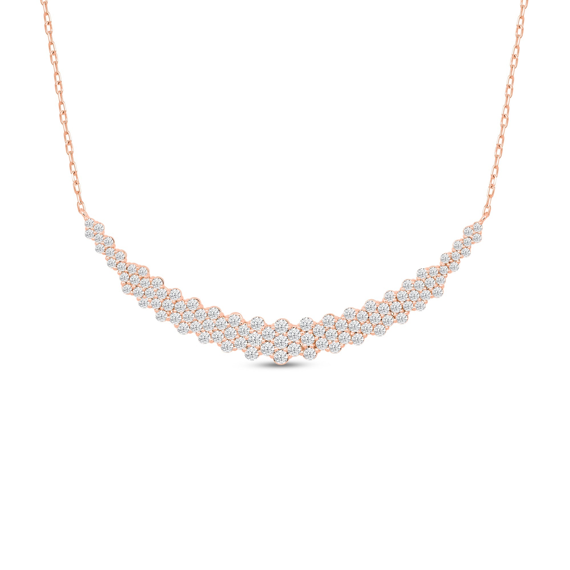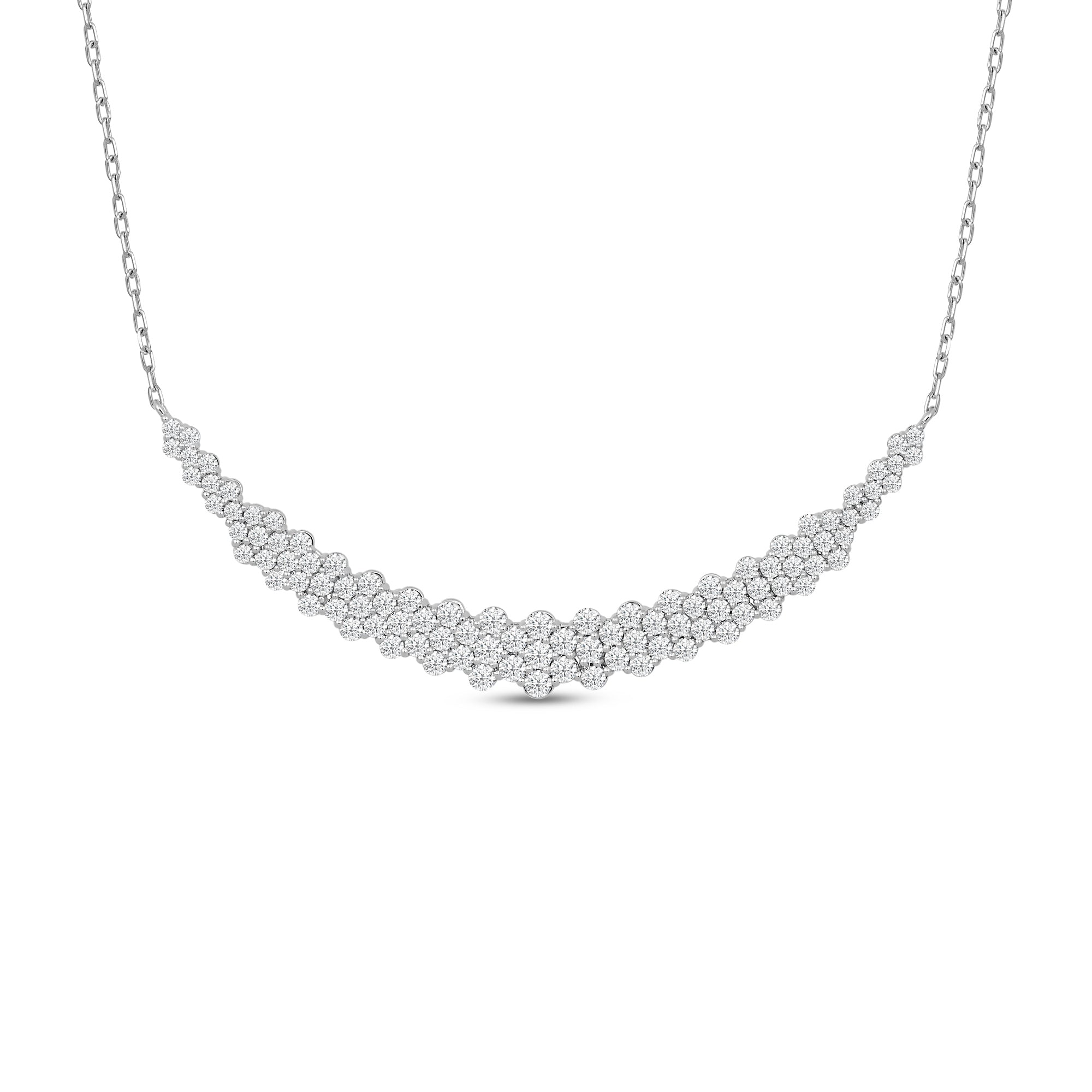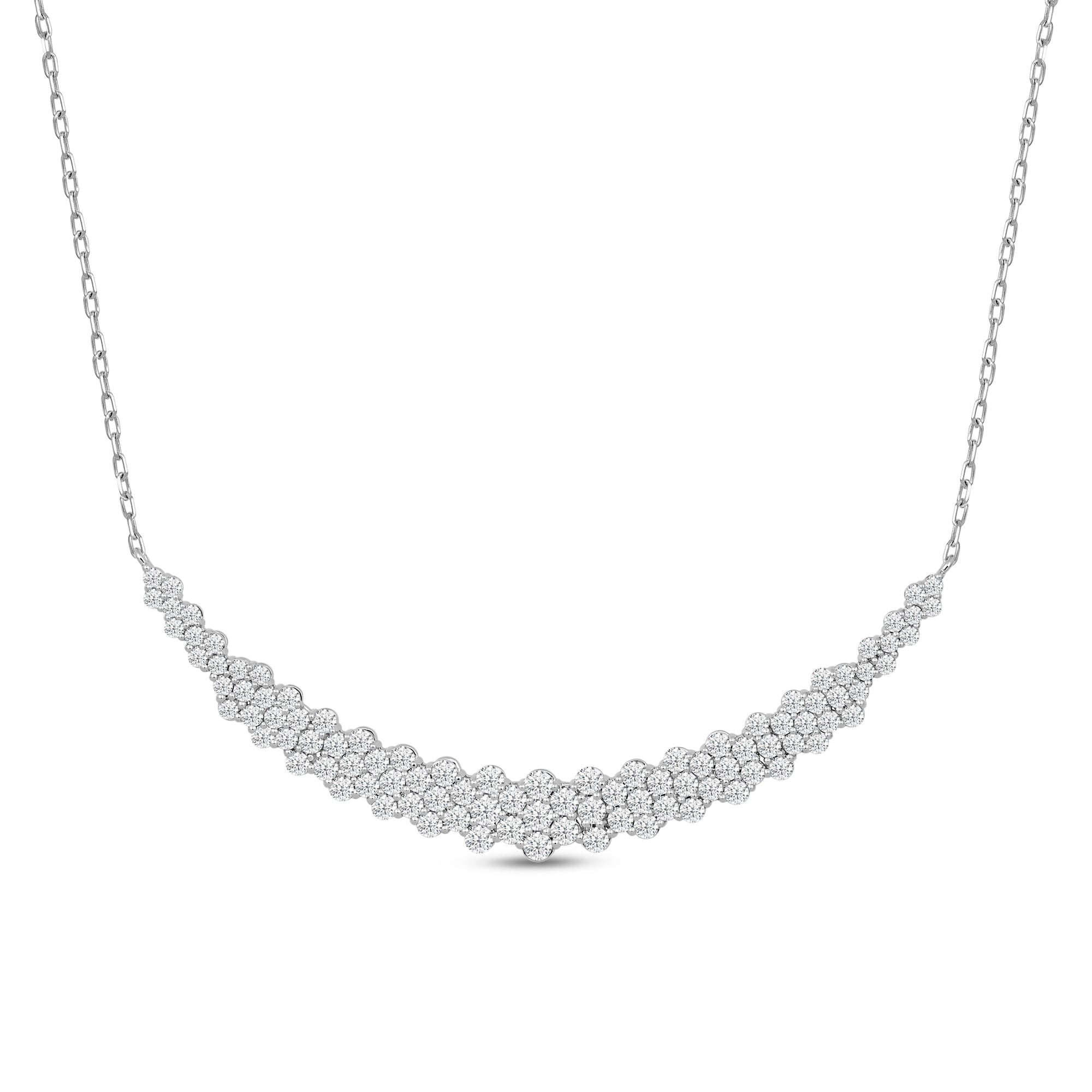 Light up your face with sparkle coming from this elegant diamond necklace. It features a graceful mat of clustered diamonds in tapering sizes. An effortlessly chic piece such as this isn't overwhelming to wear every day.
