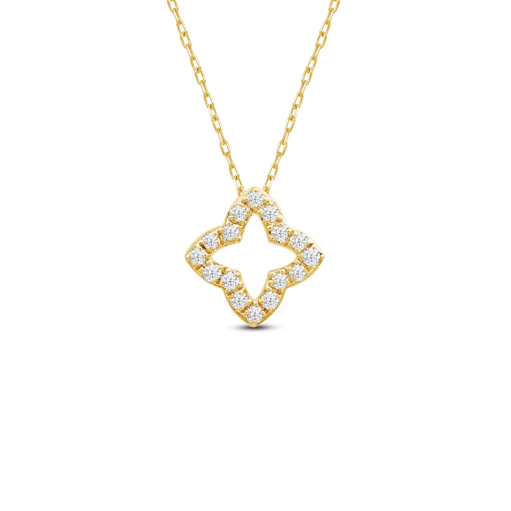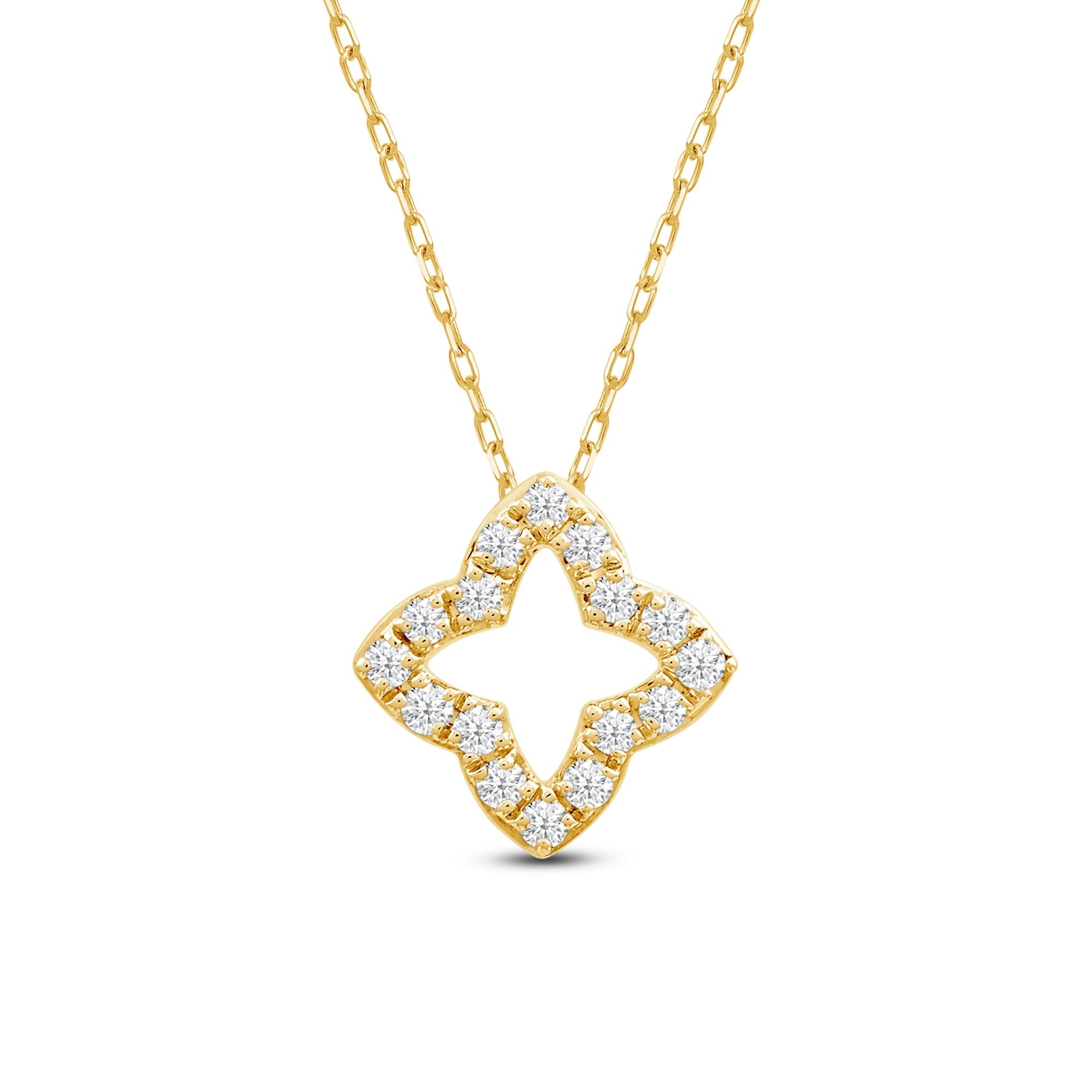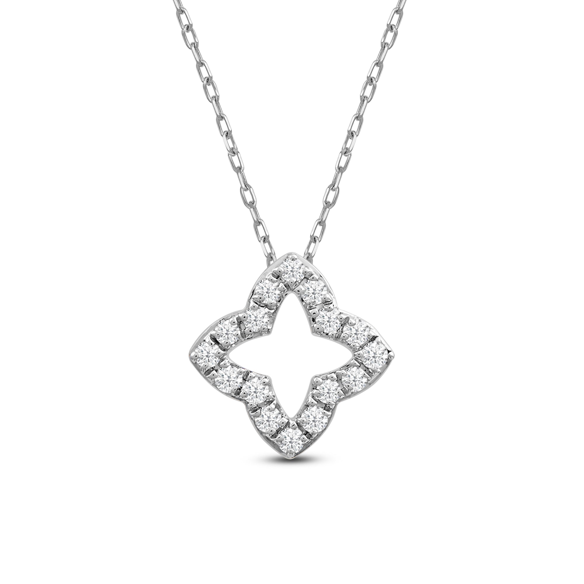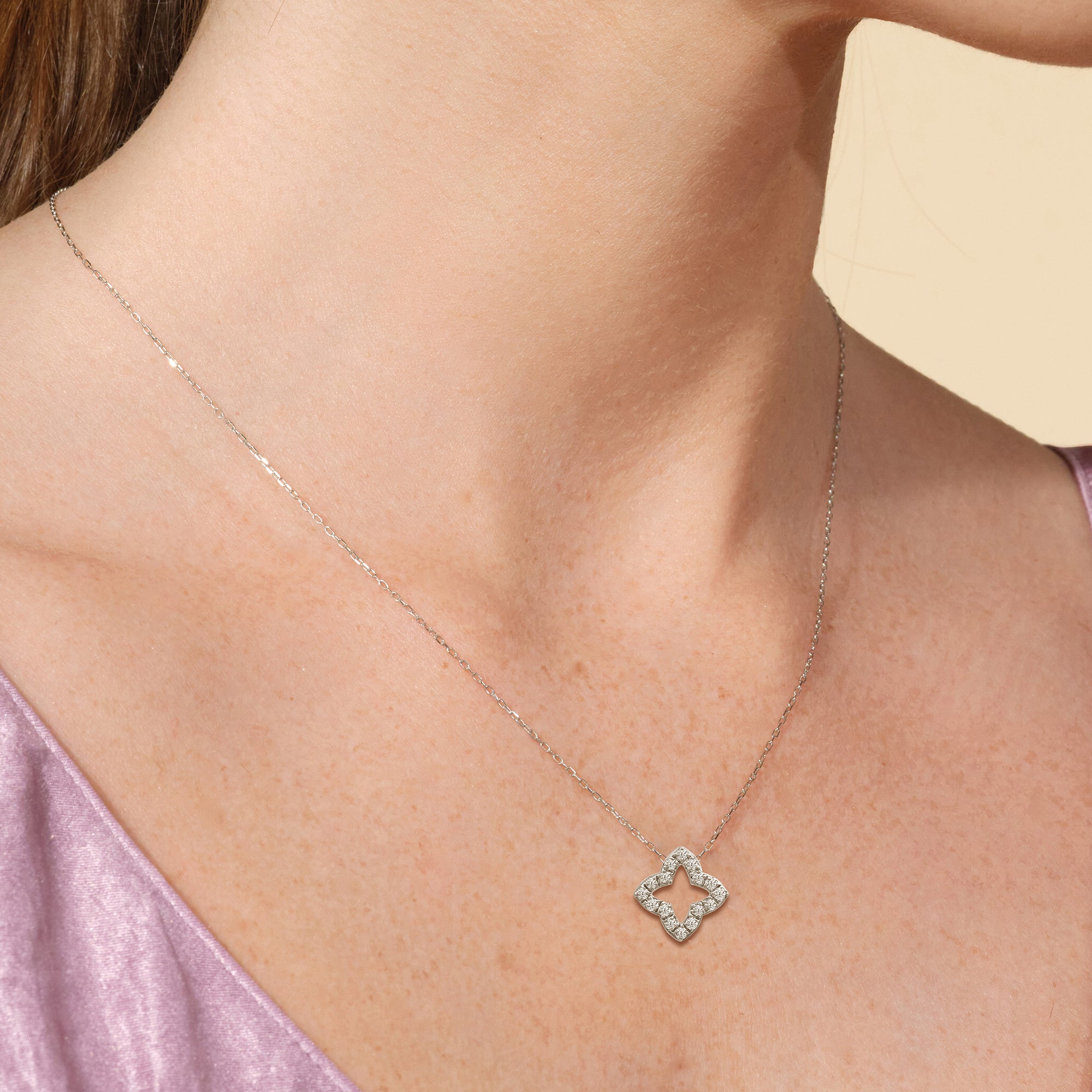 Utterly minimalistic with just a bit of edge, this geometric diamond necklace can take your accessorizing game to new heights. It features a glittering four-point star pendant traced with round diamonds. This is one of those accessories that can be worn from day to night effortlessly.