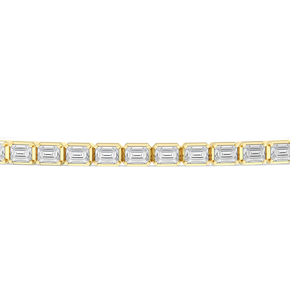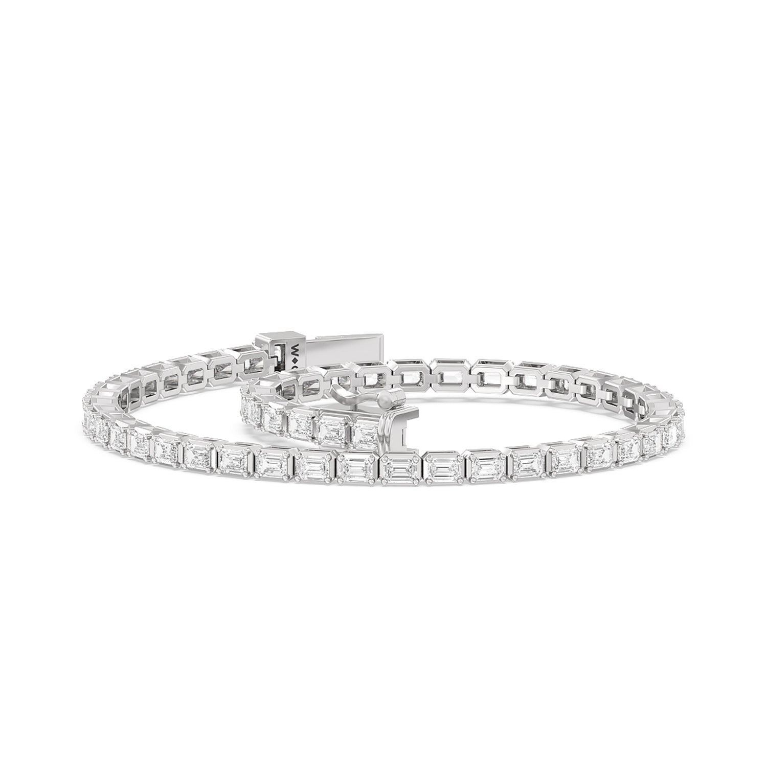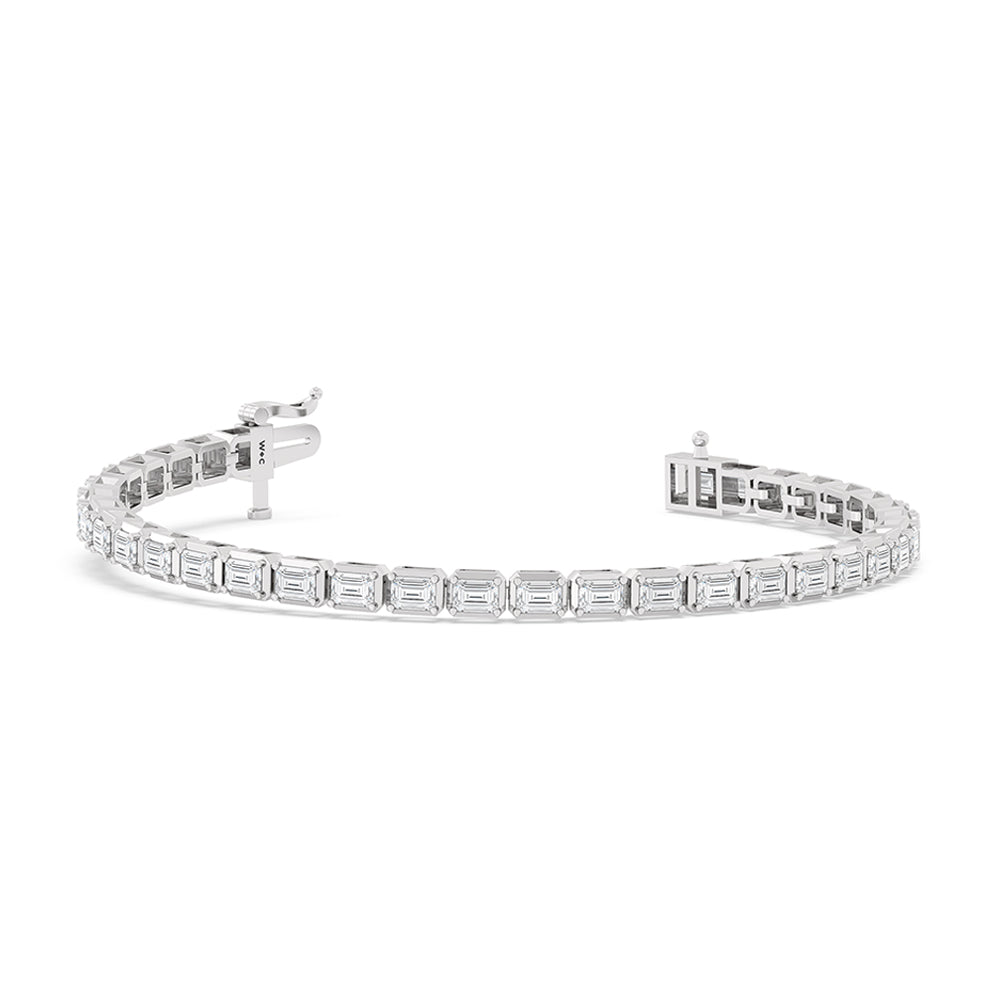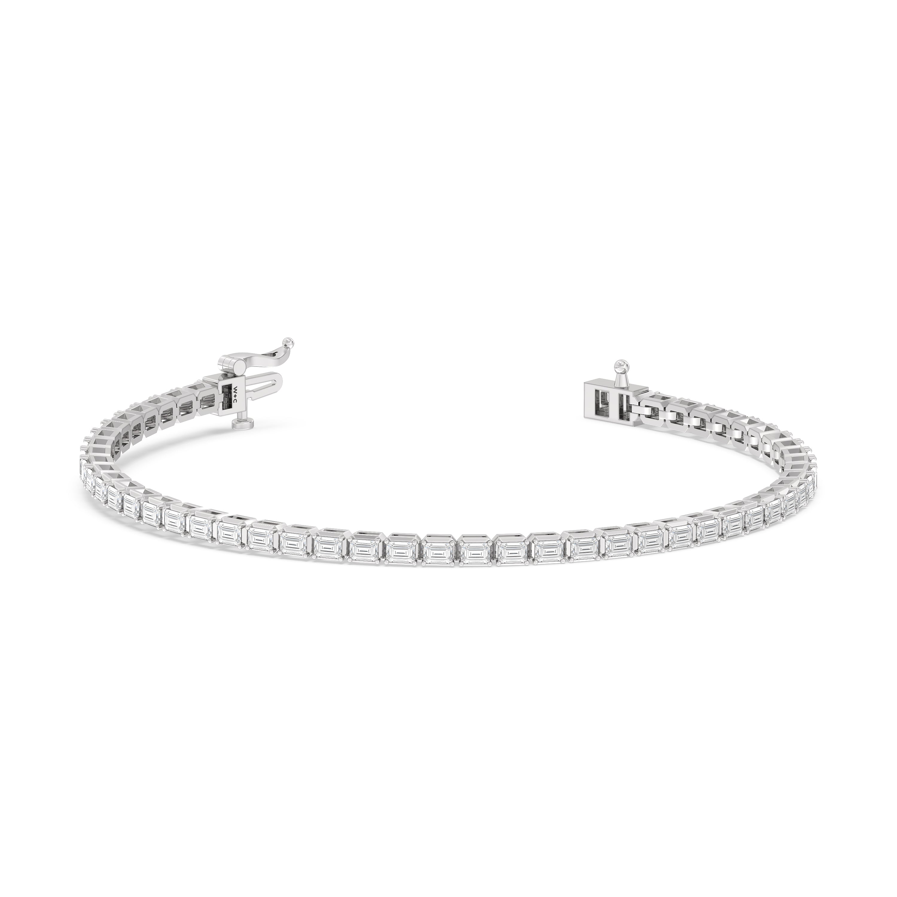 Versatile and chic to be layered or worn on its own. This design features emerald-cut diamonds mounted horizontally on secure pronged baskets. Elegant and extremely wearable, this bracelet complements any style.