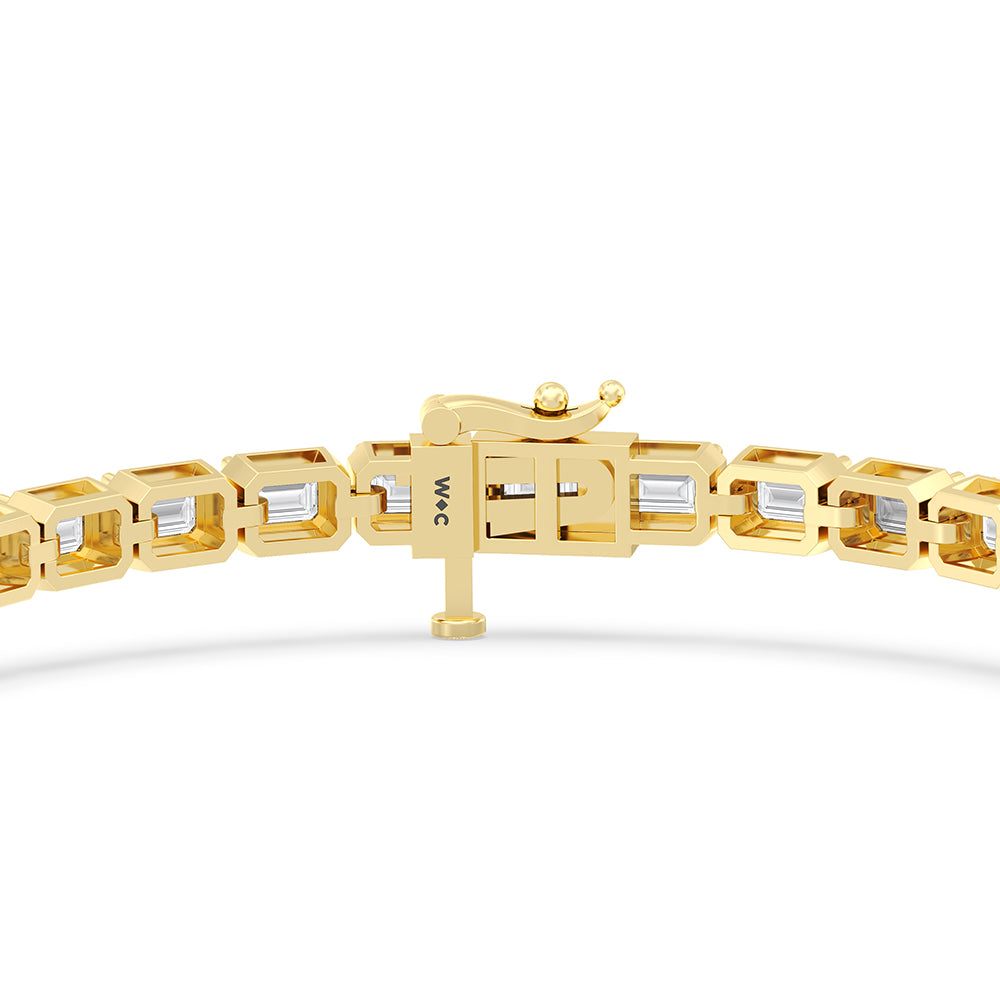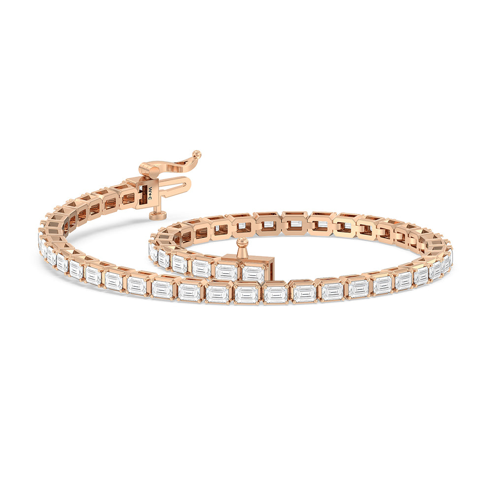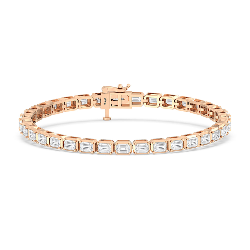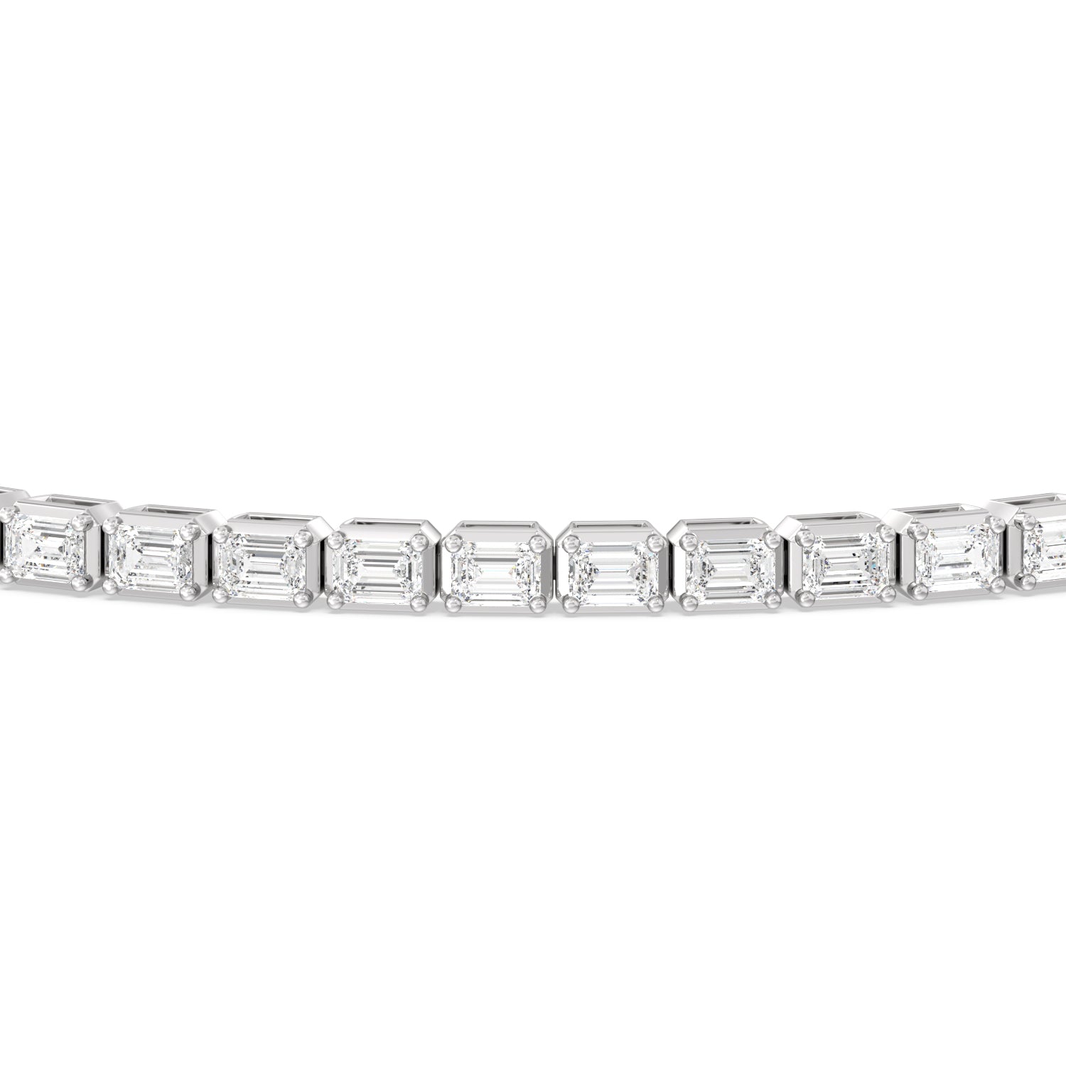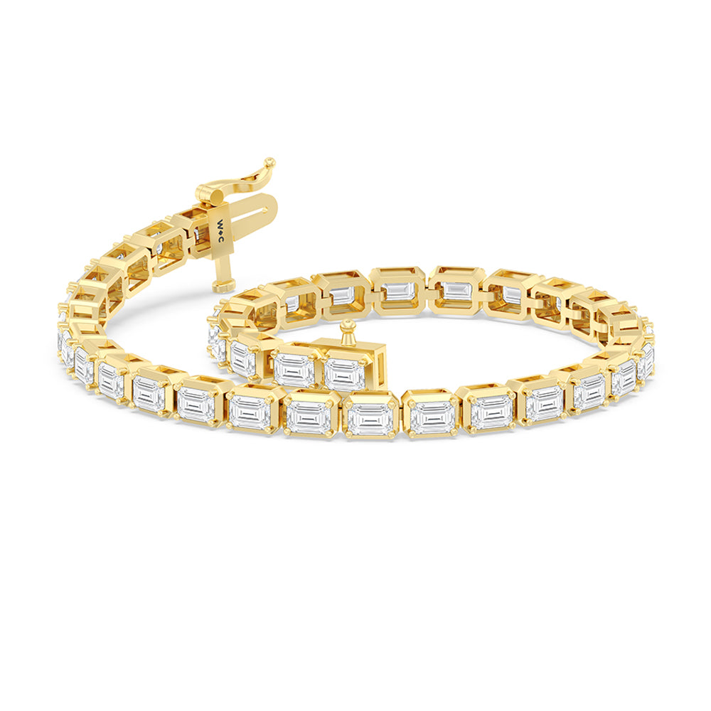 Versatile and chic to be layered or worn on its own. This design features emerald-cut diamonds mounted horizontally on secure pronged baskets. Elegant and extremely wearable, this bracelet complements any style.