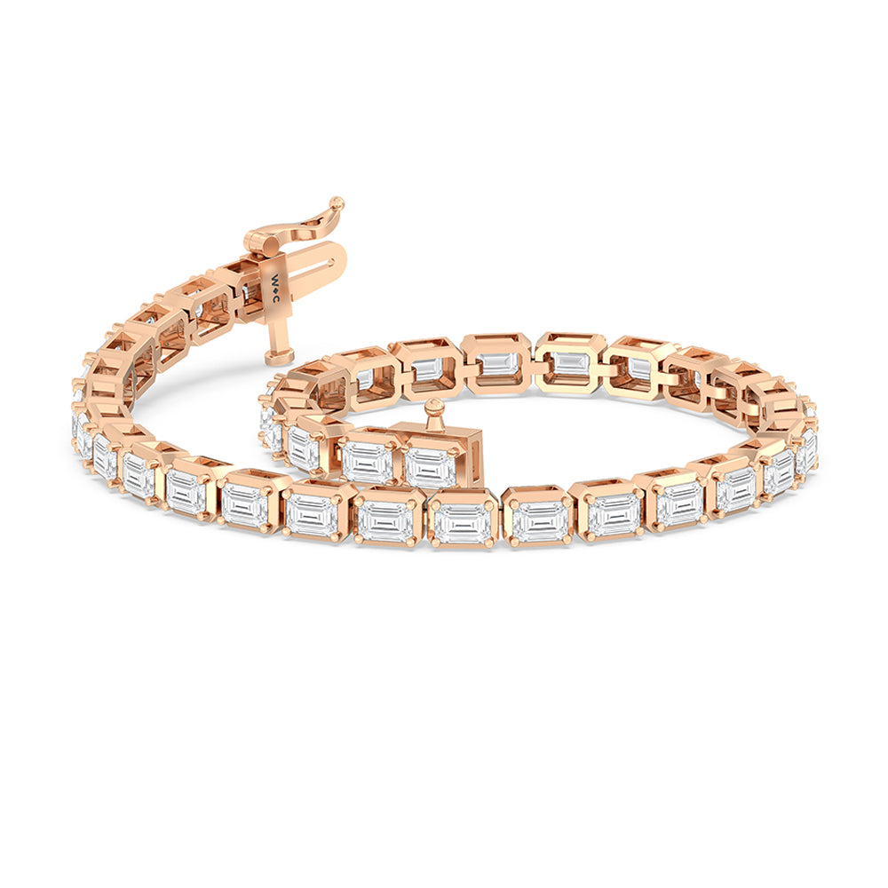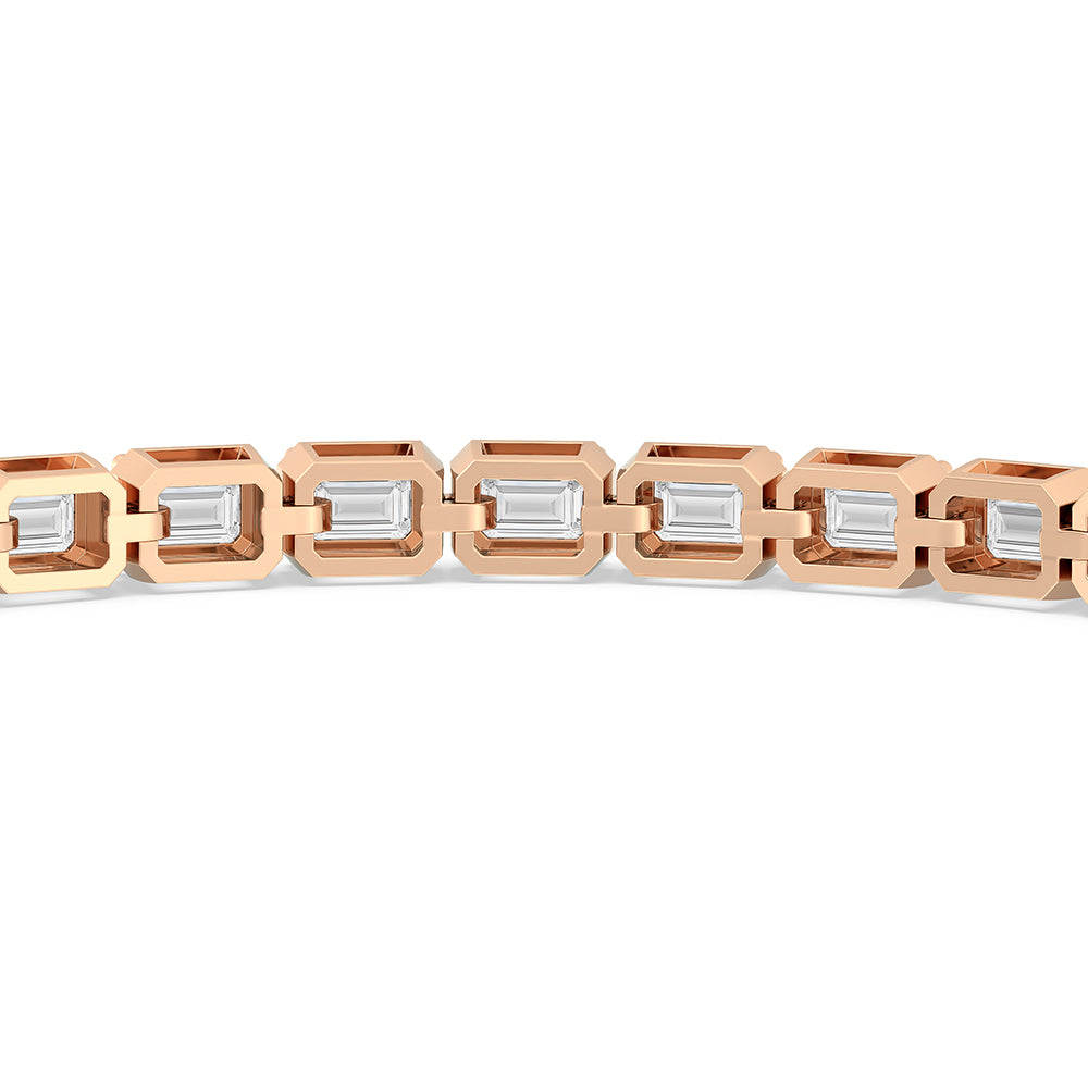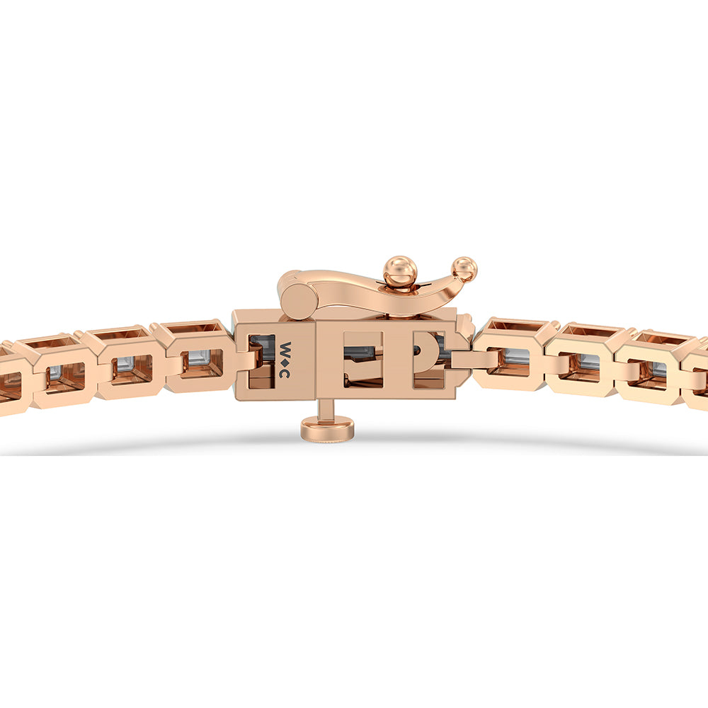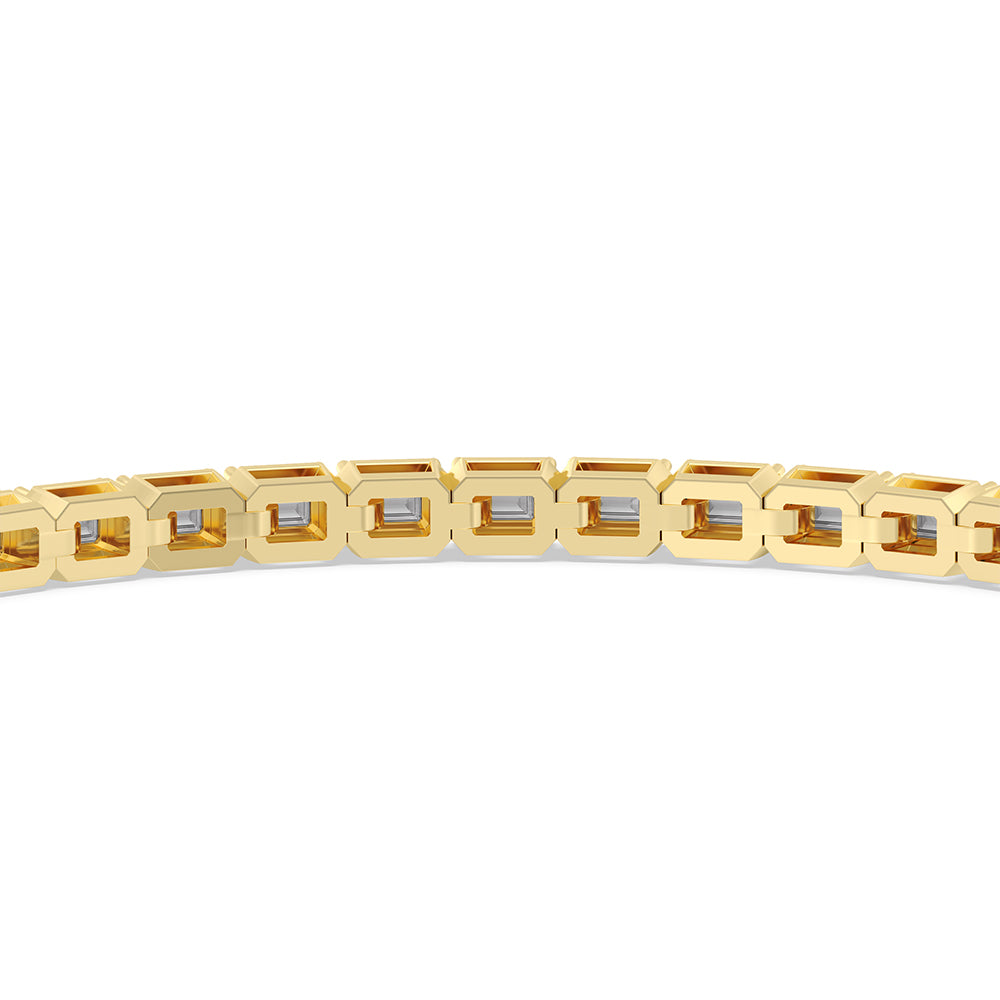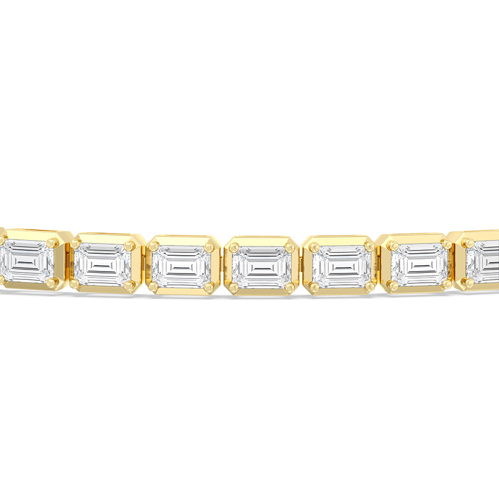 Versatile and chic to be layered or worn on its own. This design features emerald-cut diamonds mounted horizontally on secure pronged baskets. Elegant and extremely wearable, this bracelet complements any style.