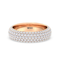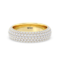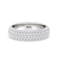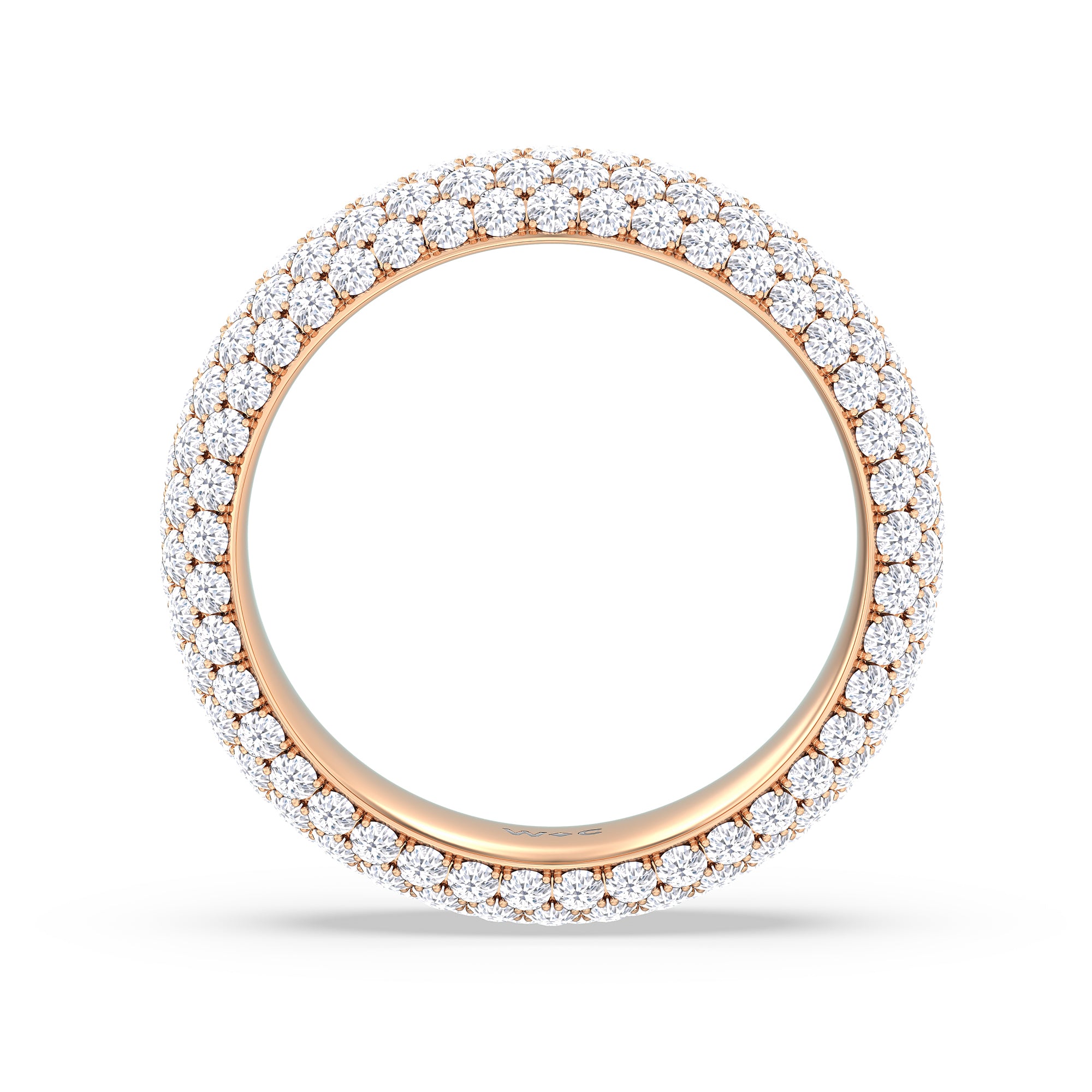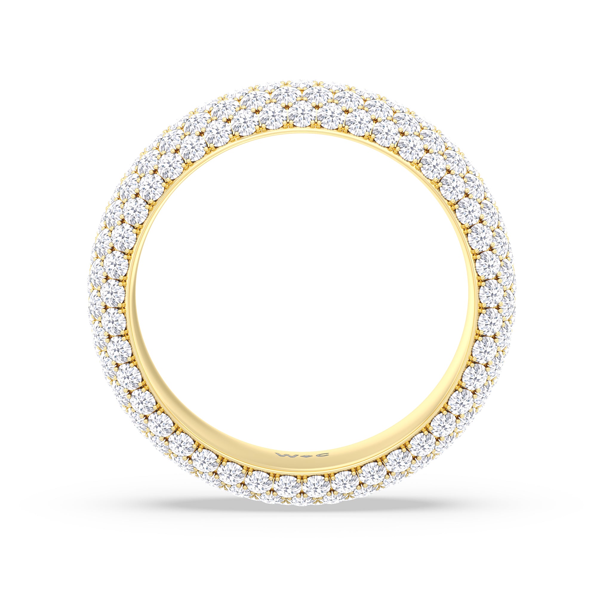 Crafted with five rows of pavé-set diamonds, this eternity band is undeniably a showstopper. The masterfully crafted band commands attention with its full circle of diamonds, showcasing an extraordinary play of light.