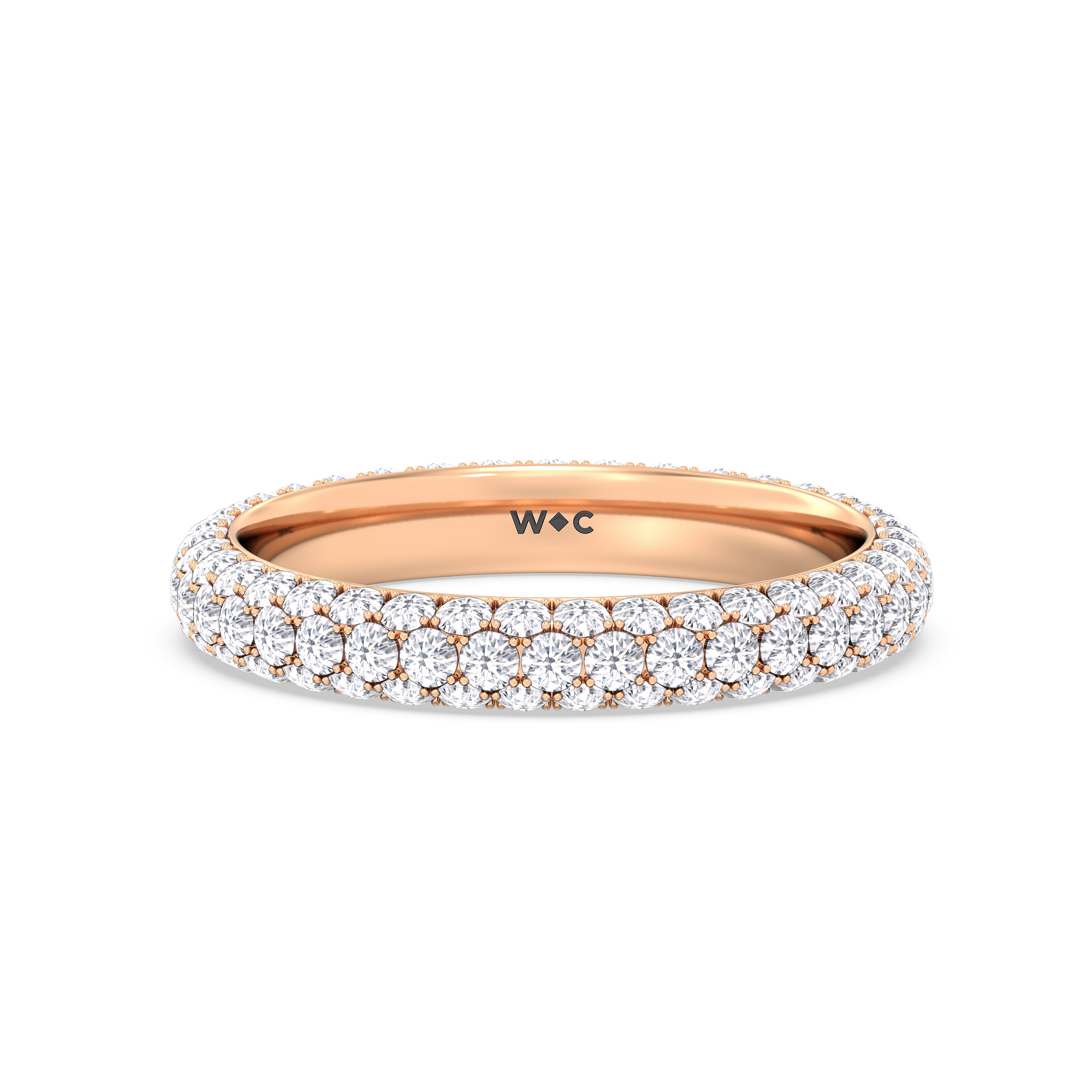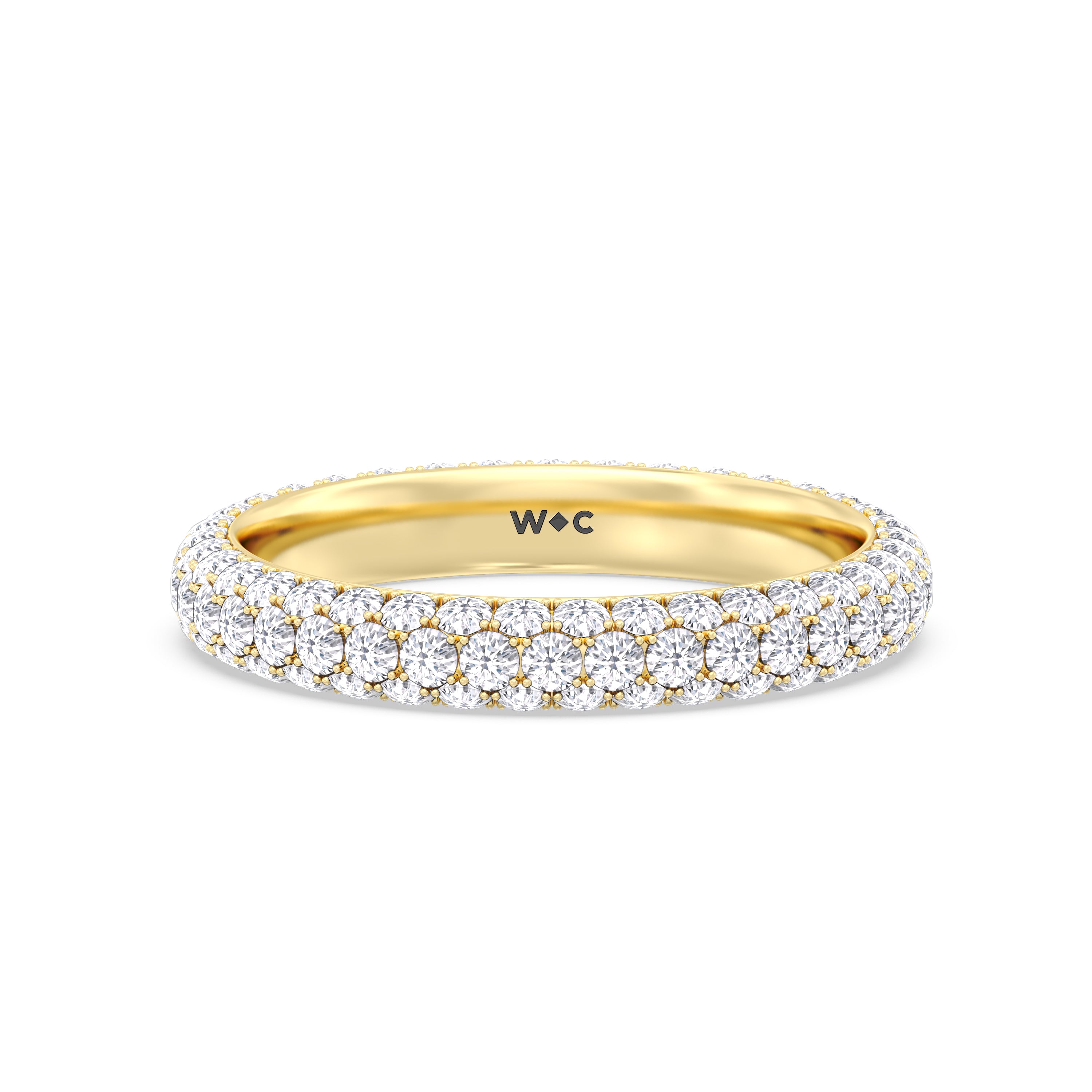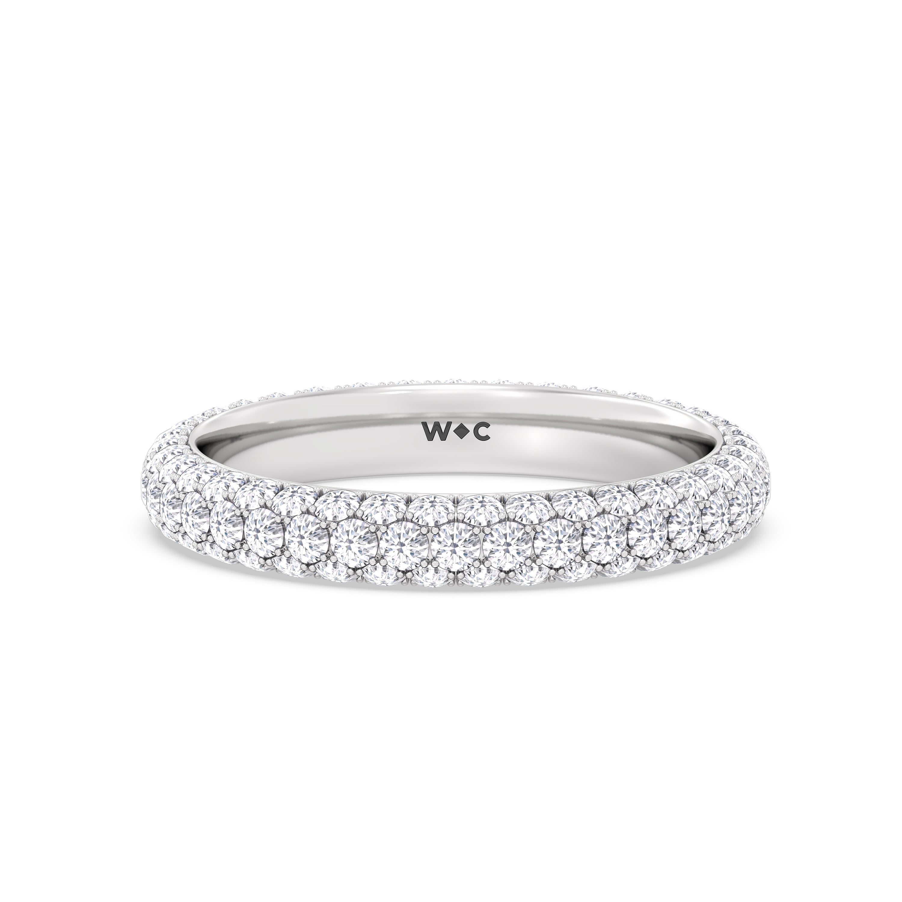 Symbolize forever with this stunning eternity band. With three rows of pavé-set diamonds, it offers never-ending brilliance that makes a statement. Wear this ring alone, or pair it with your engagement ring to highlight its beauty.