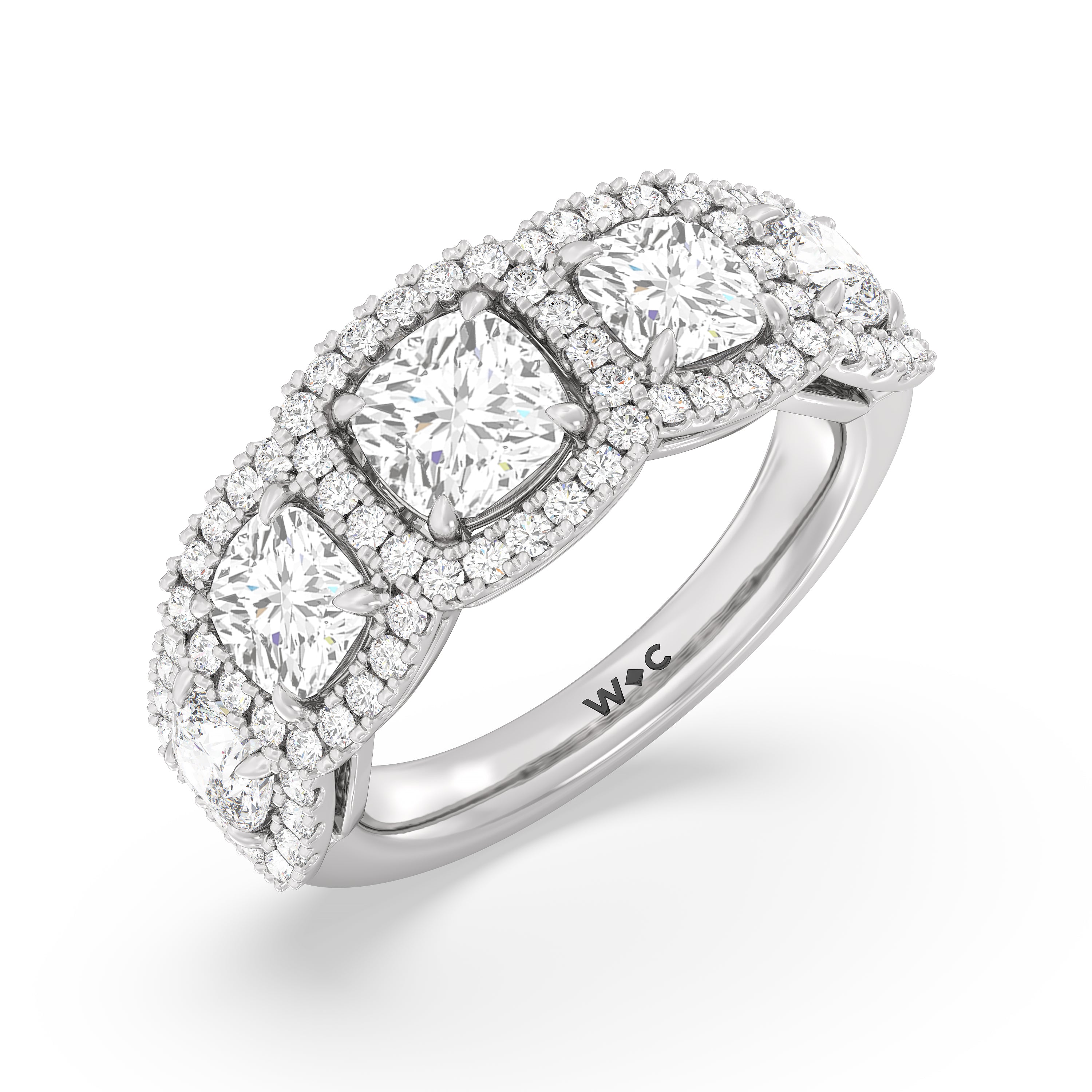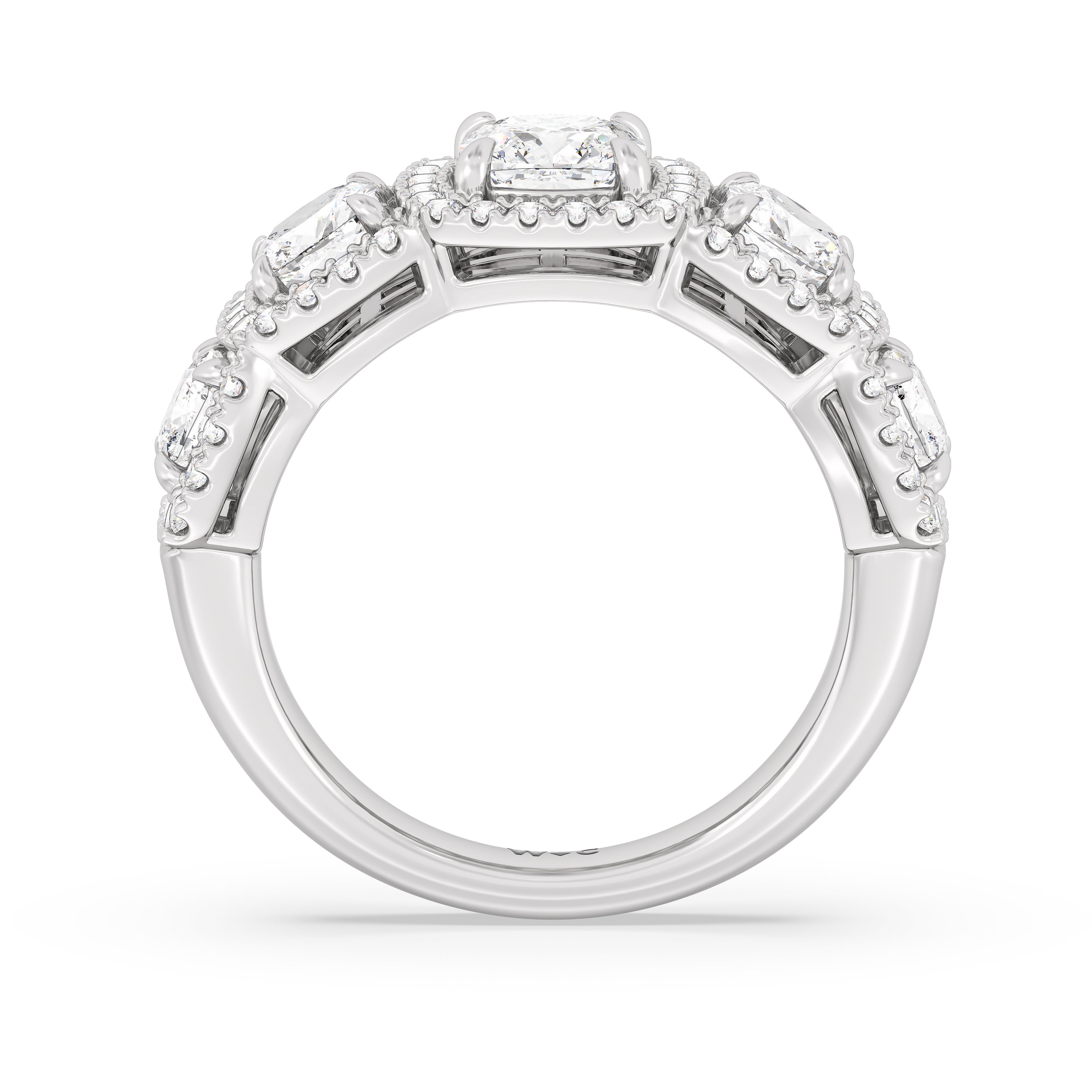 Elegance Cushion Five Stone Halo Anniversary Ring