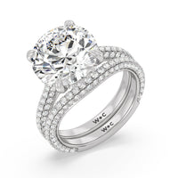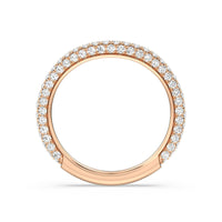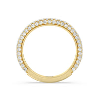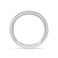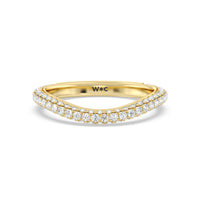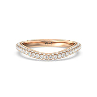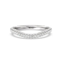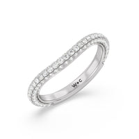 This curved diamond set wedding band is perfectly contoured to complement our elegance diamond studded gallery hidden halo engagement ring for a simple and sophisticated look.