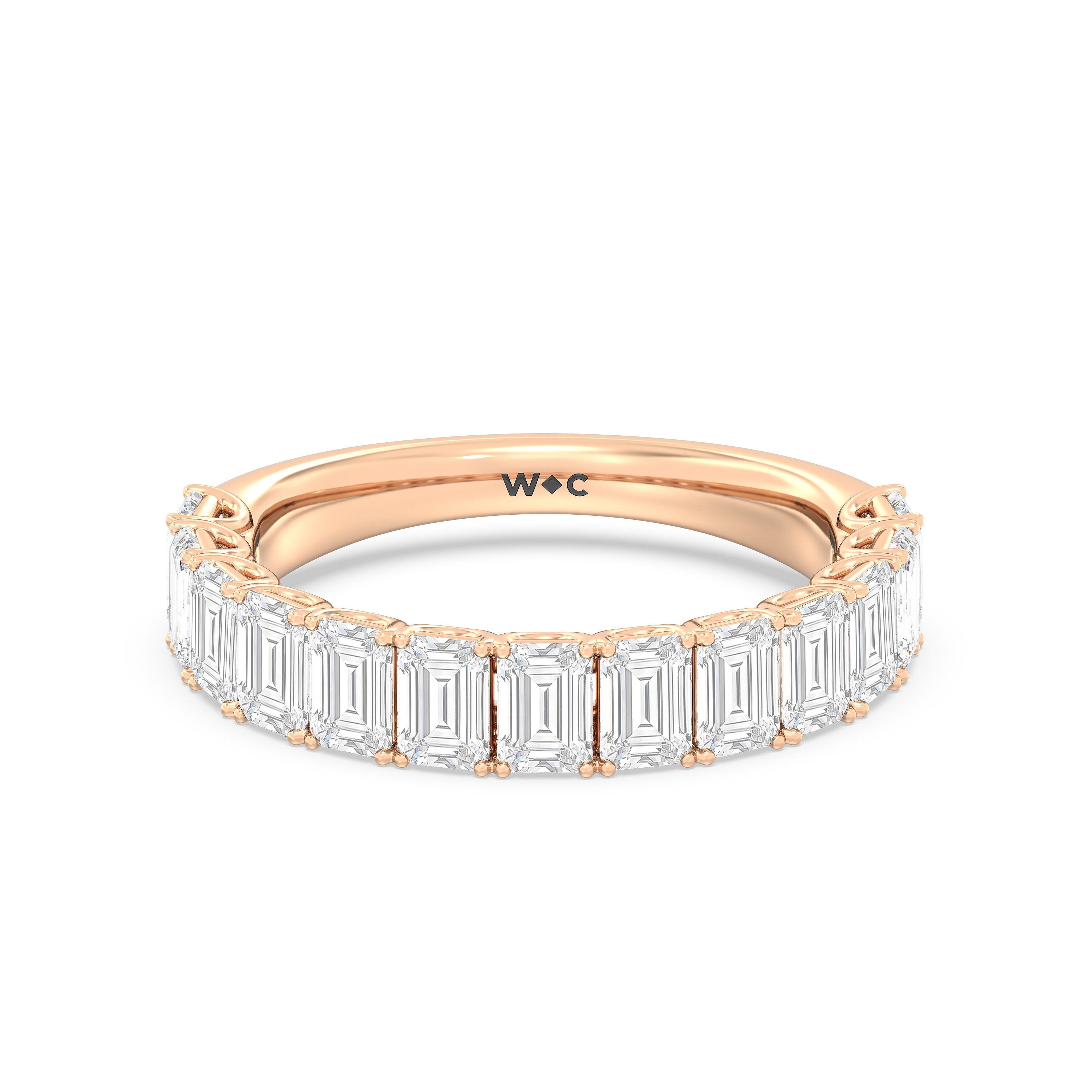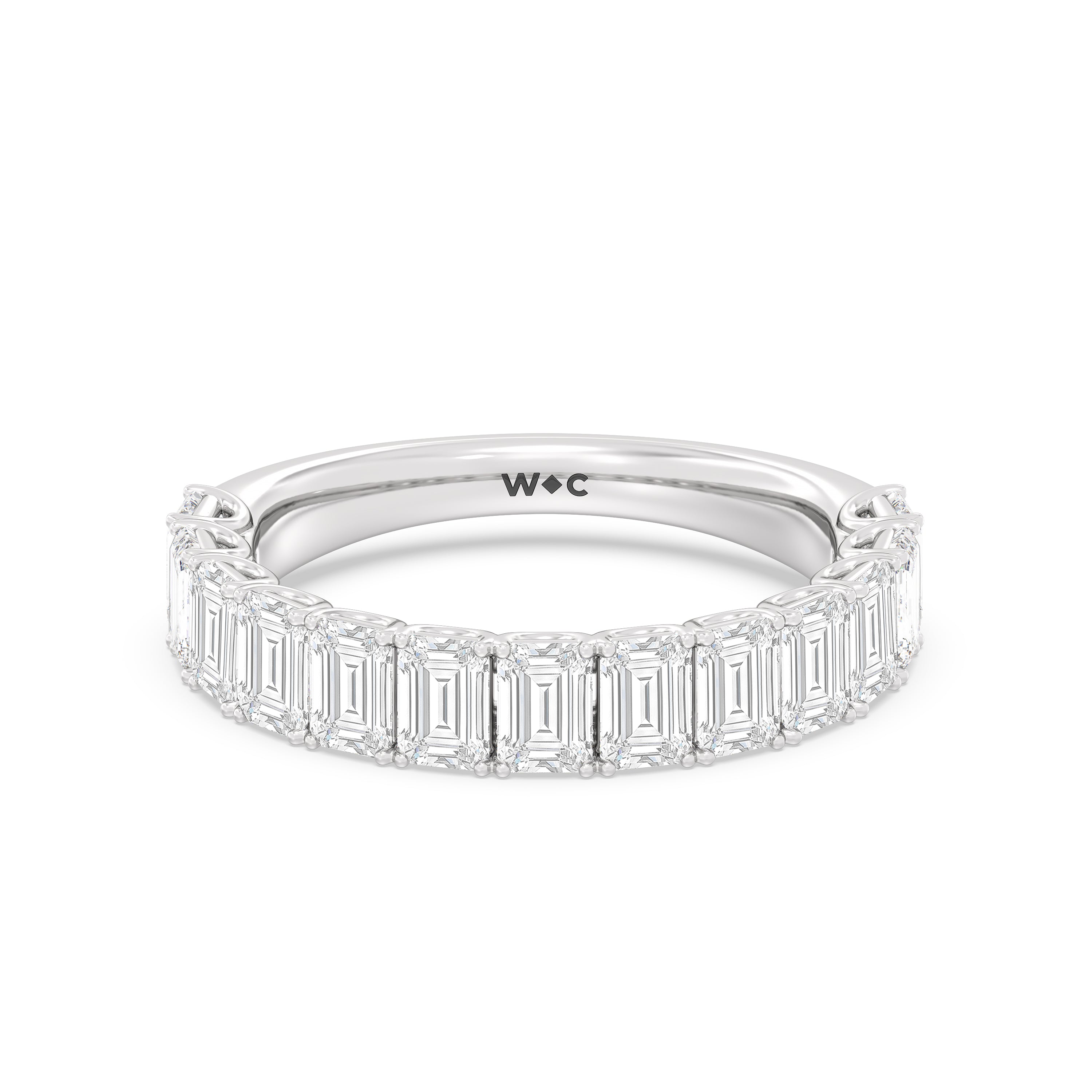 Shimmering pave diamonds cascade down this band to create a timeless beauty that will never go out of style. Designed to be paired with our elegance emerald accent hidden halo engagement ring for a simple and sophisticated look. Set with 2.63 ct total diamond weight.