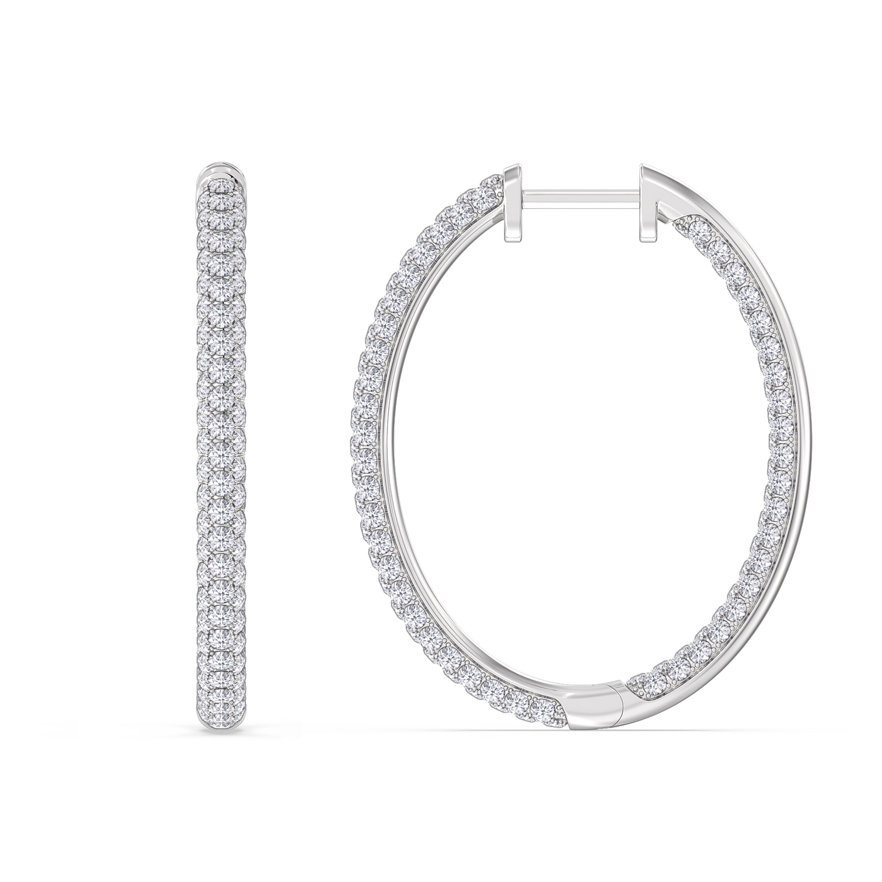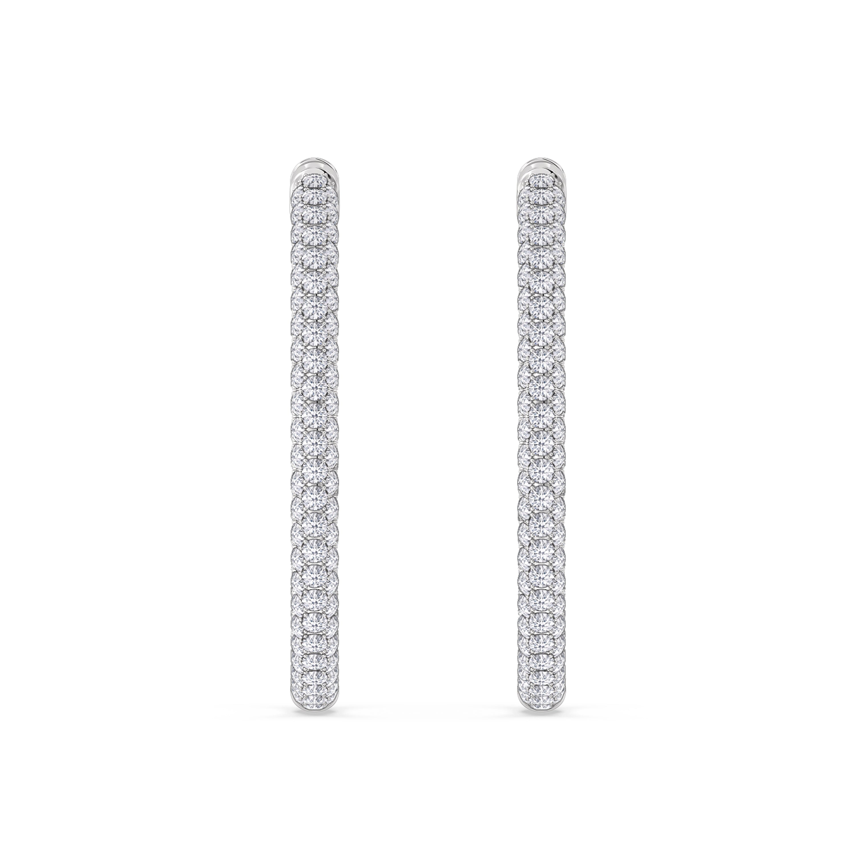 These large yet delicate hoop earrings, fully covered with round diamonds, are what you need for a look that is never overdone but always stunning. With a bigger diameter, they indeed draw attention, yet they don't distract or dominate.