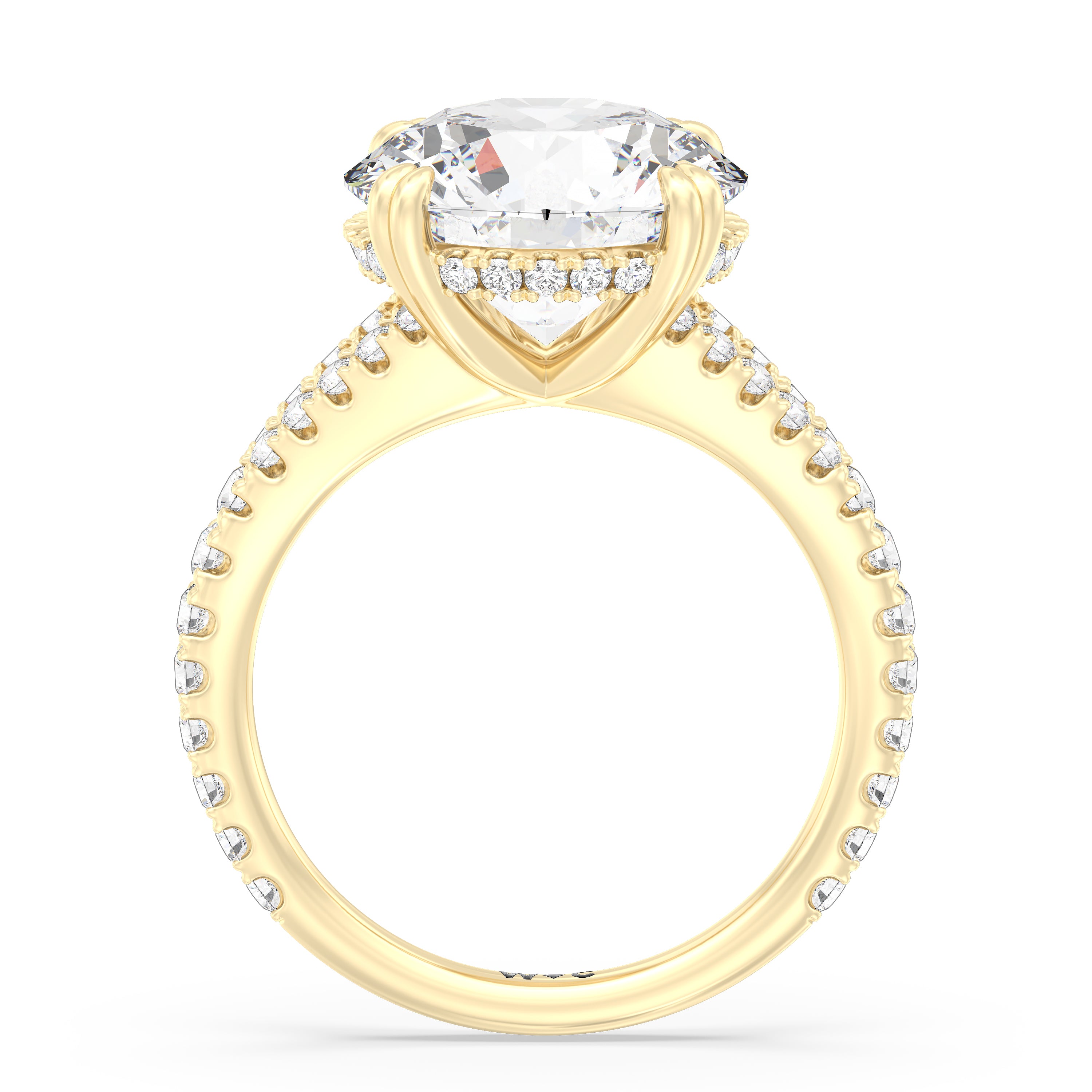 If there is a ring that can define quiet luxury succinctly, it is this diamond engagement ring. You will recognize it from the details in the refined aesthetic this ring prides itself on. There is the stunning pear diamond center stone, the hidden halo with petite round diamonds, and the slender split shank with pavé-set diamonds running along more than half the circumference of the shank.