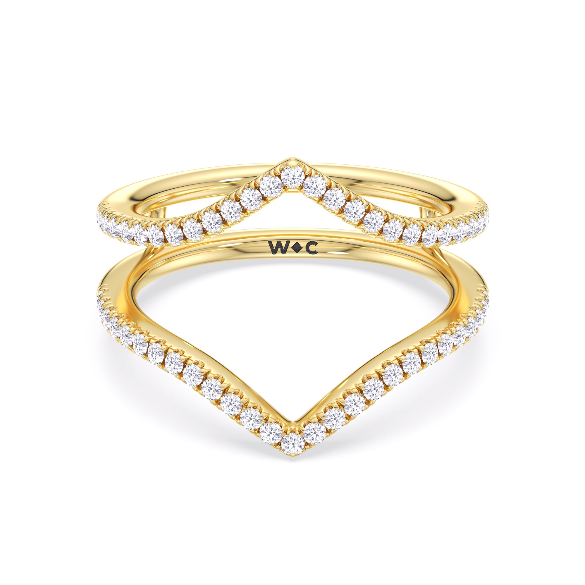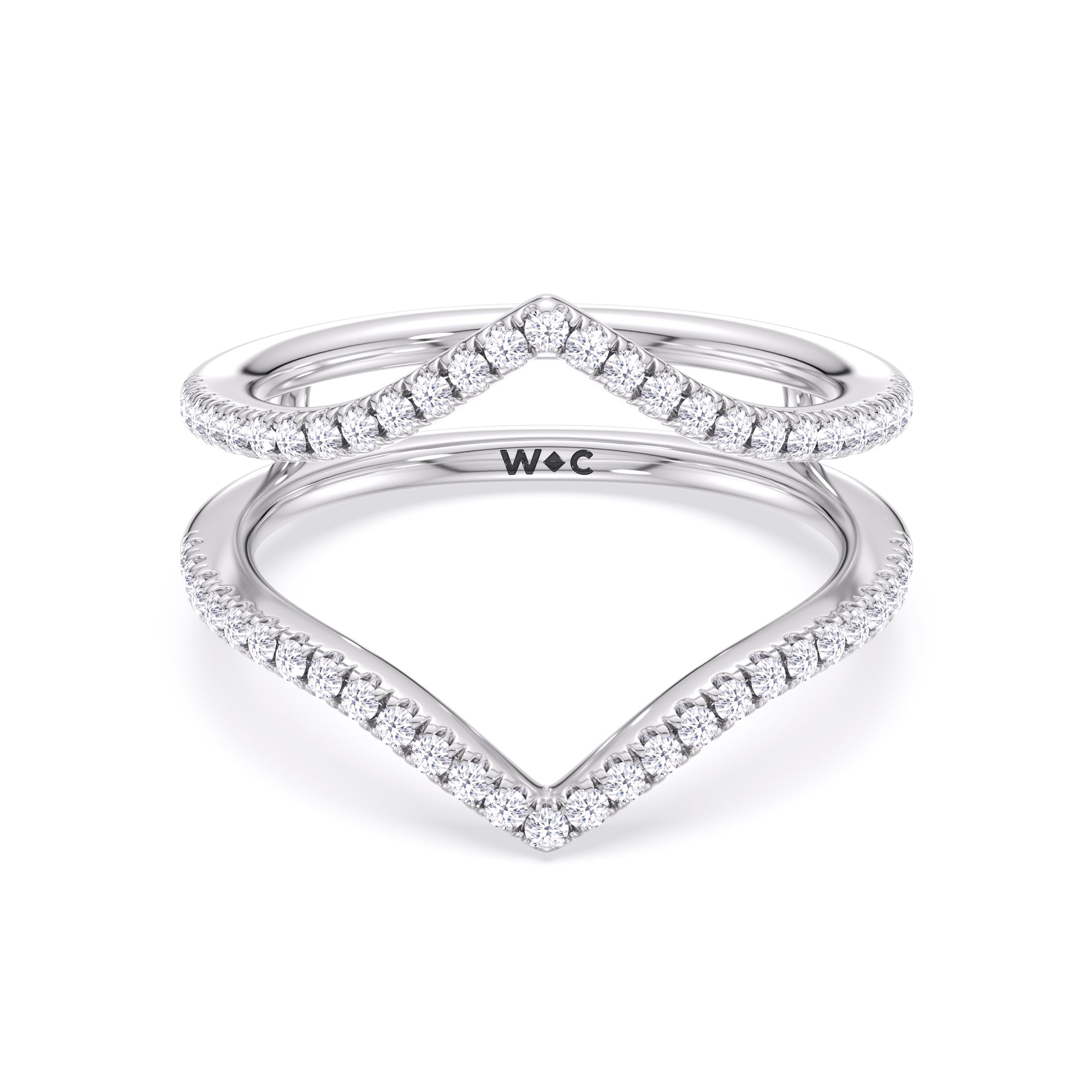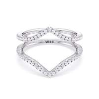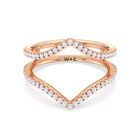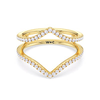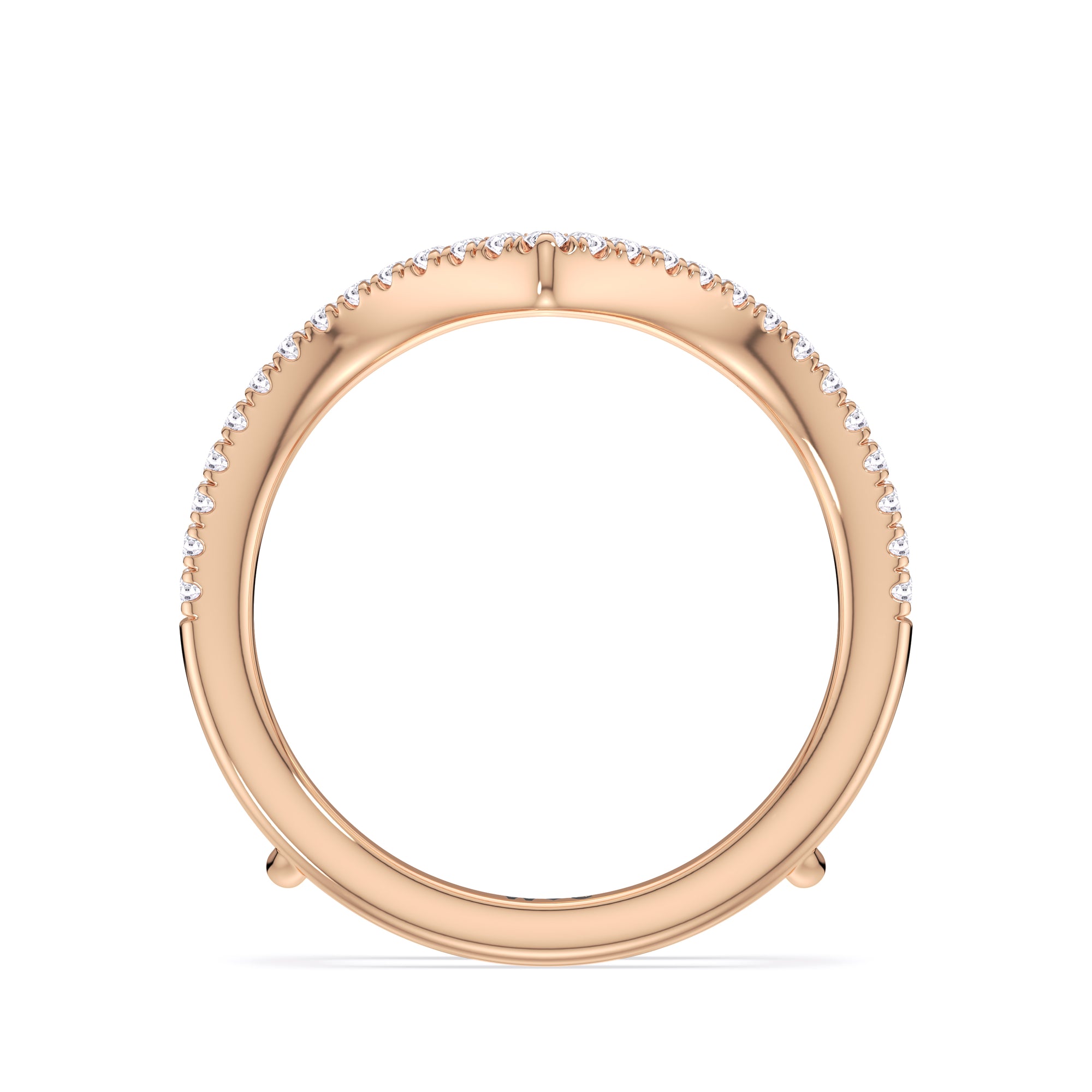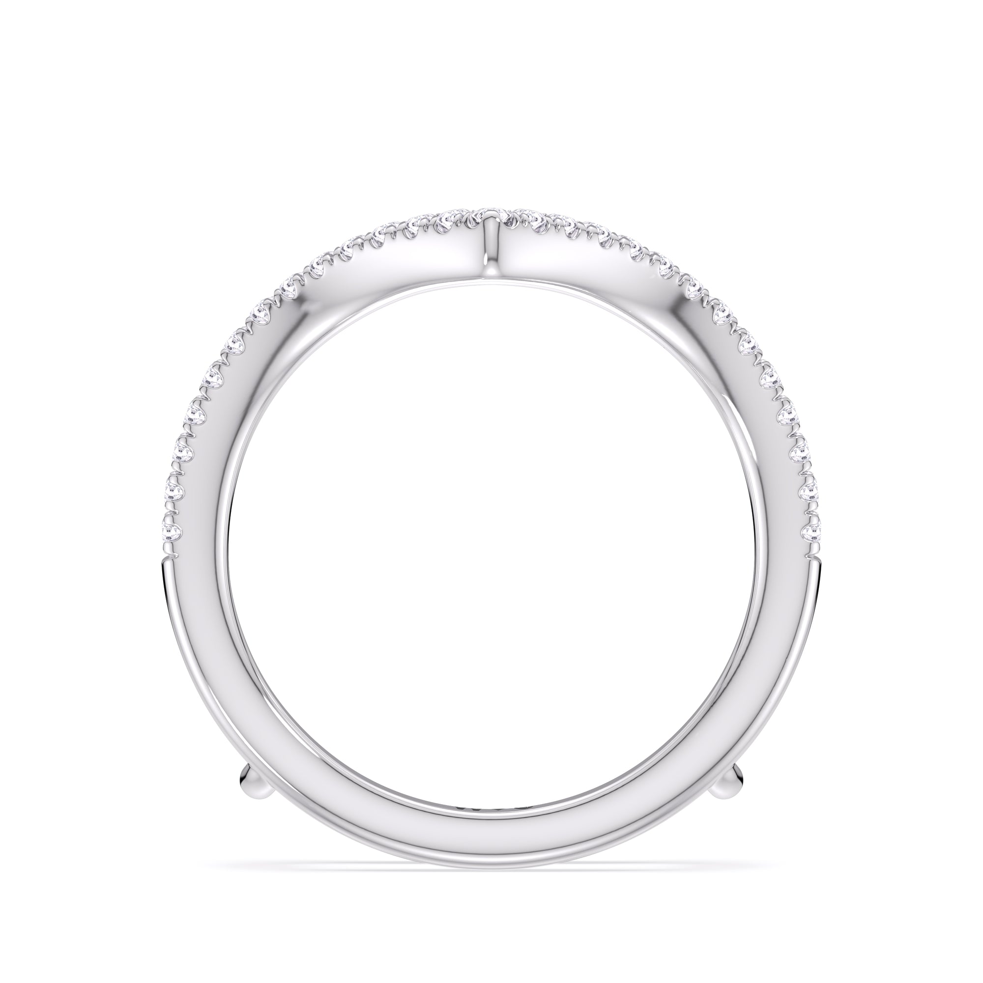 This curved diamond set wedding band is perfectly contoured to complement our elegance split half pave engagement ring for a simple and sophisticated look.