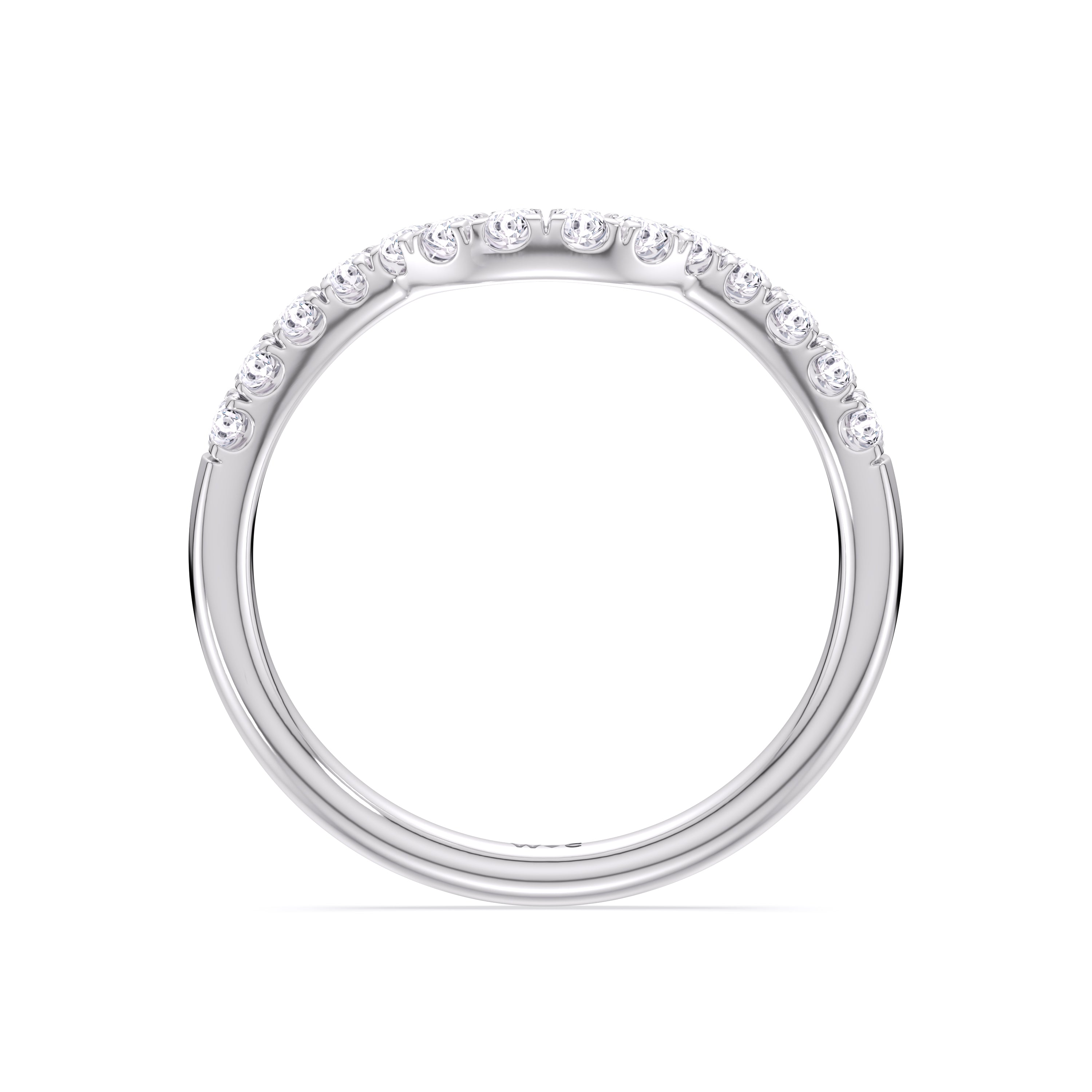 This curved diamond set wedding band is perfectly contoured to complement our elegance tapered accent bridge engagement ring for a simple and sophisticated look.